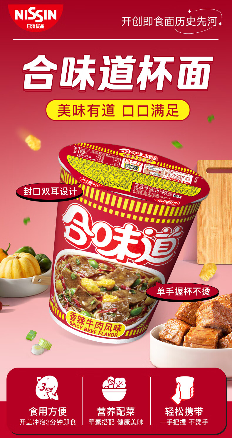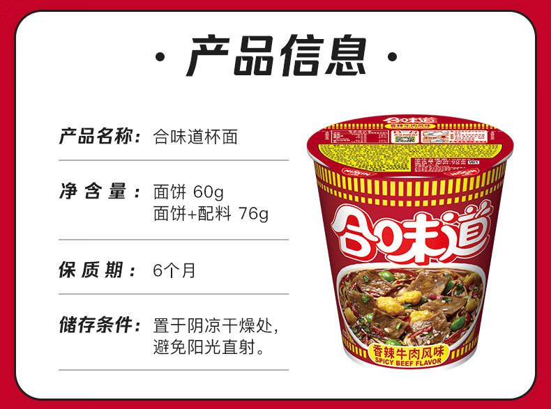 【自营】合味道香辣牛肉面76g*12杯