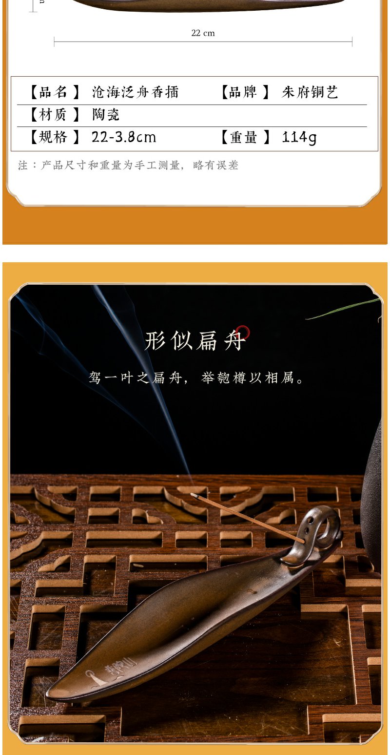朱府铜艺普陀山&沧海泛舟香插家用室内禅意卧香炉沉香檀香线香炉