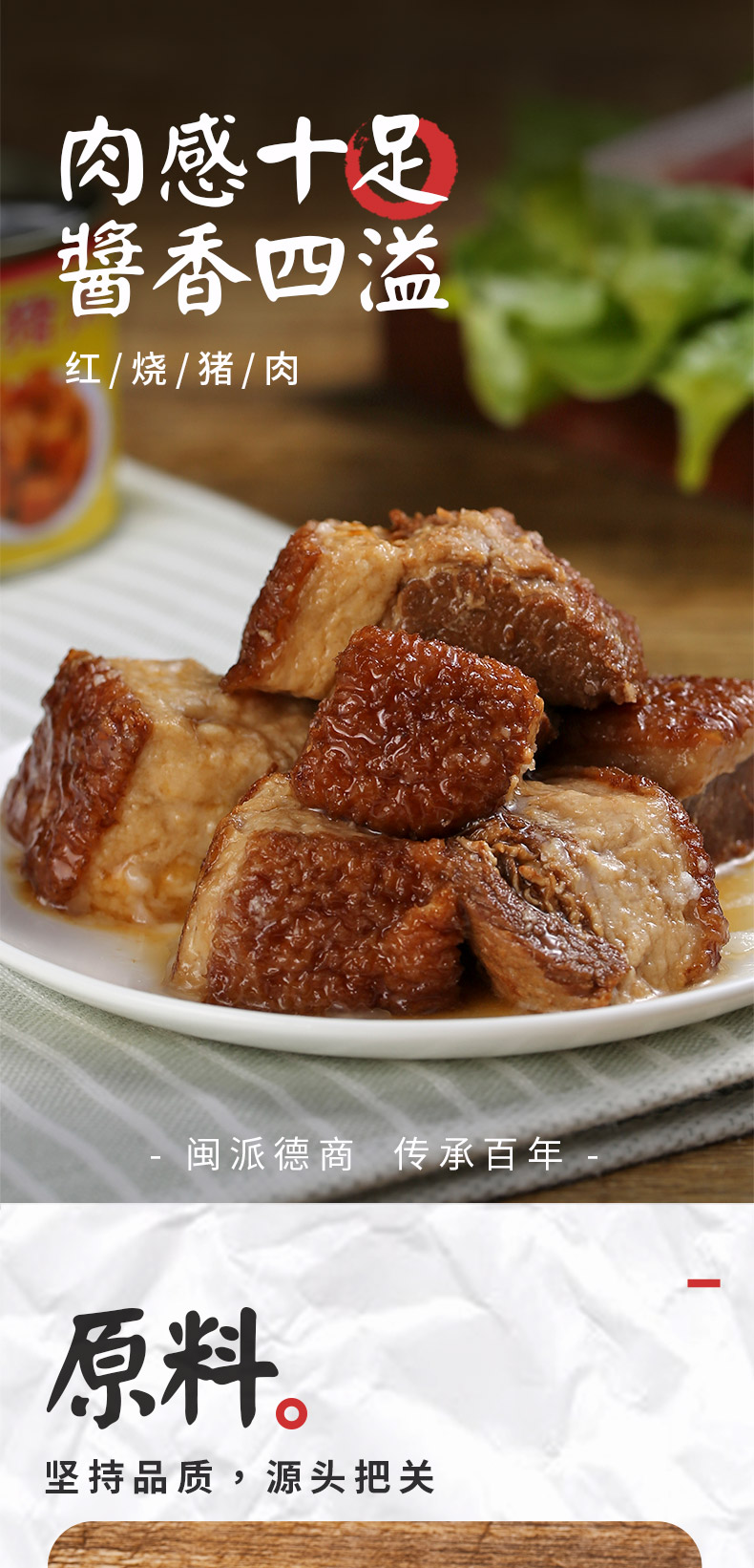 古龙食品红烧猪肉罐头居家上班户外开罐即食营养红烧肉速食品227g*6