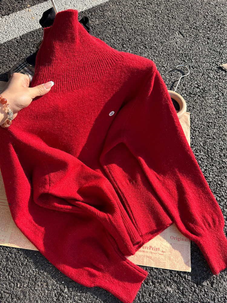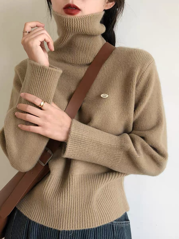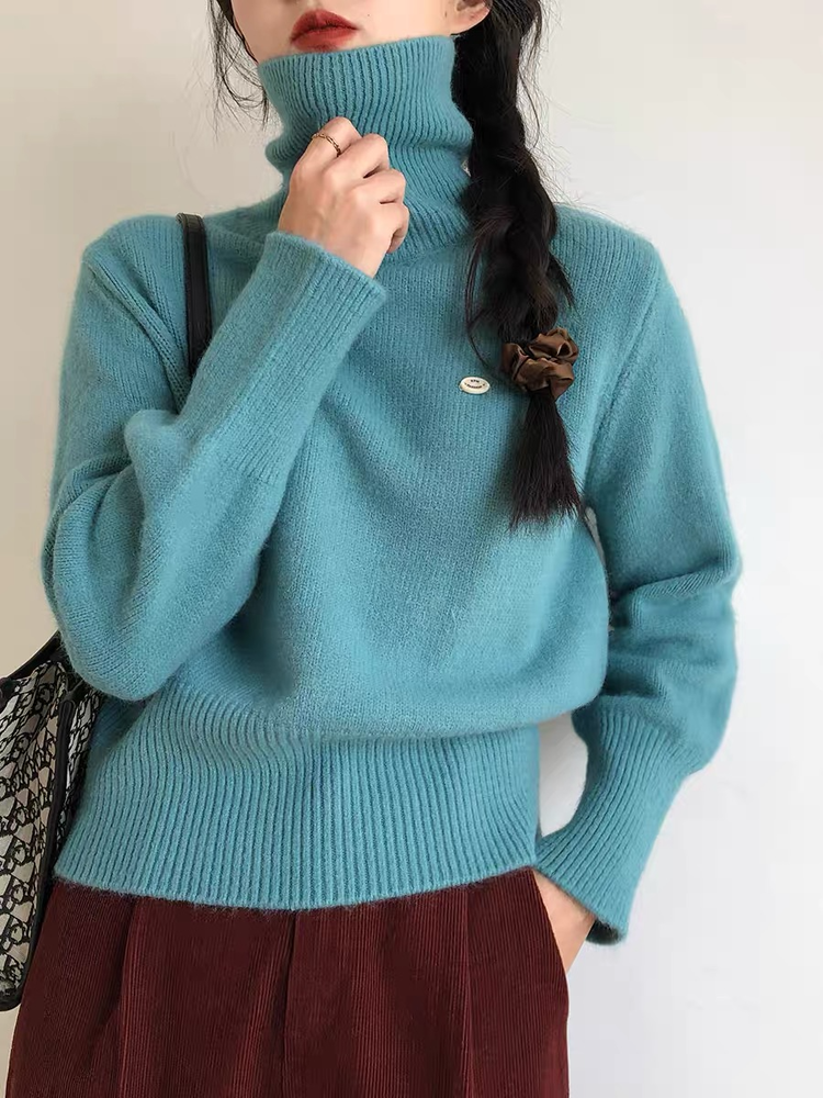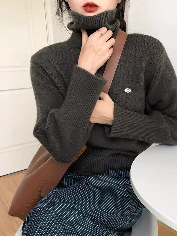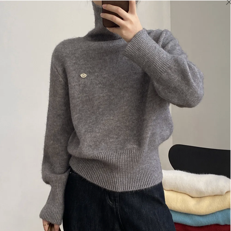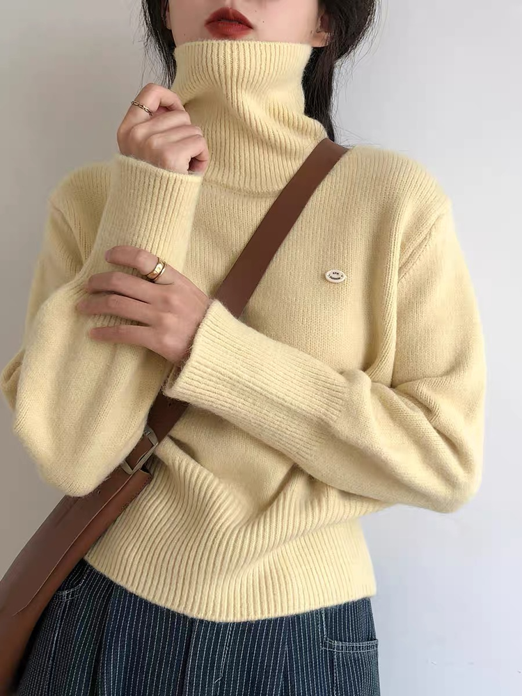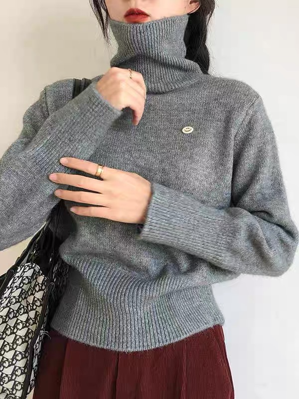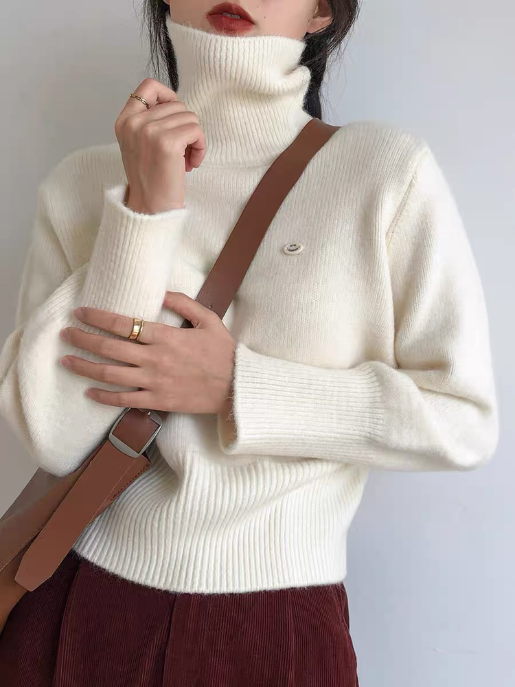 佐姿莎 韩系高领纯色收腰针织衫 胸口小标点缀简单不单调;下摆宽螺纹+收腰设计,短款版型拉高腰线;可高领可翻领;