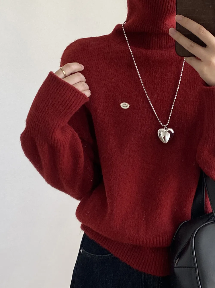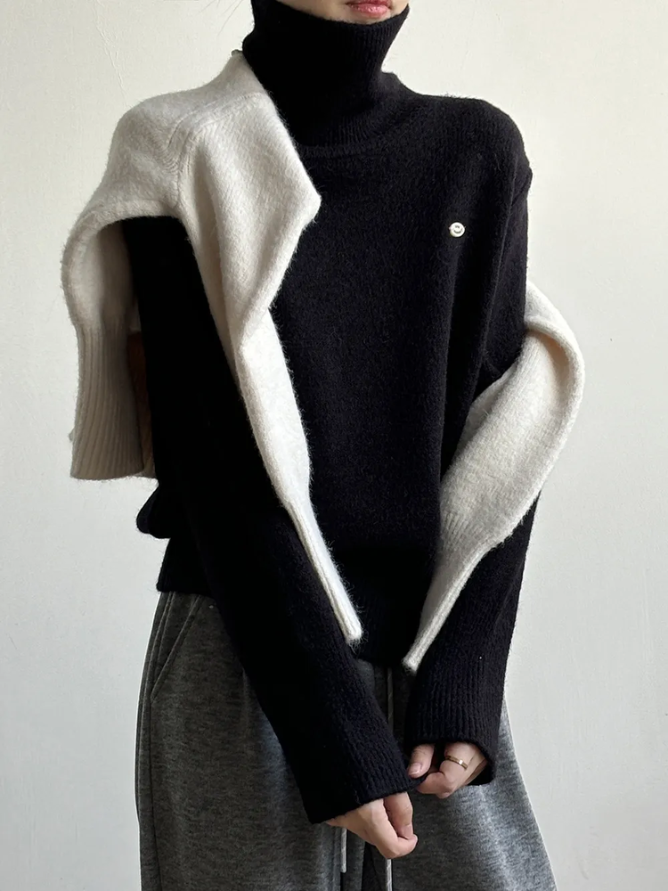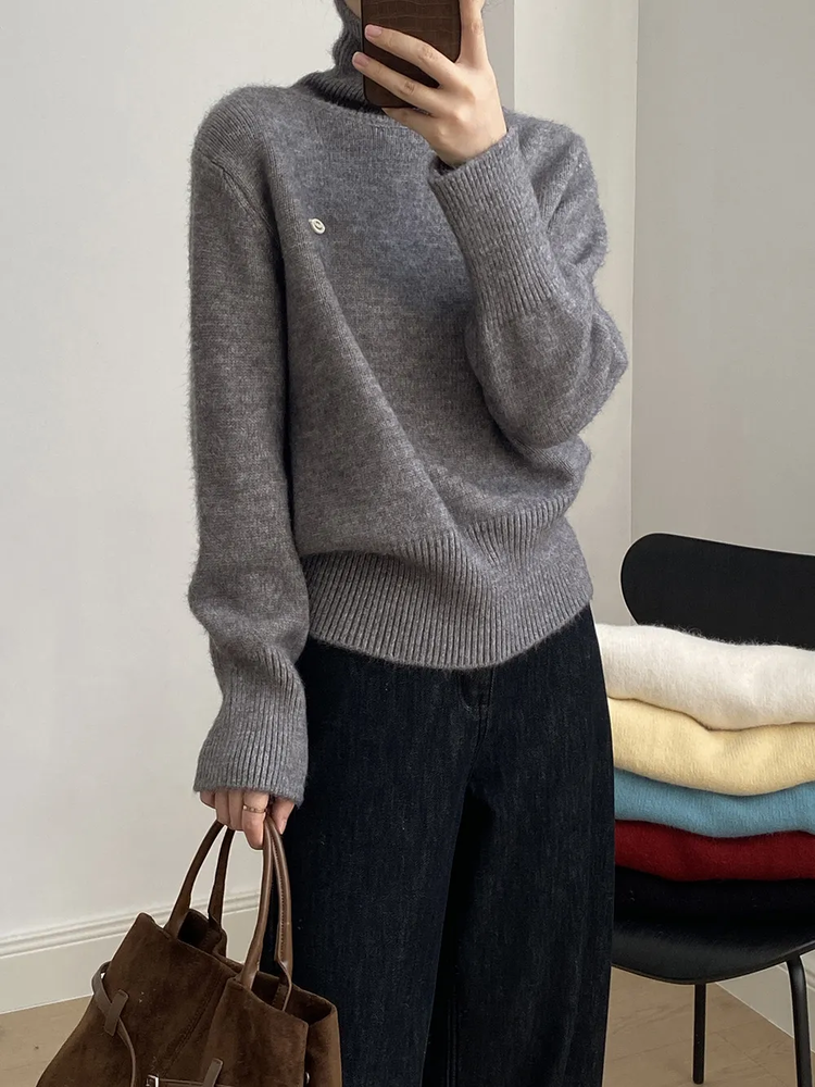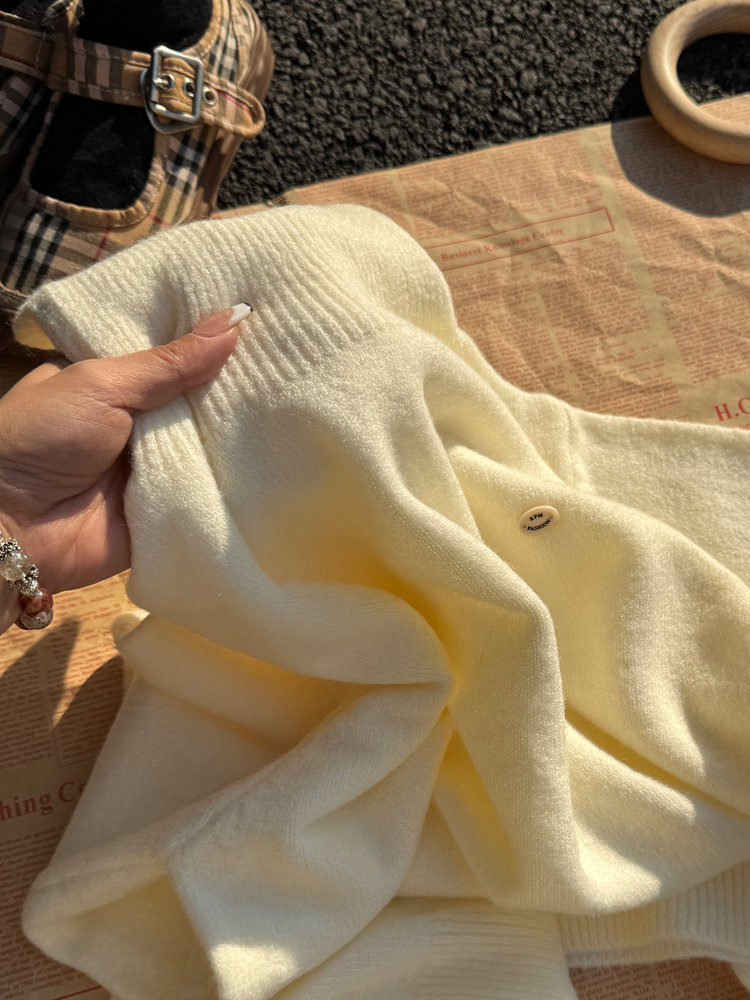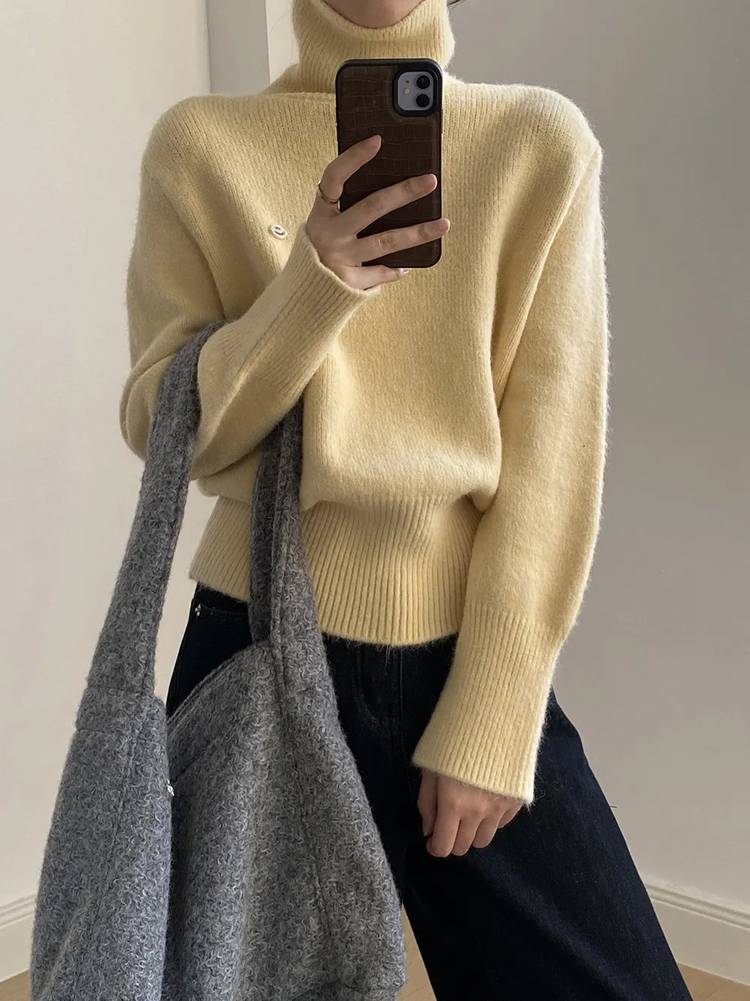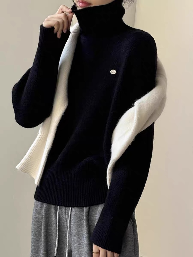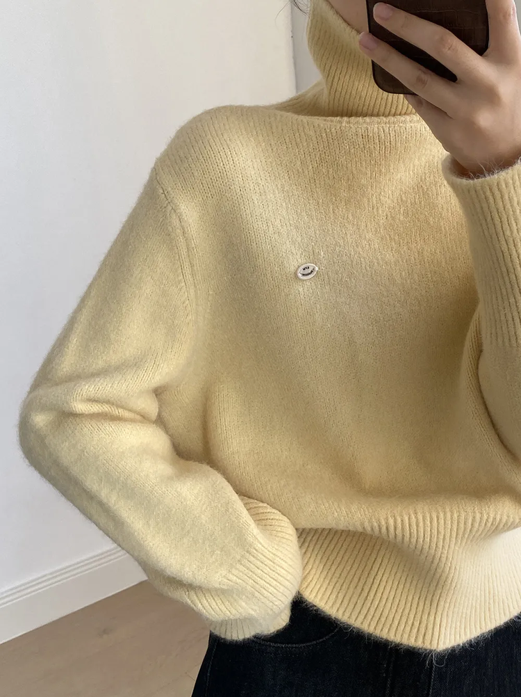 佐姿莎 韩系高领纯色收腰针织衫 胸口小标点缀简单不单调;下摆宽螺纹+收腰设计,短款版型拉高腰线;可高领可翻领;