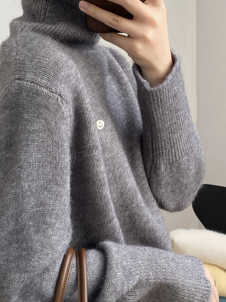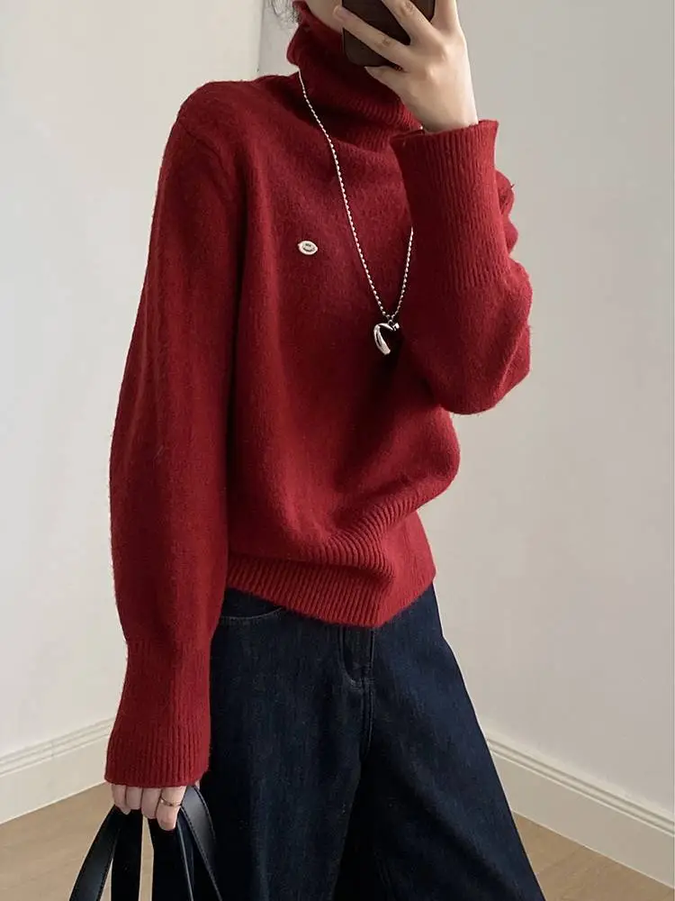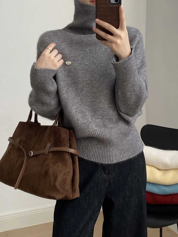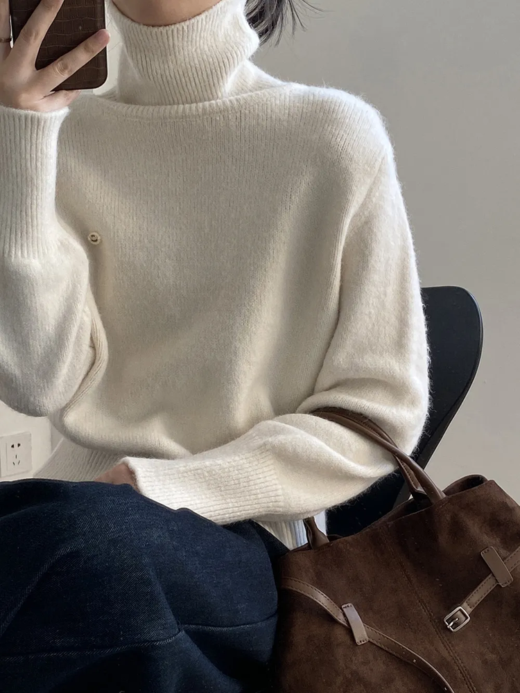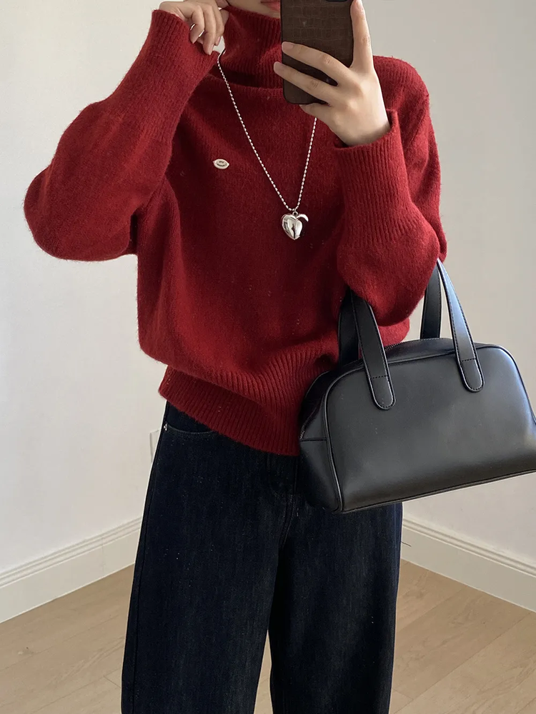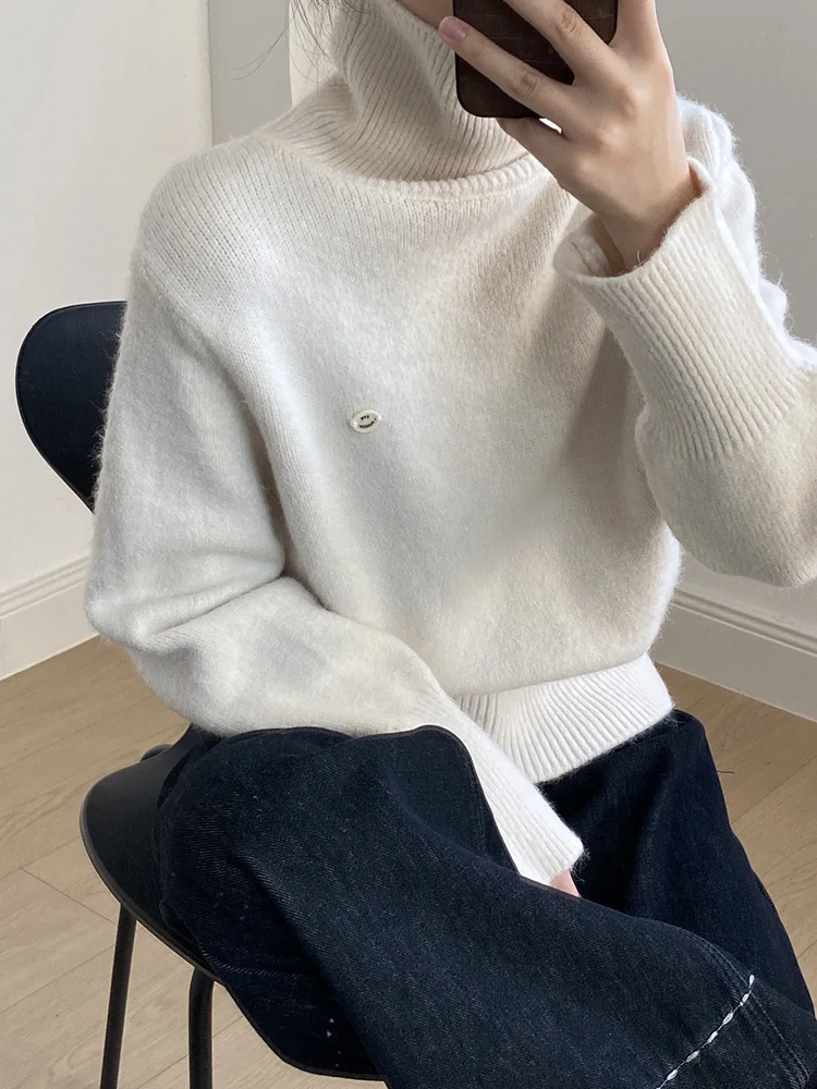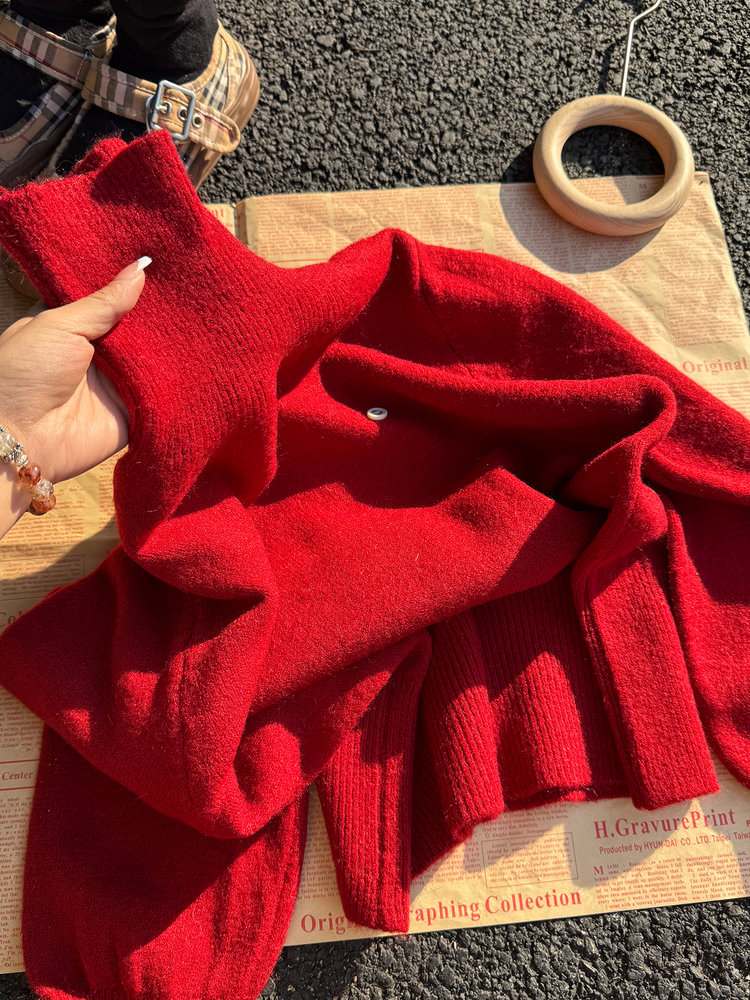 佐姿莎 韩系高领纯色收腰针织衫 胸口小标点缀简单不单调;下摆宽螺纹+收腰设计,短款版型拉高腰线;可高领可翻领;