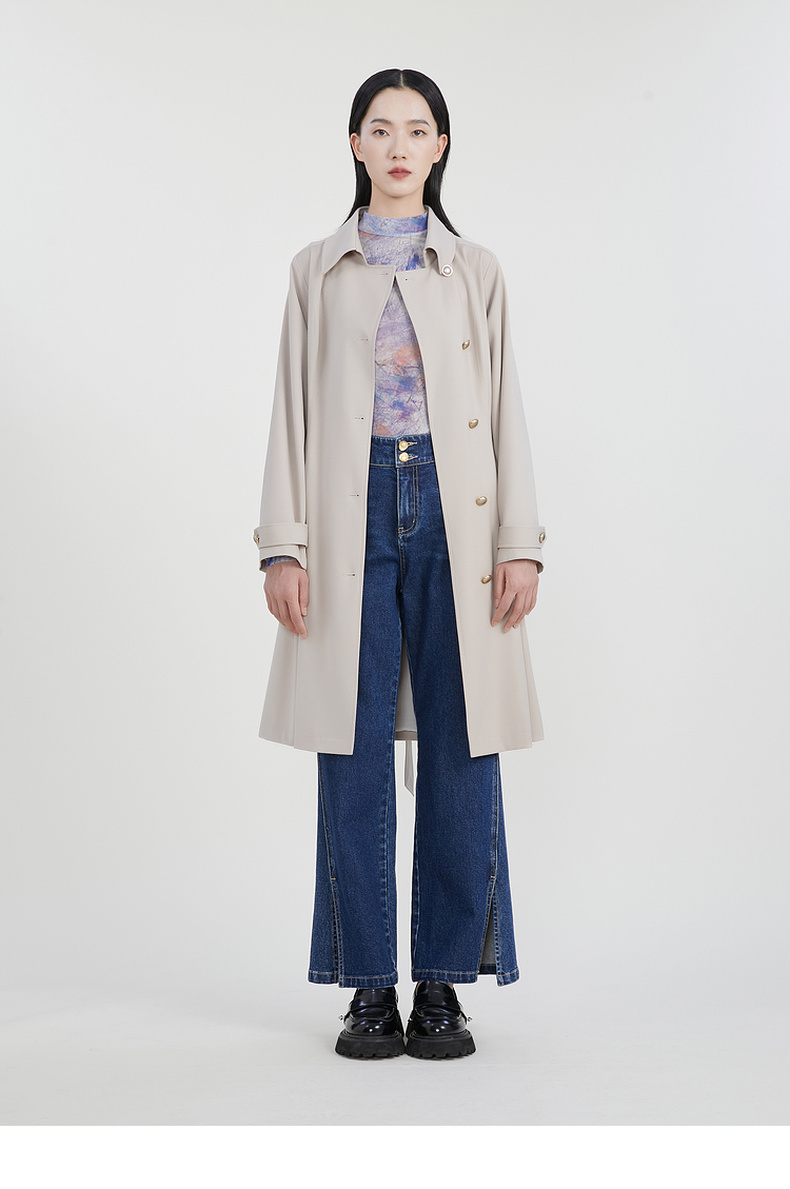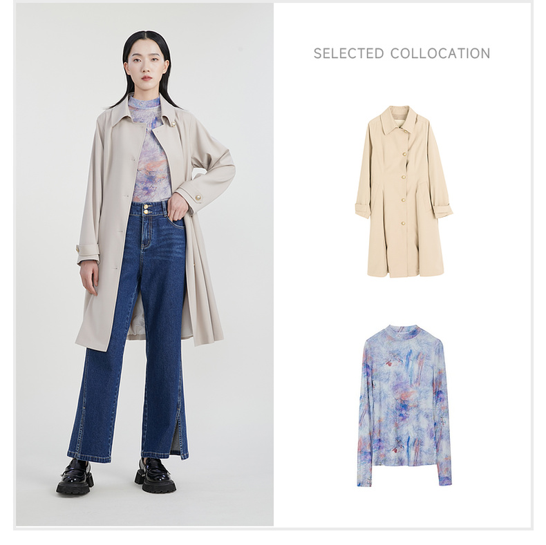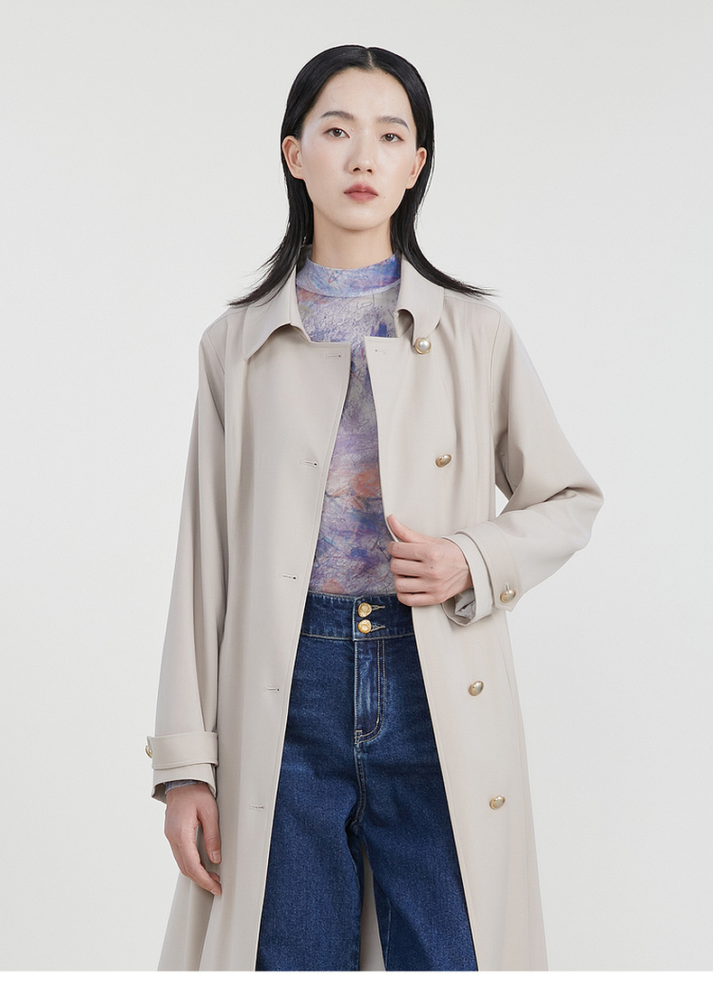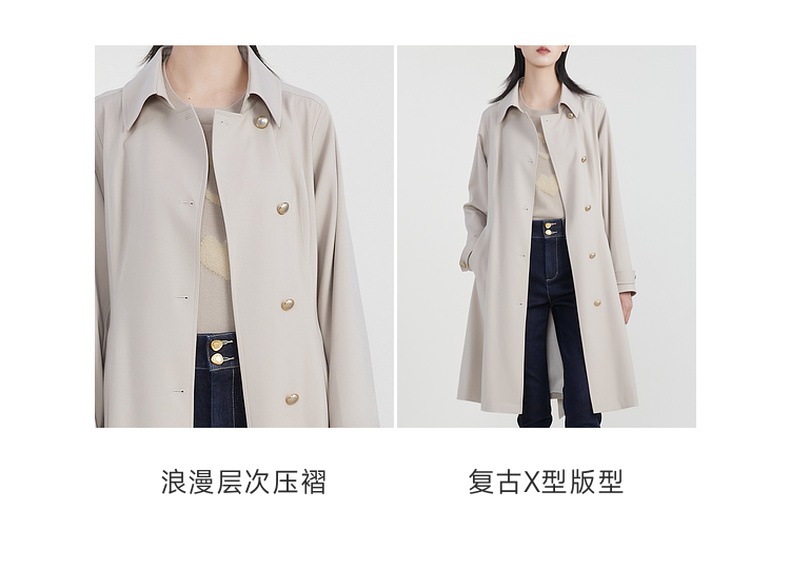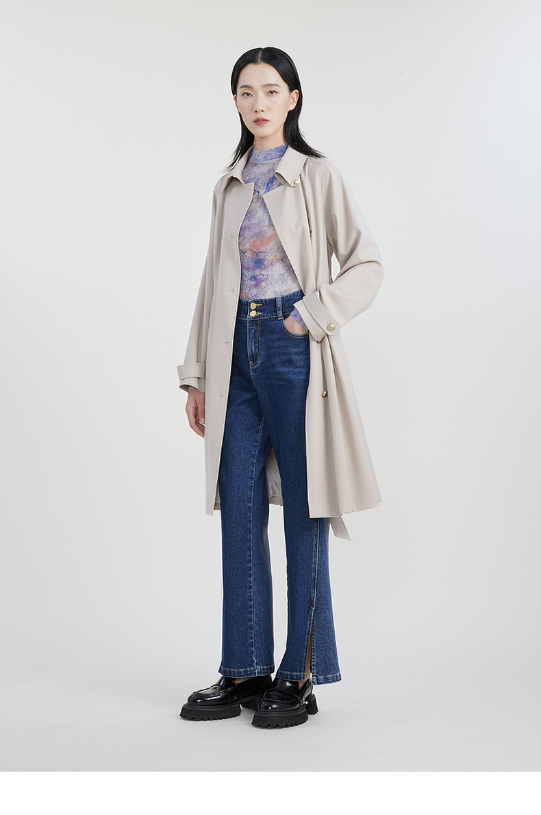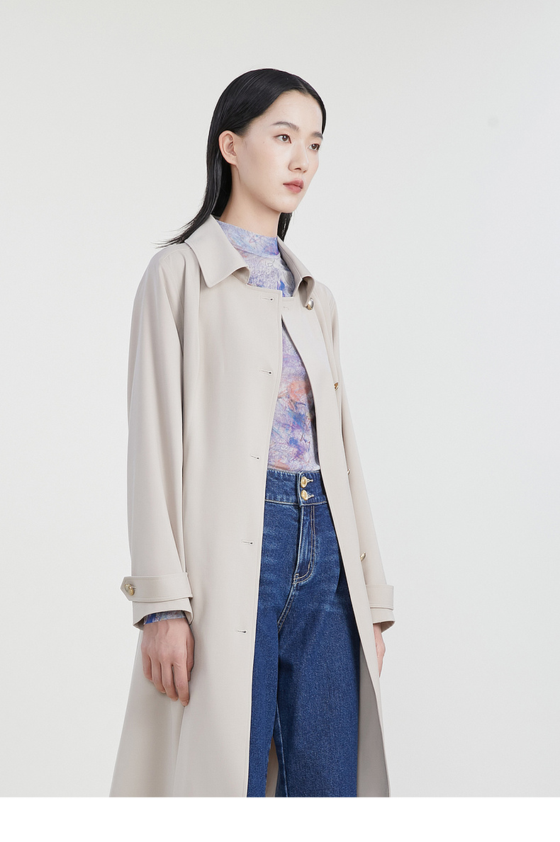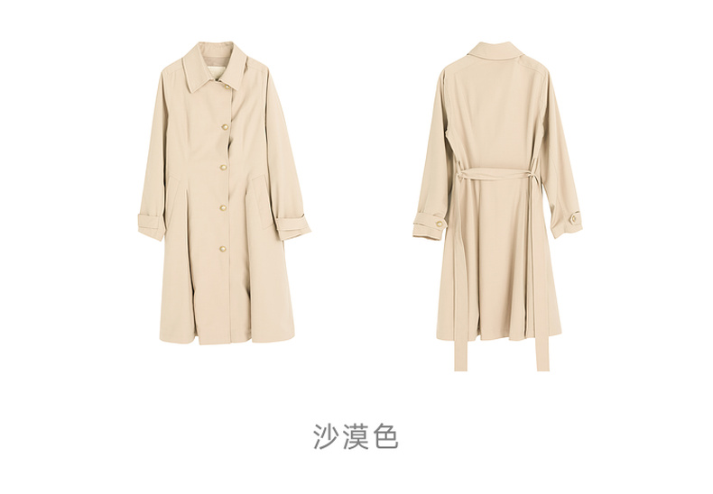 谜底单排扣长款风衣女23春新款简约纯色通勤外套配腰带231ME0140