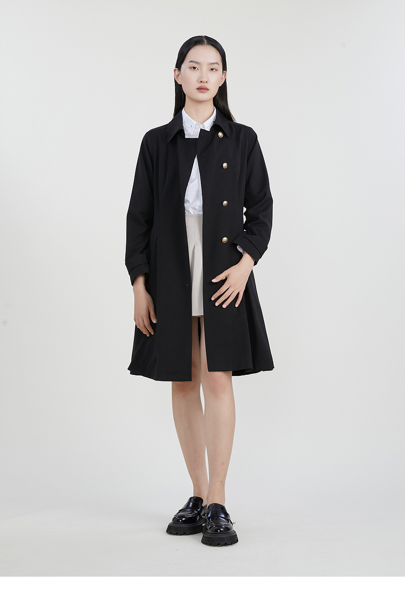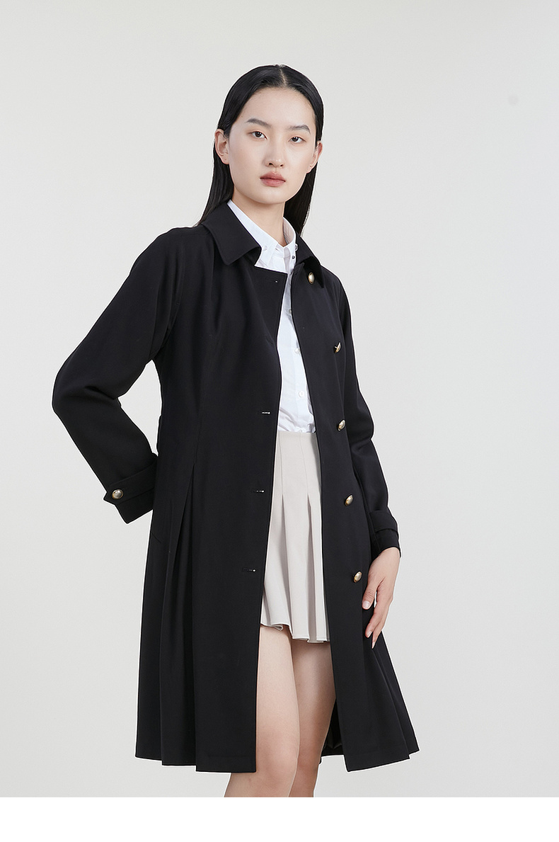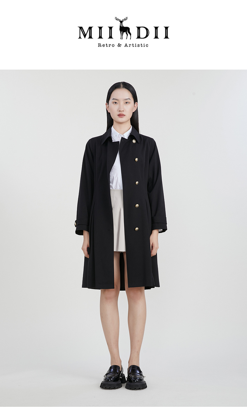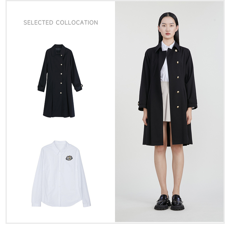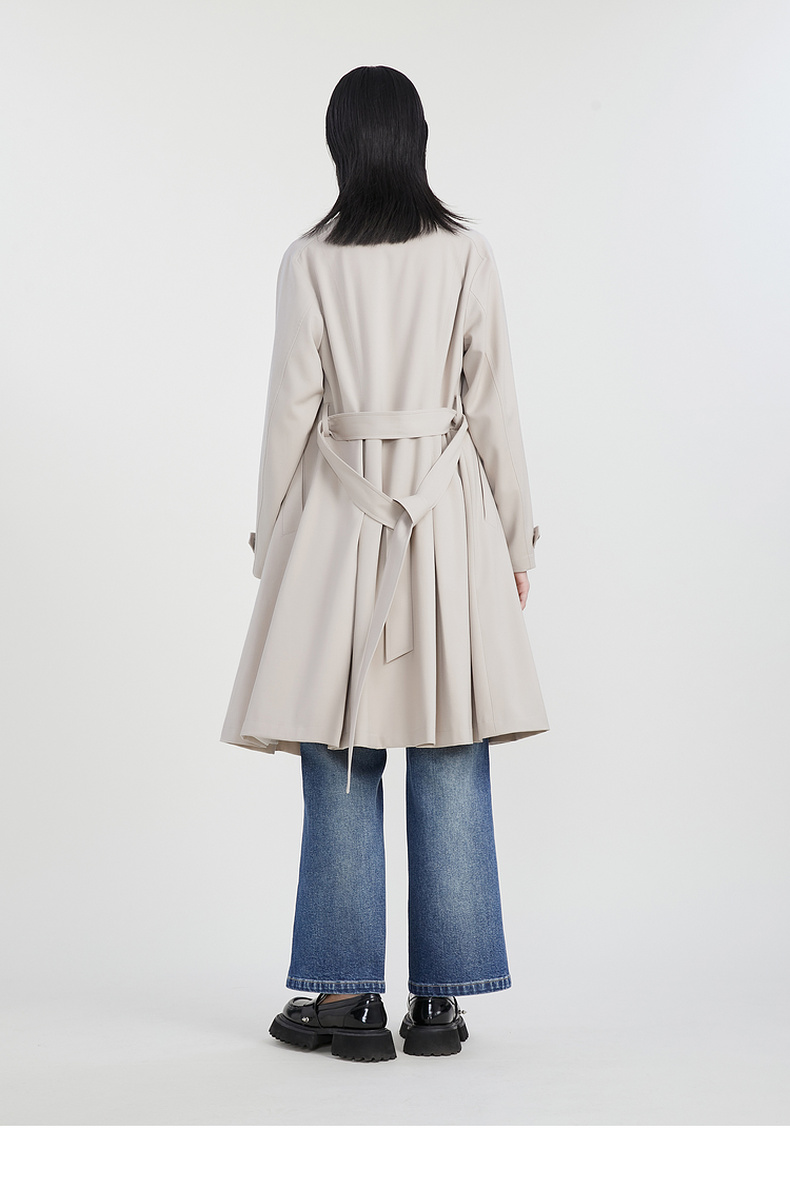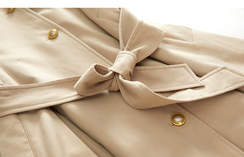 谜底单排扣长款风衣女23春新款简约纯色通勤外套配腰带231ME0140
