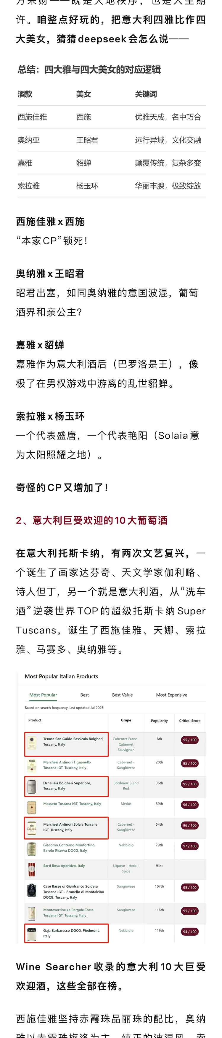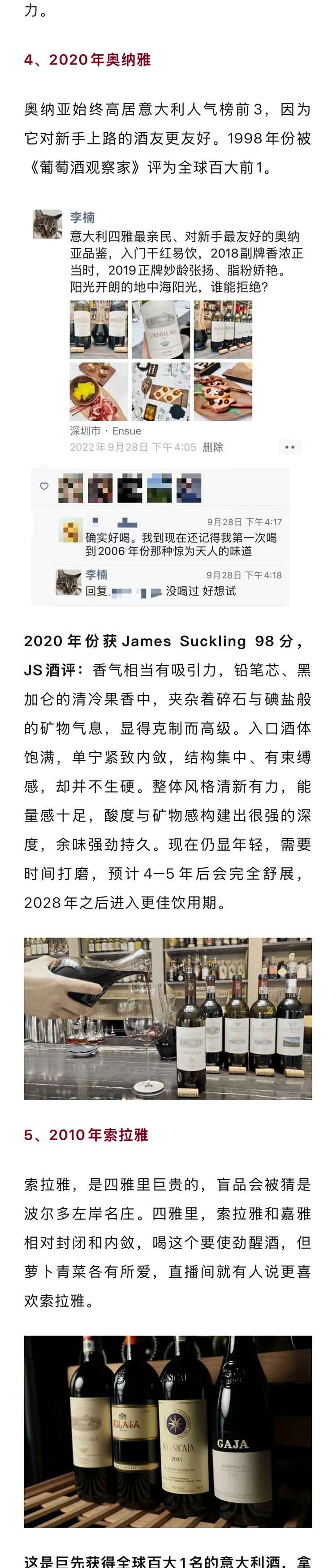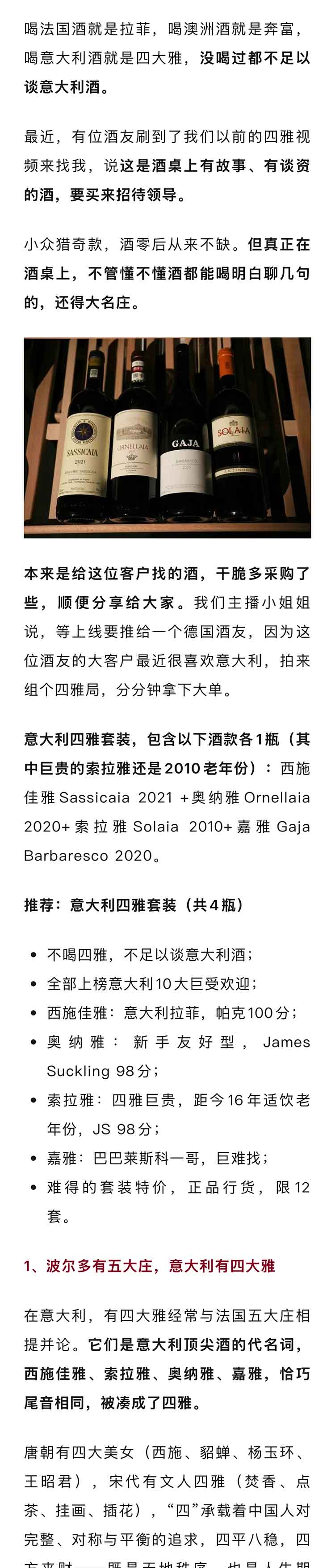 【意大利四雅套装】西施佳雅2021 +奥纳雅2020+索拉雅2010+嘉雅2020
