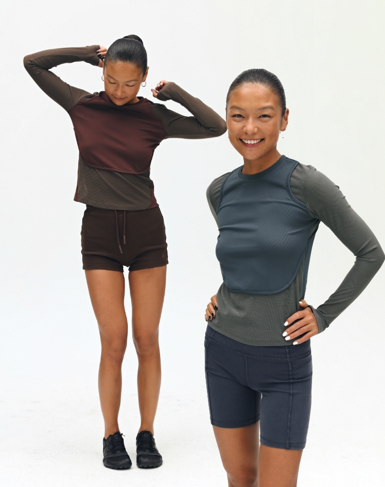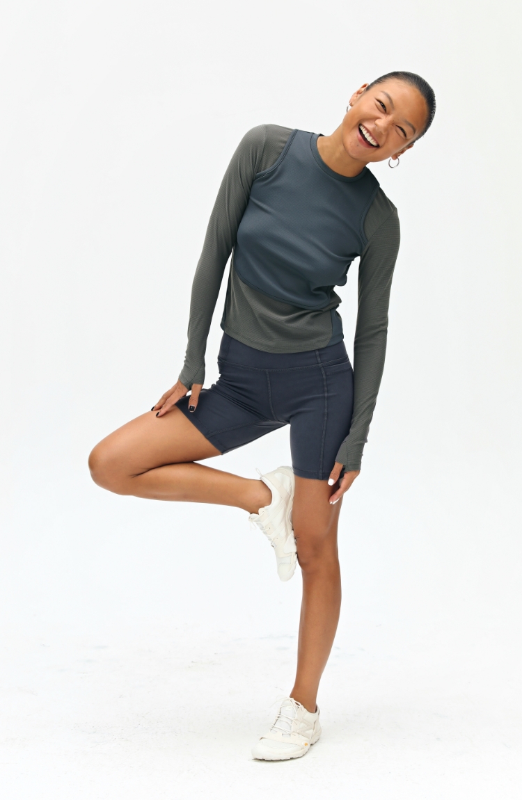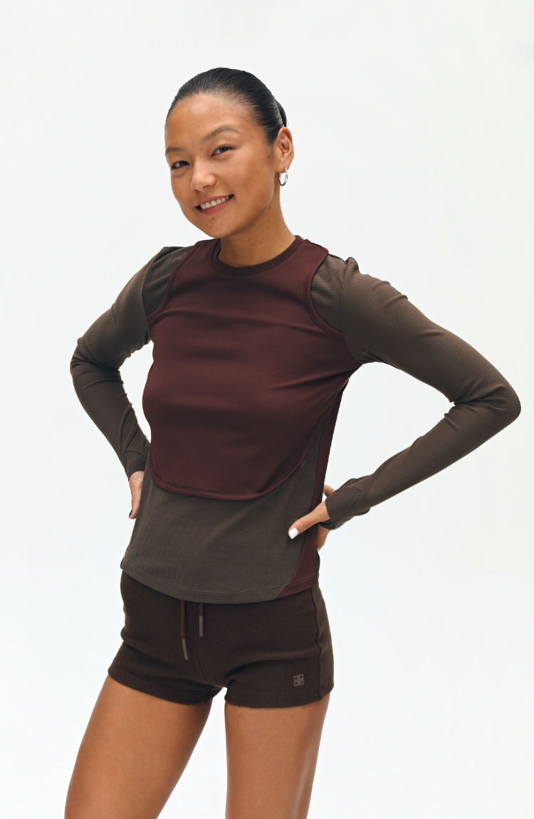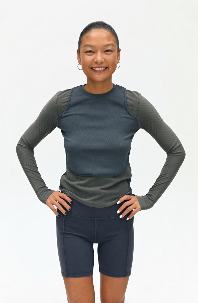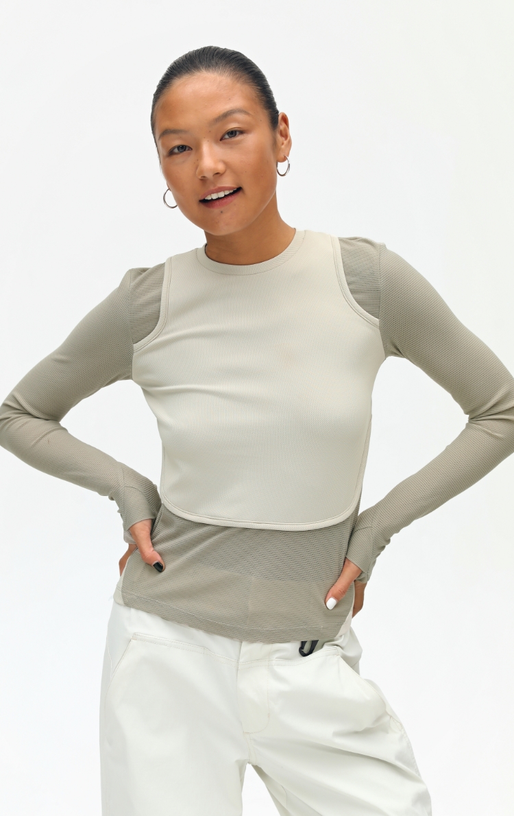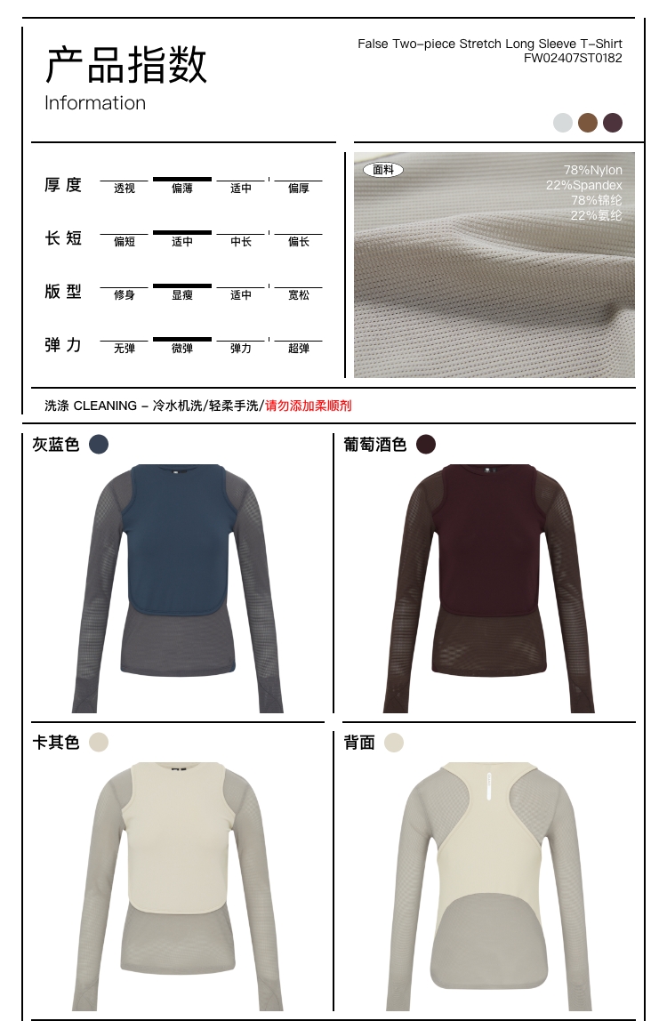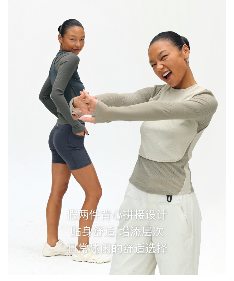 oneup假两件弹力长袖T恤