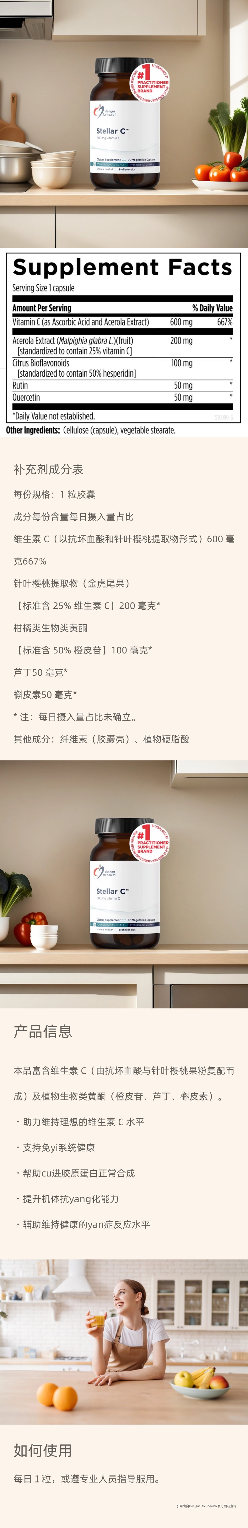 保税仓发货 美国DFH Stellar C™ 维生素C胶囊 90粒