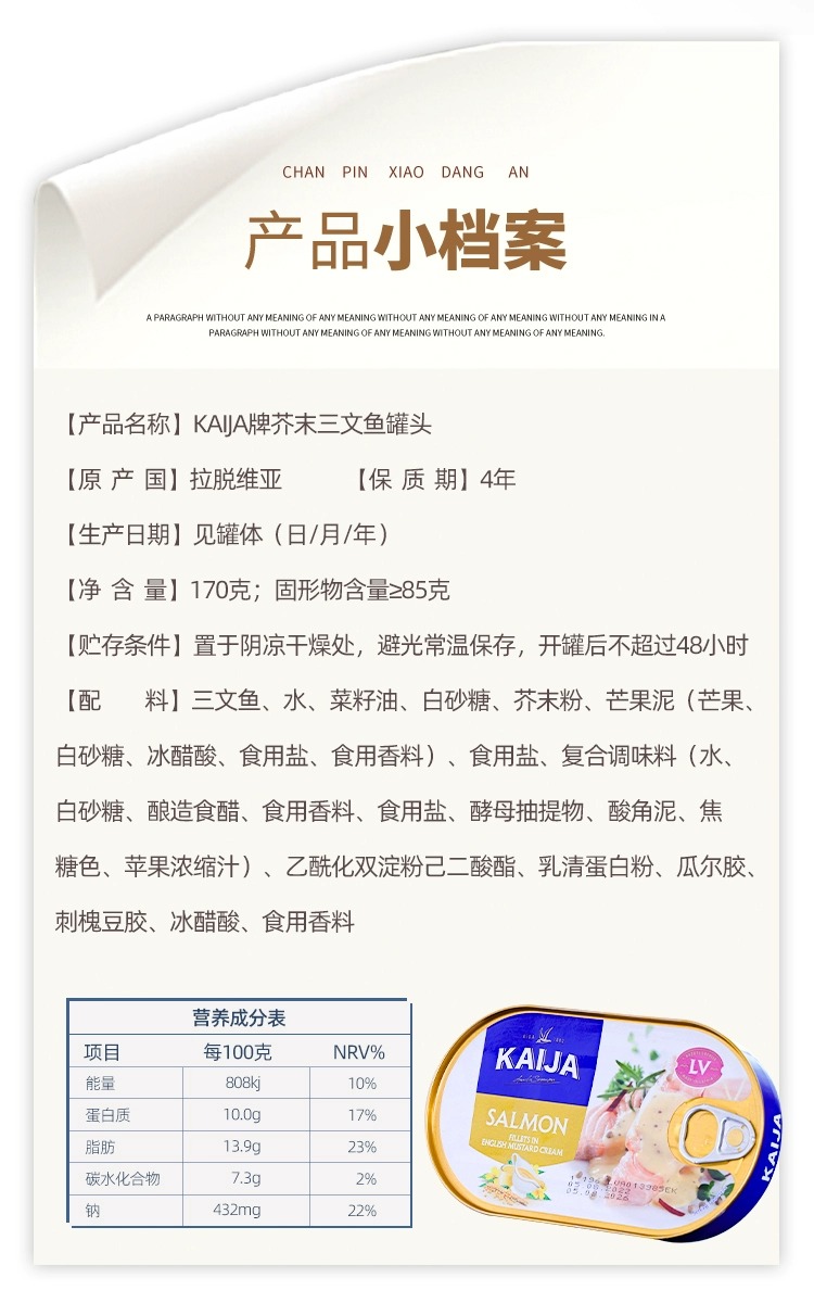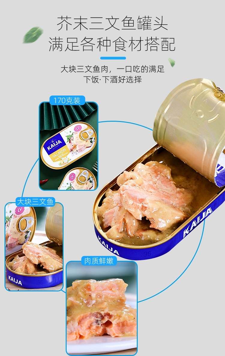 【中欧班列精选】KAIJA牌芥末三文鱼罐头170g/盒 原装进口