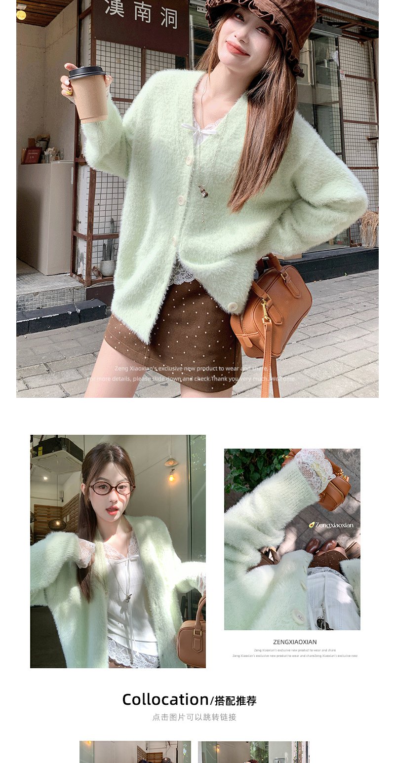 <曾小咸推荐>现货秒杀 !微信超特价!韩系v领水貂毛毛衣外套 日常209.99 立减100 秒杀109.99!!