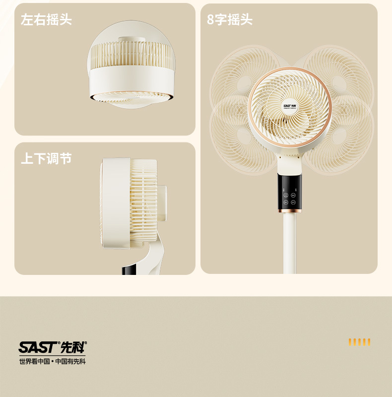 「空气循环!AI语音遥控」先科空气循环扇电风扇 落地扇静音遥控风扇宿舍大风力涡轮电扇生活电器