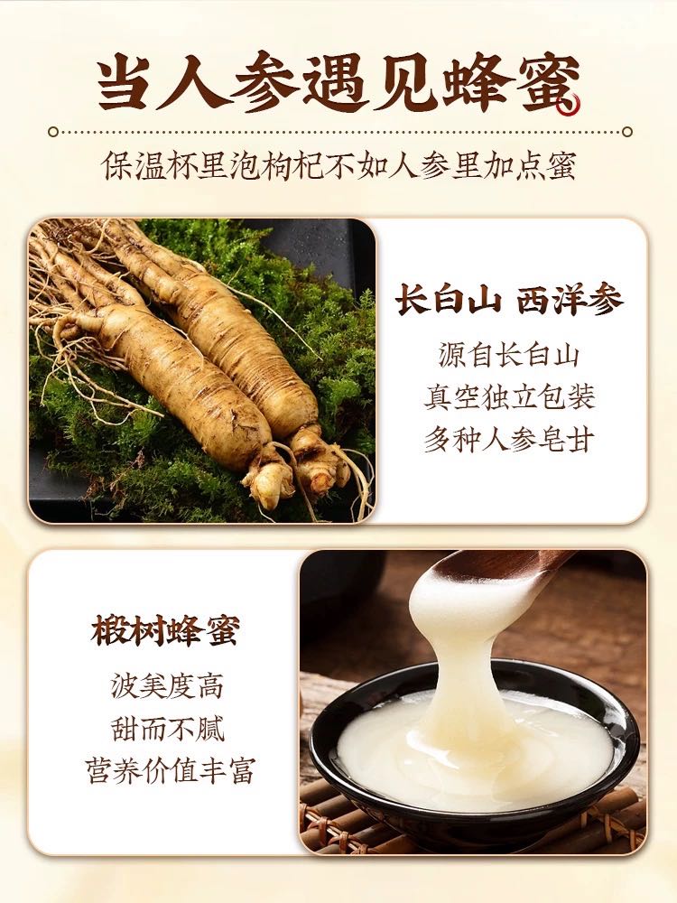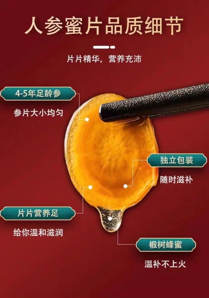⚠️采用5年鲜参 蒸煮过后浸泡在蜂蜜中制作而成