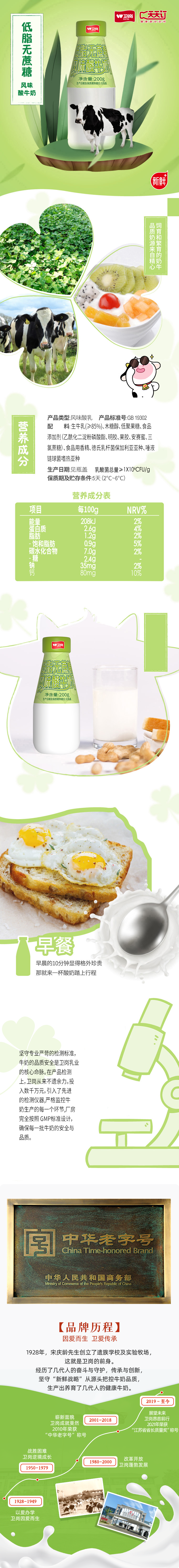 200g瓶装低脂无蔗糖酸牛奶