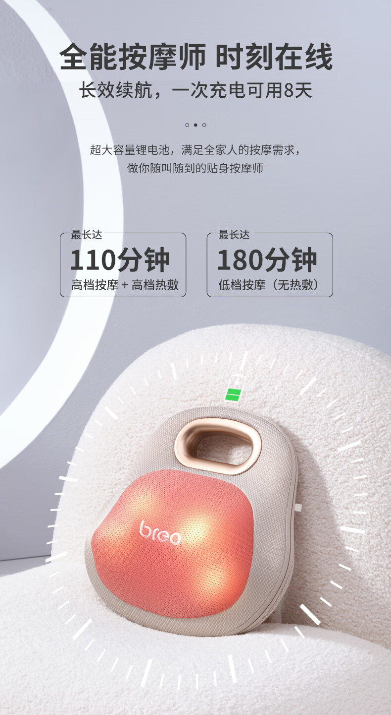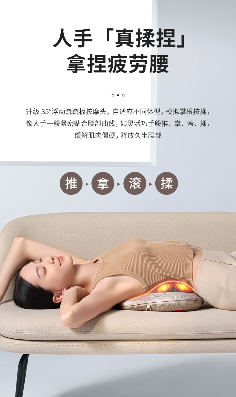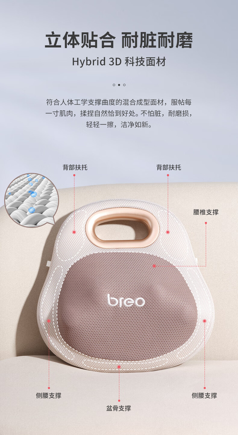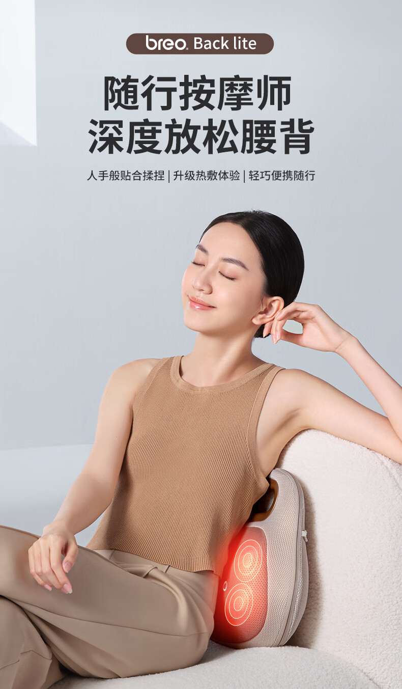 倍轻松(breo)腰部按摩器Back Lite按摩垫靠垫 肩腿背部颈椎按摩仪器揉捏热敷便携 送父母男女友520情人节礼物