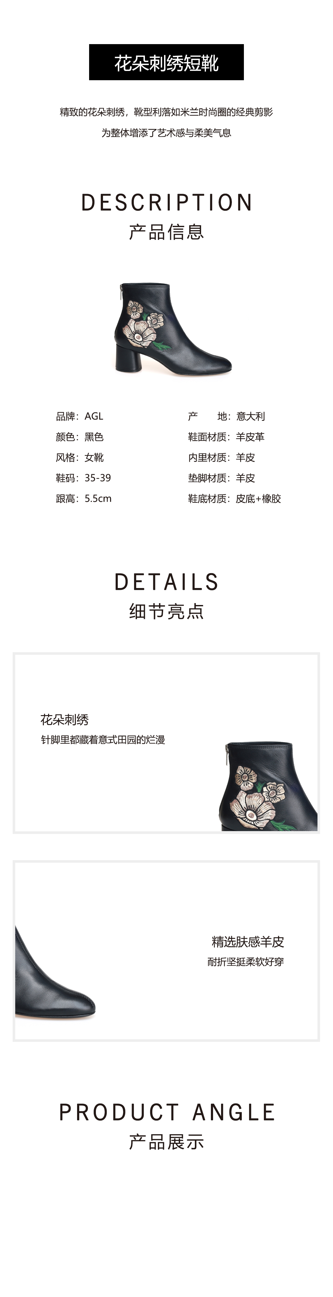 豪麟名鞋AGL女鞋短靴羊皮革D140626P黑色