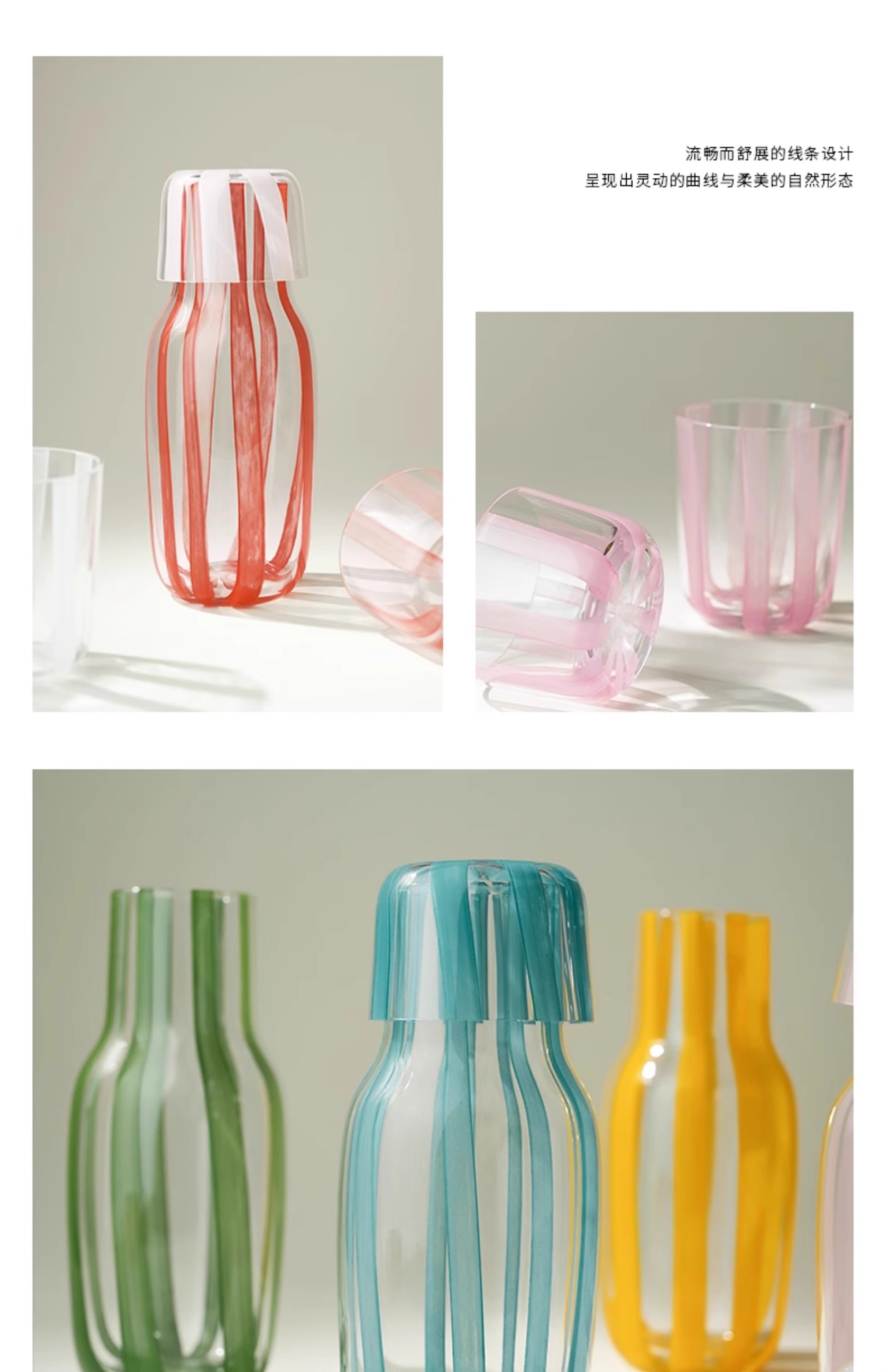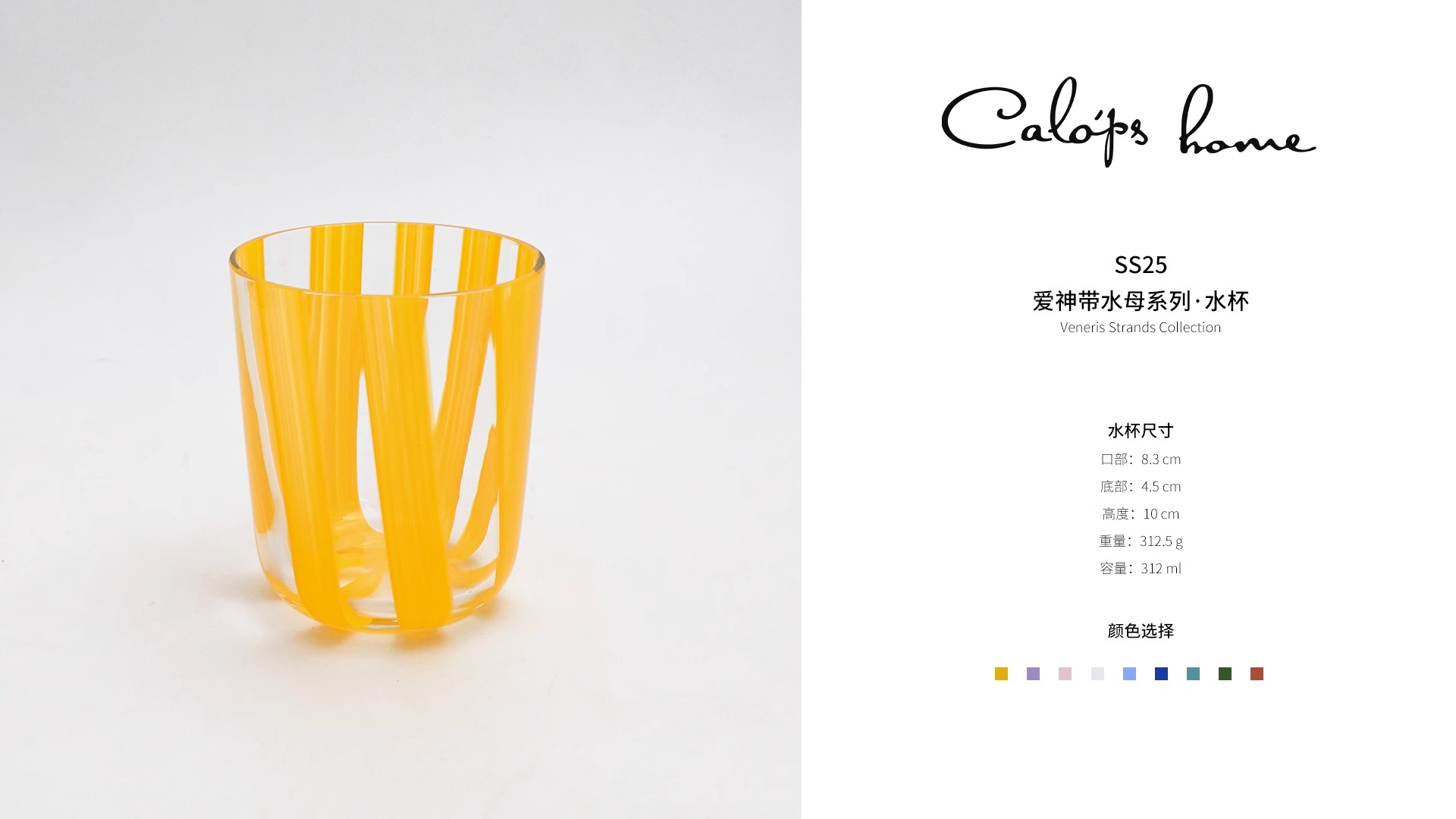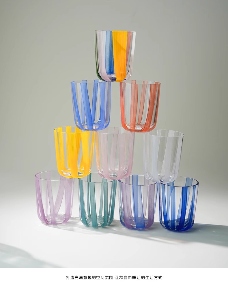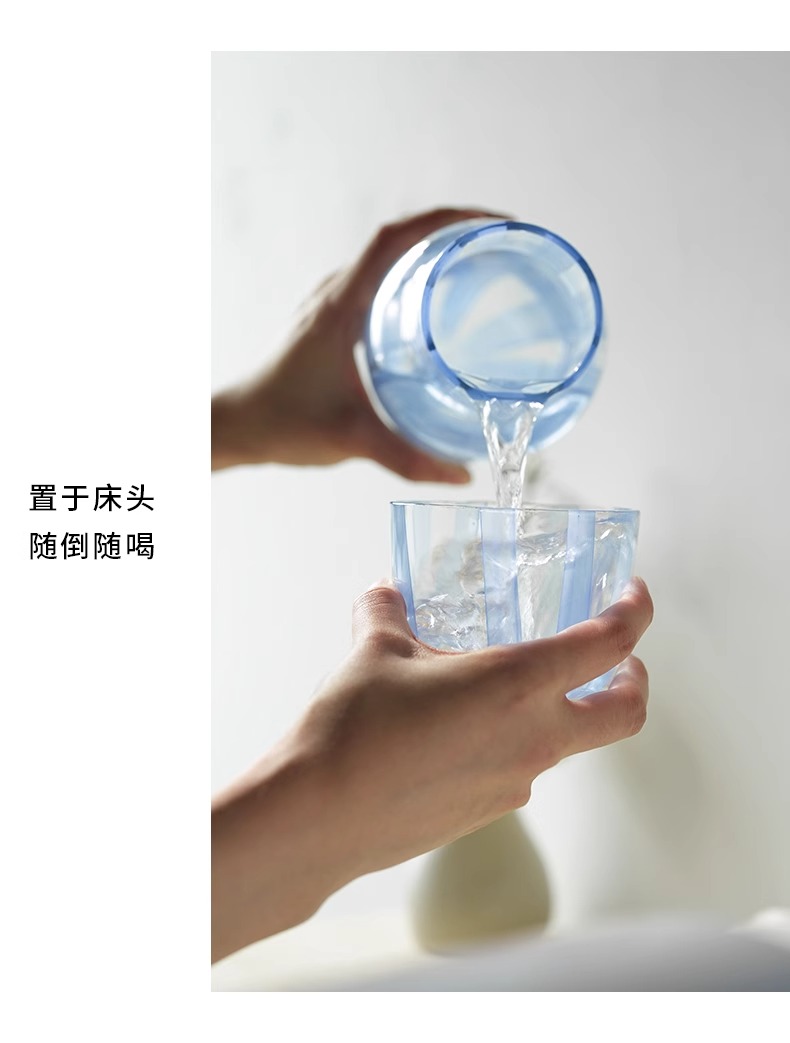 【清仓特惠4.5折,仅1件,无货退款】爱神带水母凉水杯套装家用 无铅水晶手工条纹玻璃杯高颜值喝水杯calops home-SS25SB-002凯洛诗爱神水母杯