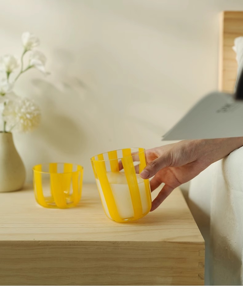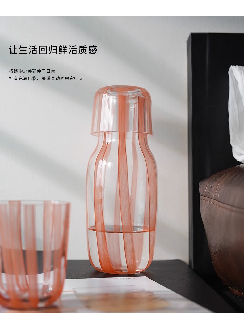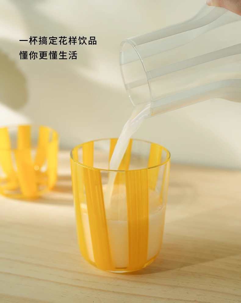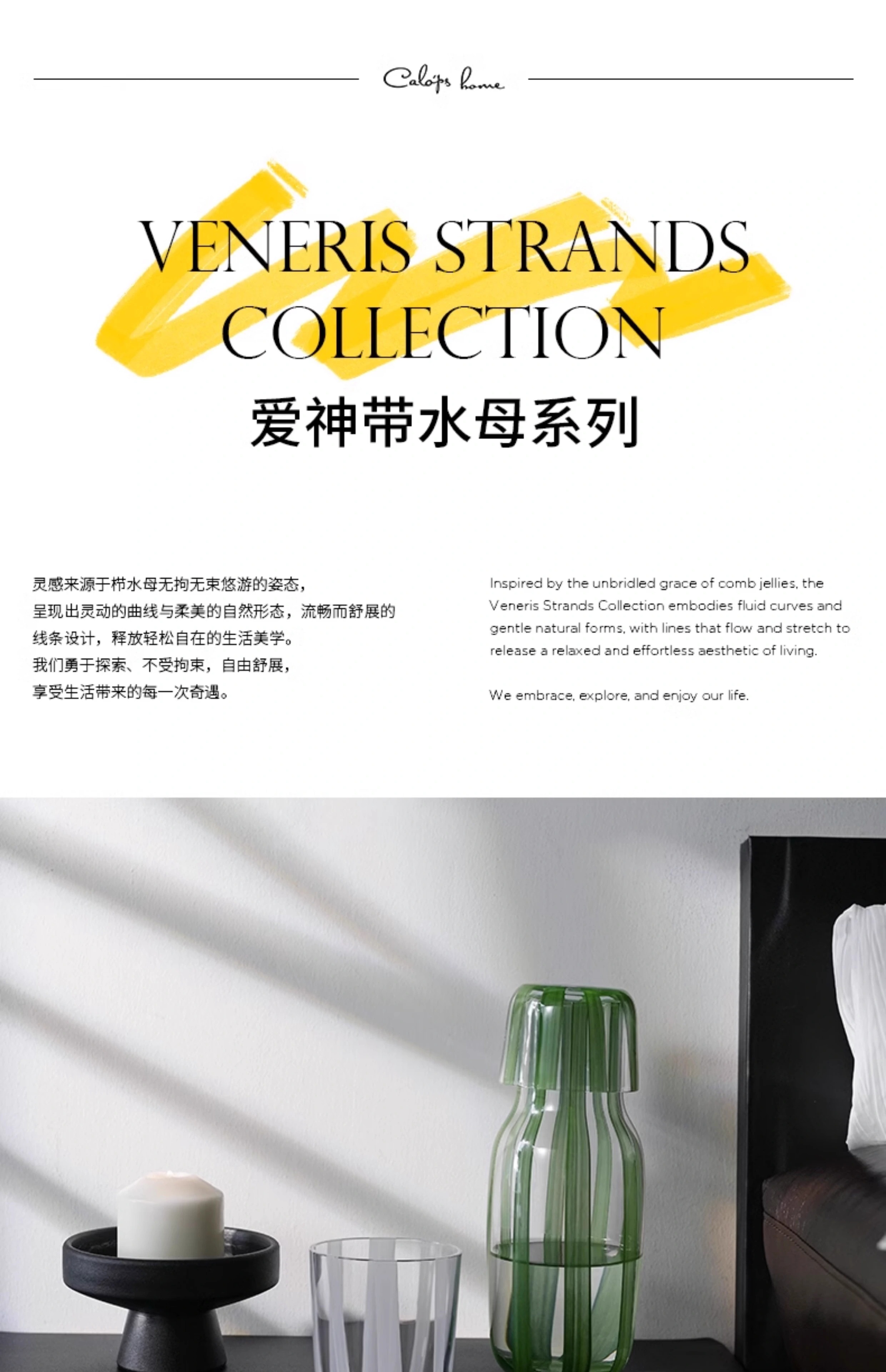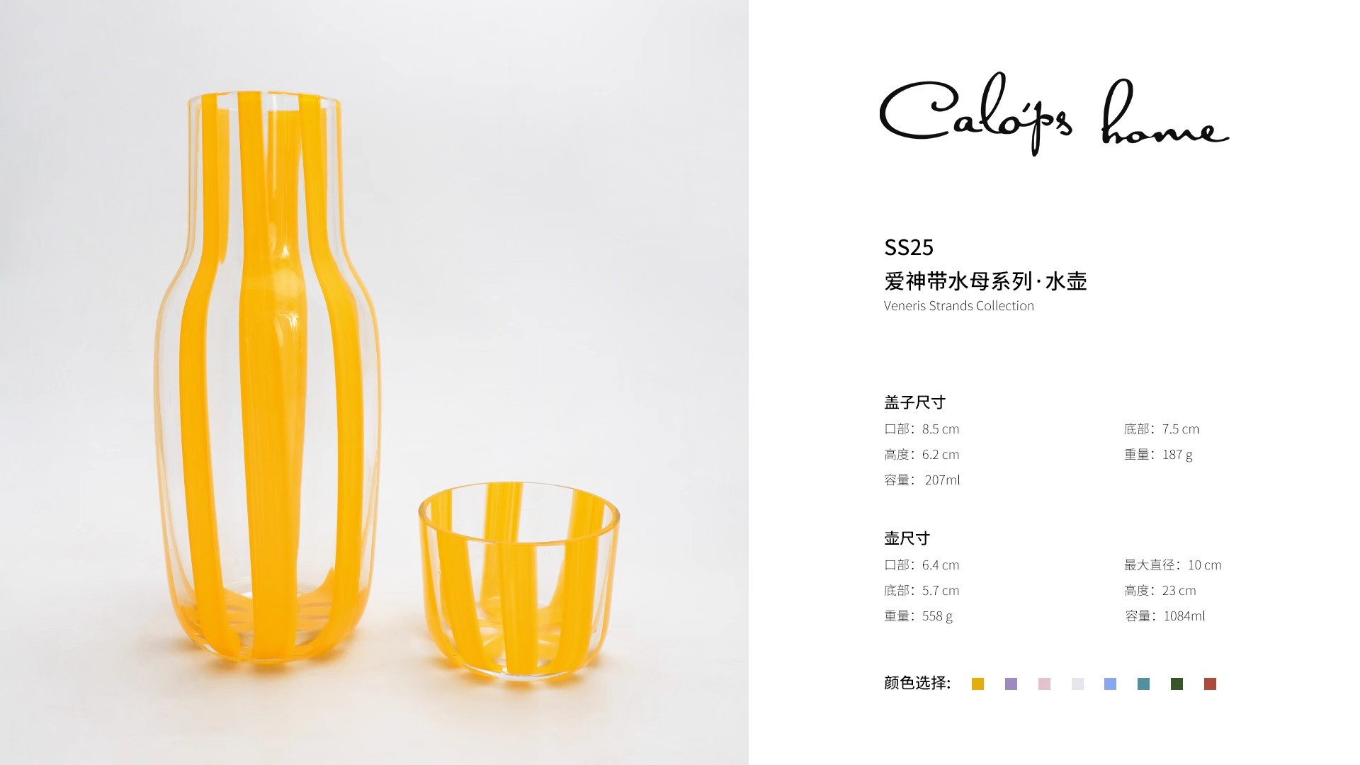 【清仓特惠4.5折,仅1件,无货退款】爱神带水母凉水杯套装家用 无铅水晶手工条纹玻璃杯高颜值喝水杯calops home-SS25SB-002凯洛诗爱神水母杯