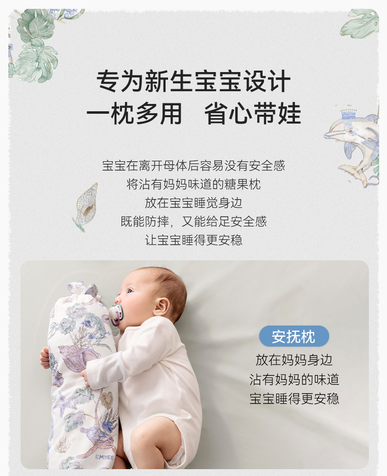 【安抚玩乐】新品嫚熙婴儿糖果枕安抚枕宝宝多功能防摔神器睡觉抱枕档枕