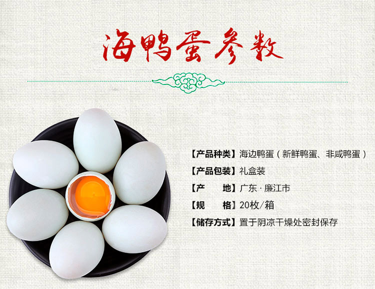 【湛江帮扶】廉心海鸭蛋20枚装 | 新鲜海鸭蛋(非咸鸭蛋)