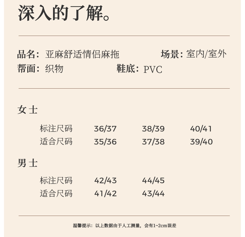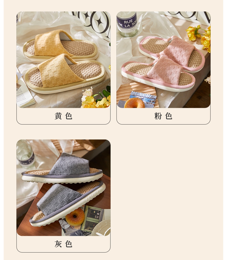 【亚麻拖】男/女同款亚麻拖居家室内拖鞋防滑软底拖【WG24651】
