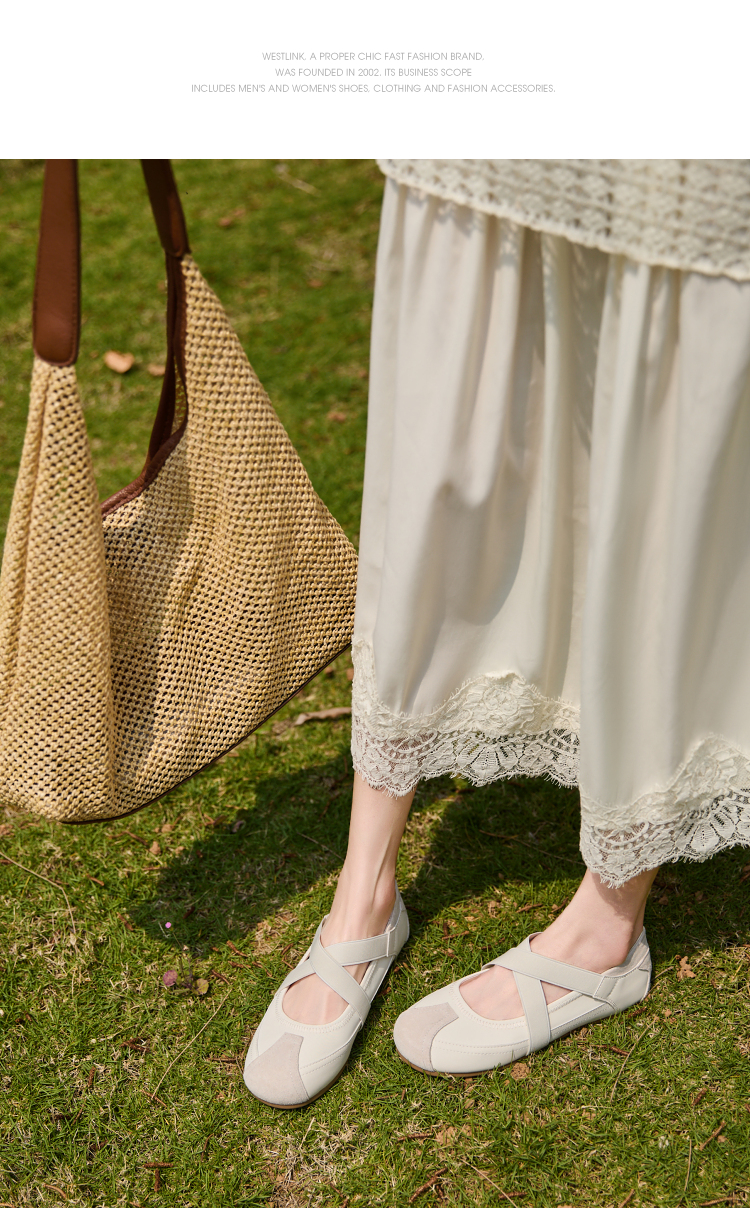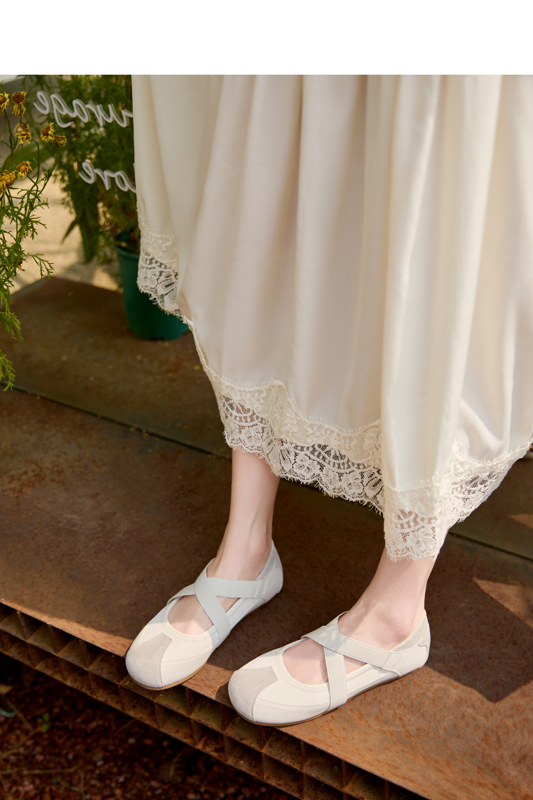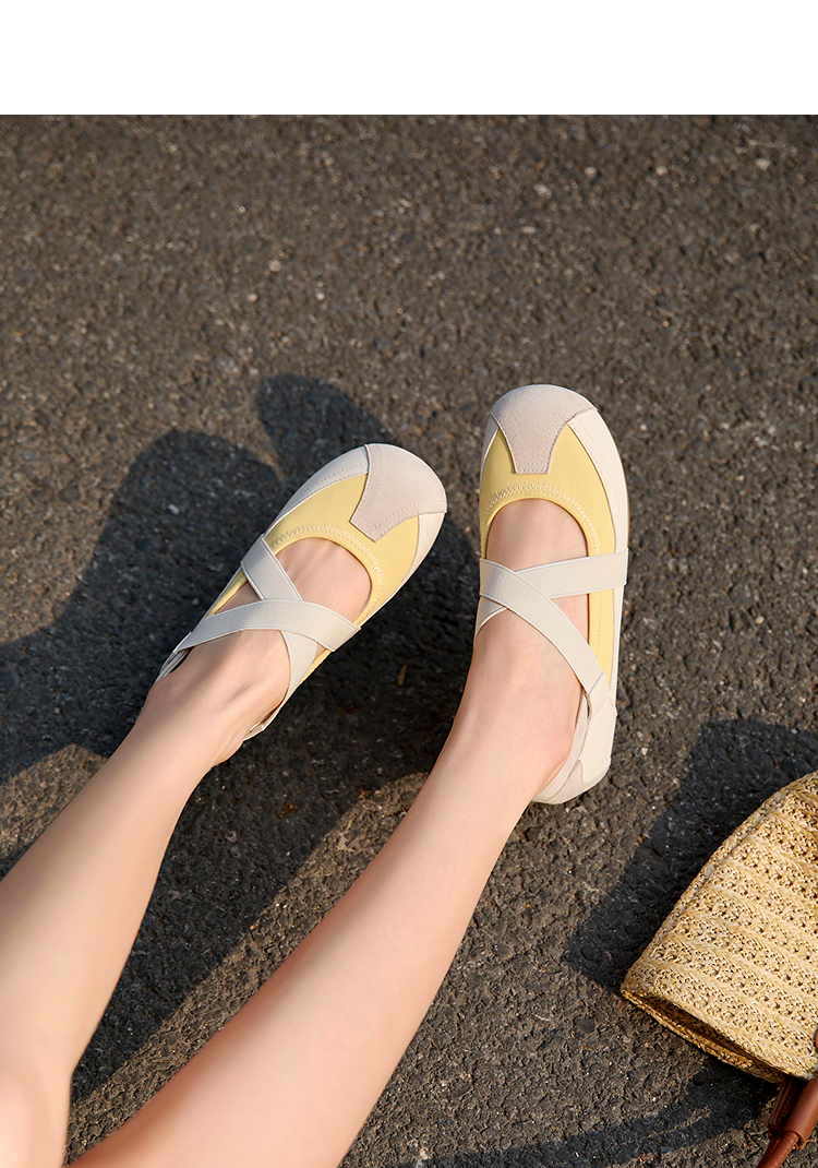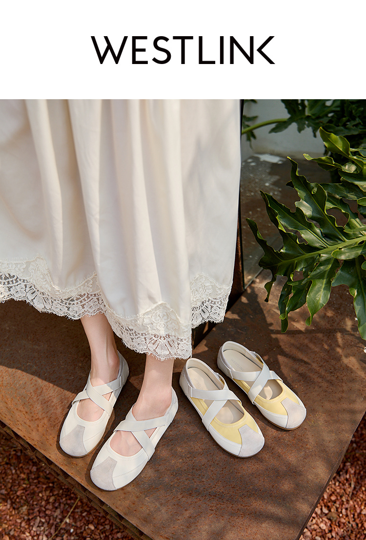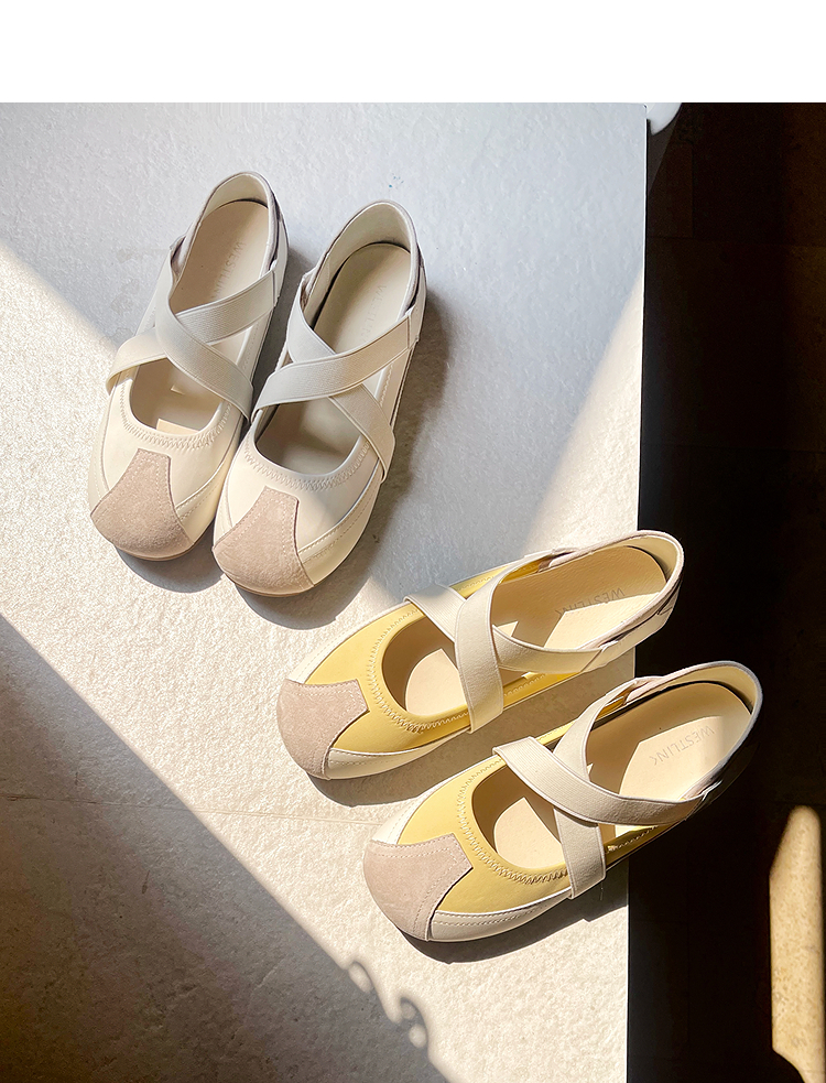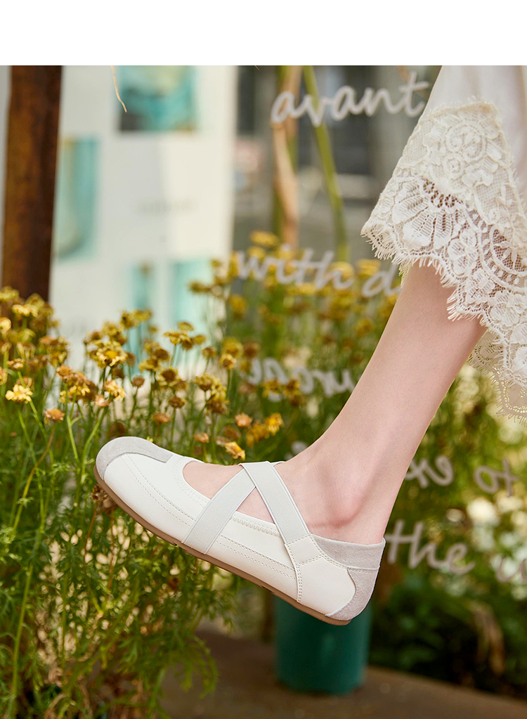 西遇运动风芭蕾鞋女新款春夏休闲交叉带玛丽珍鞋平底软底单鞋V0156579