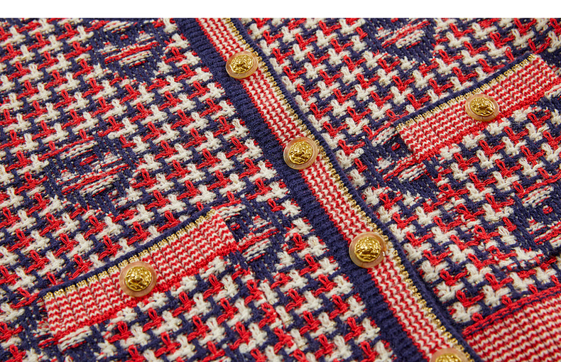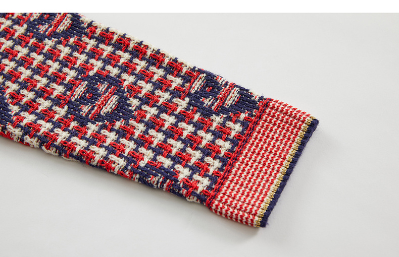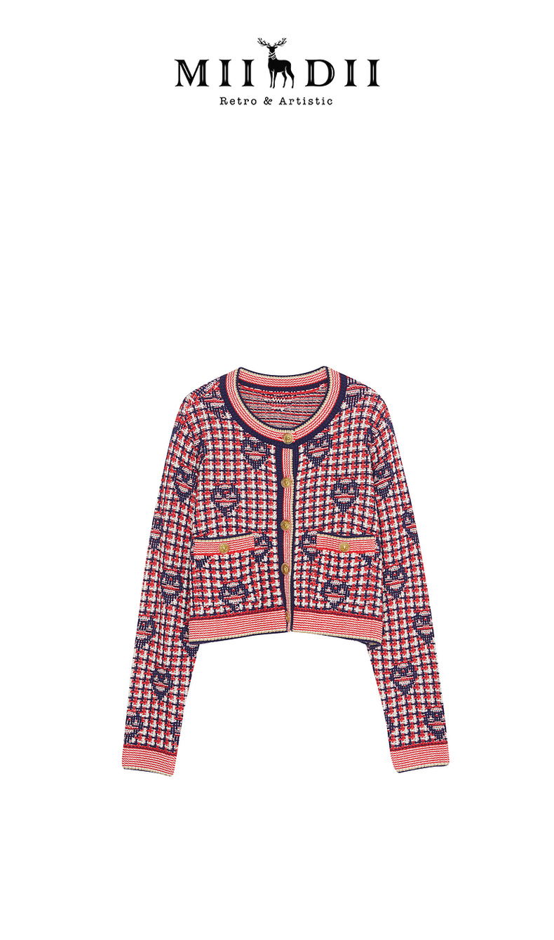 谜底短款针织开衫女2023冬新品小香风圆领复古提花毛衫234MZ1990