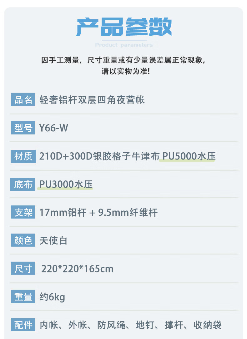 【小家电】趣游帮轻奢铝杆双层四角夜营帐Y66-W HF