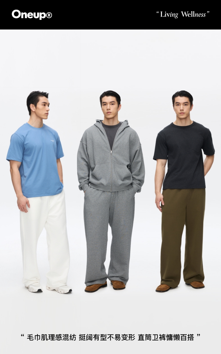 Oneup起毛直筒卫裤