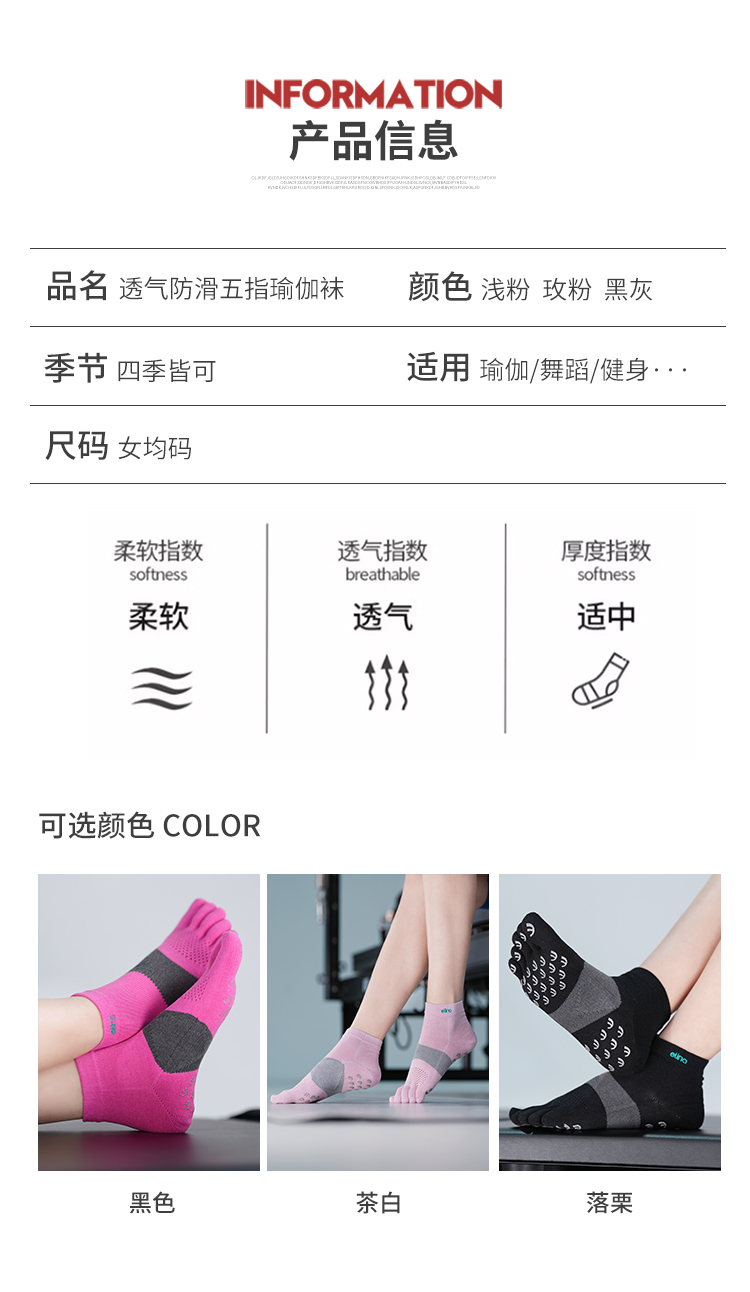 elina一恋透气防滑五指瑜伽袜EYG24010