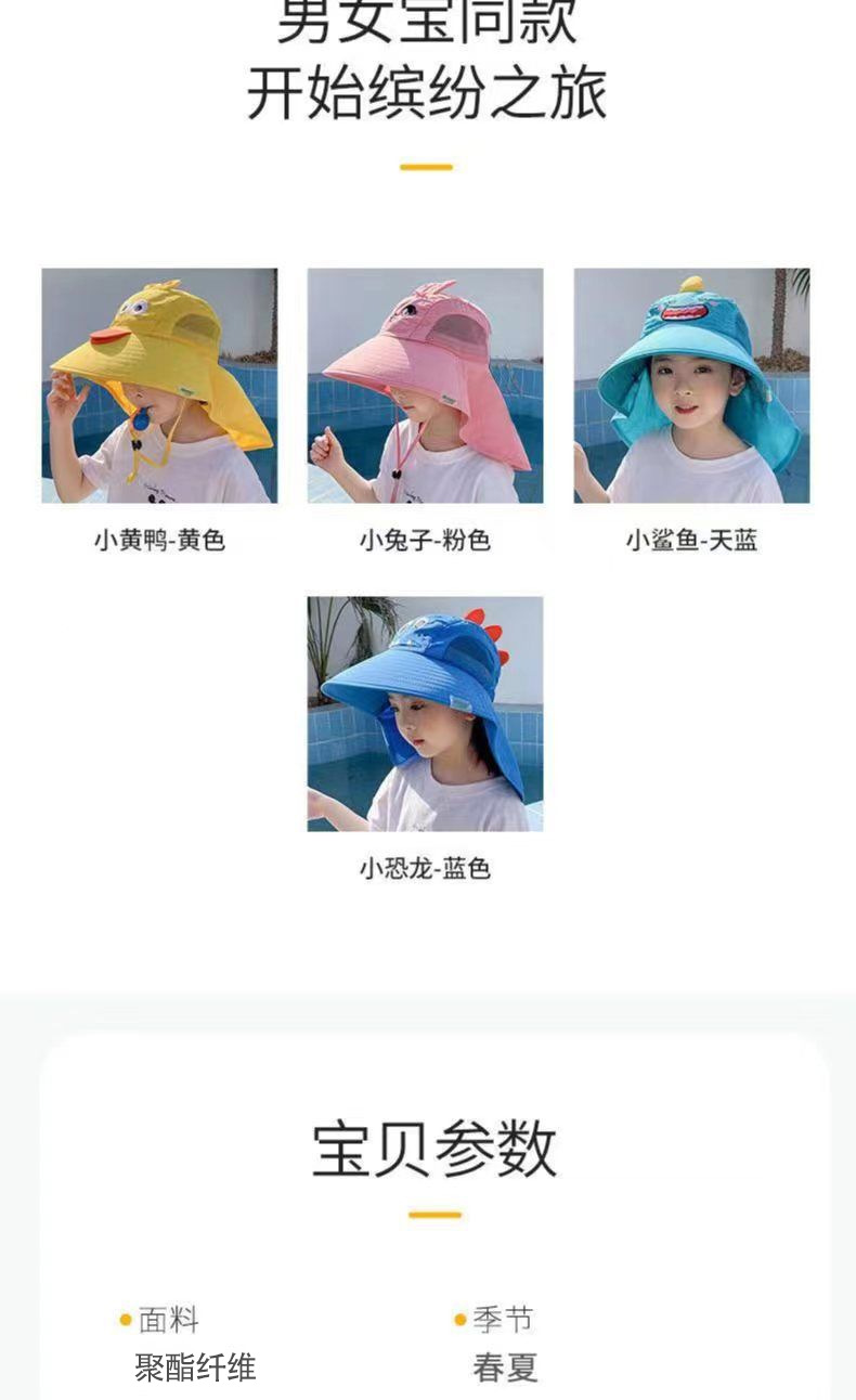 「24.9包邮!轻薄防晒」儿童防晒帽宝宝遮阳帽沙滩帽防紫外线夏季薄款大帽檐渔夫帽配饰