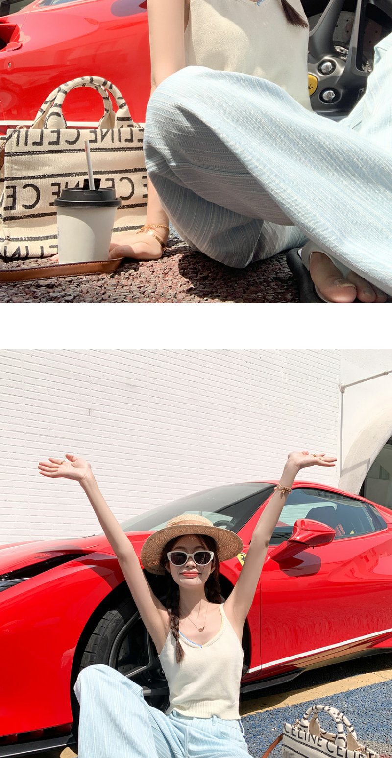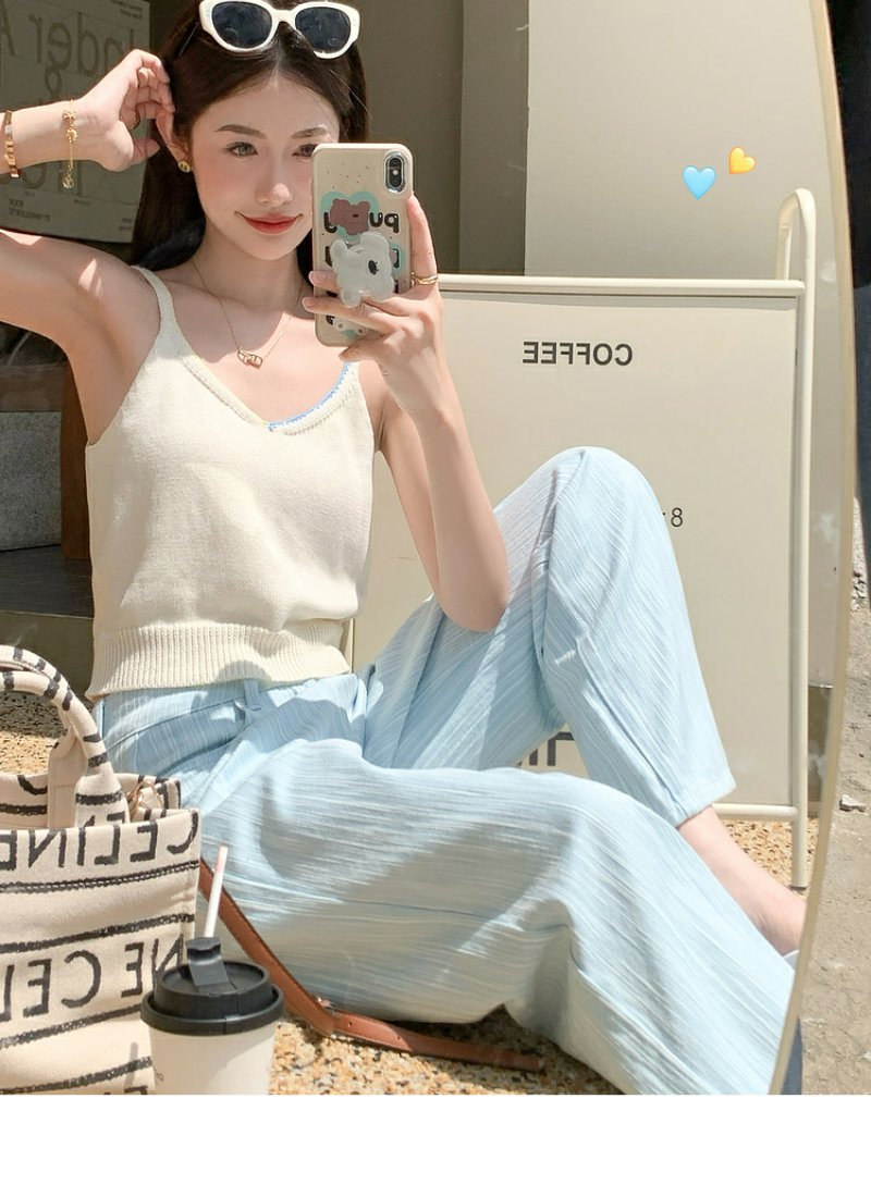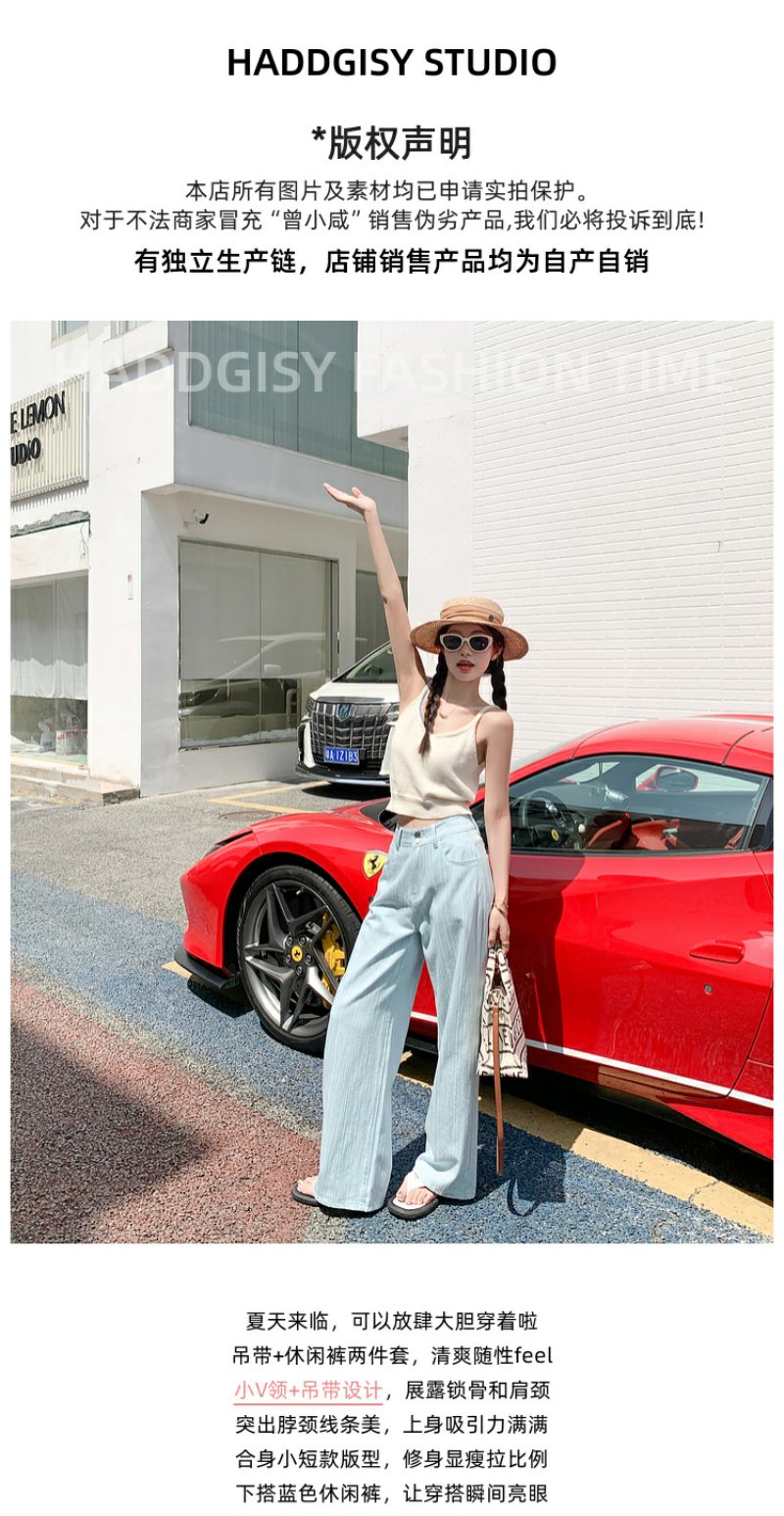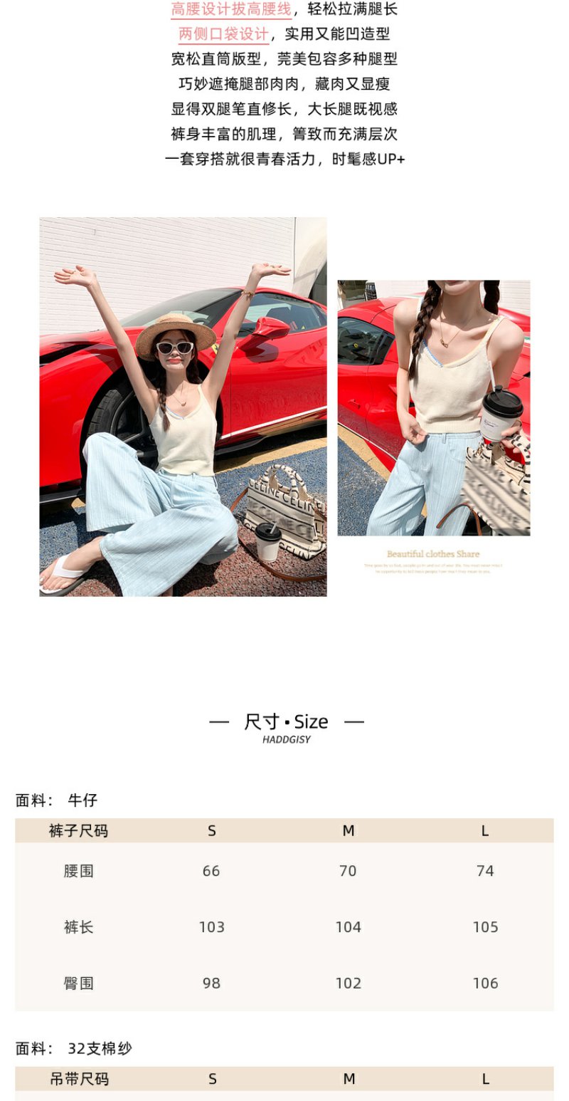 <曾小咸推荐> 【海盐冰椰椰】杏色吊带+蓝色裤子