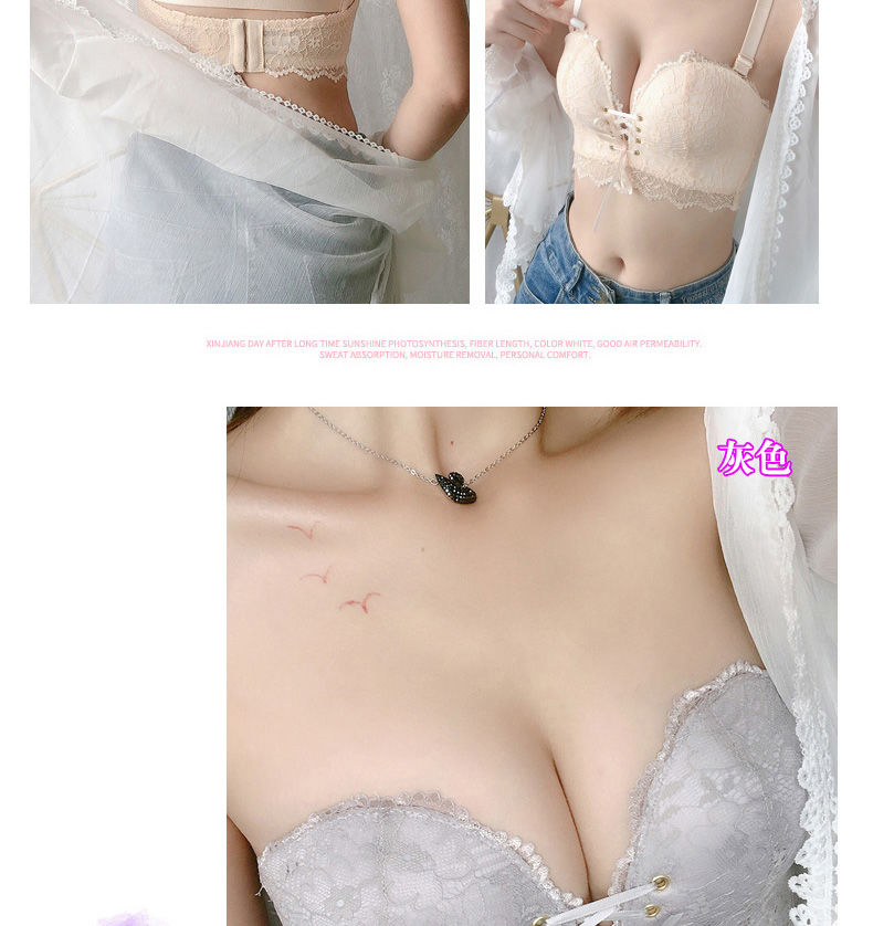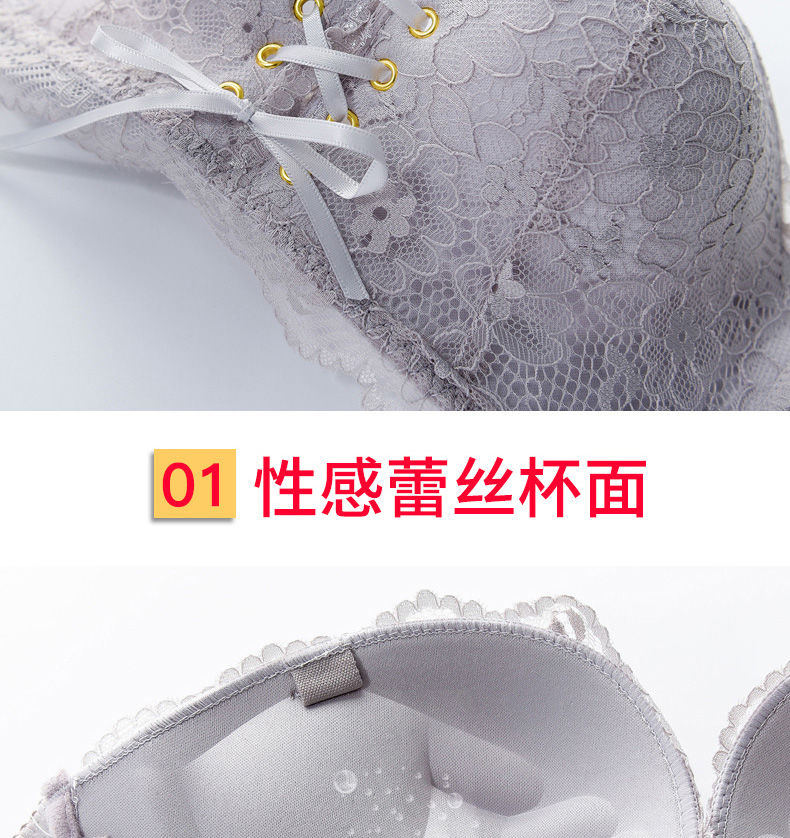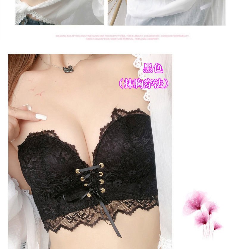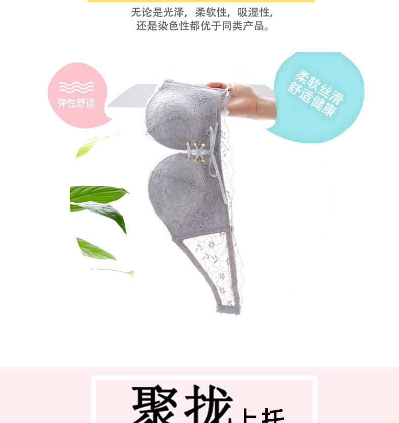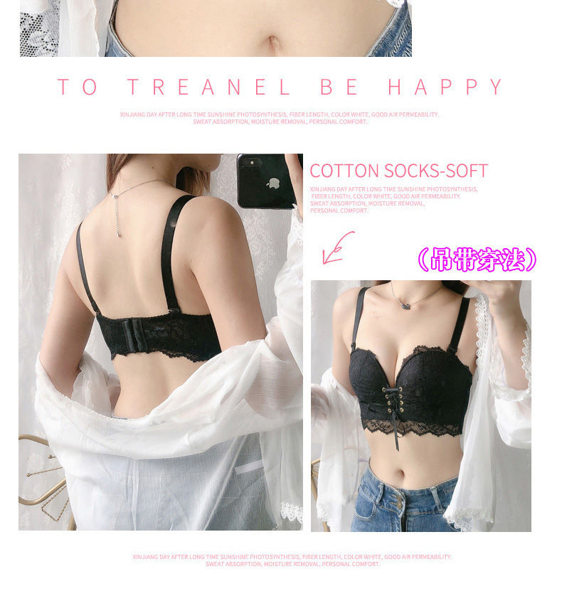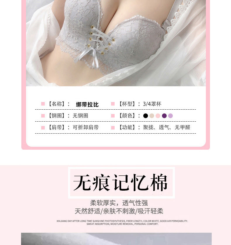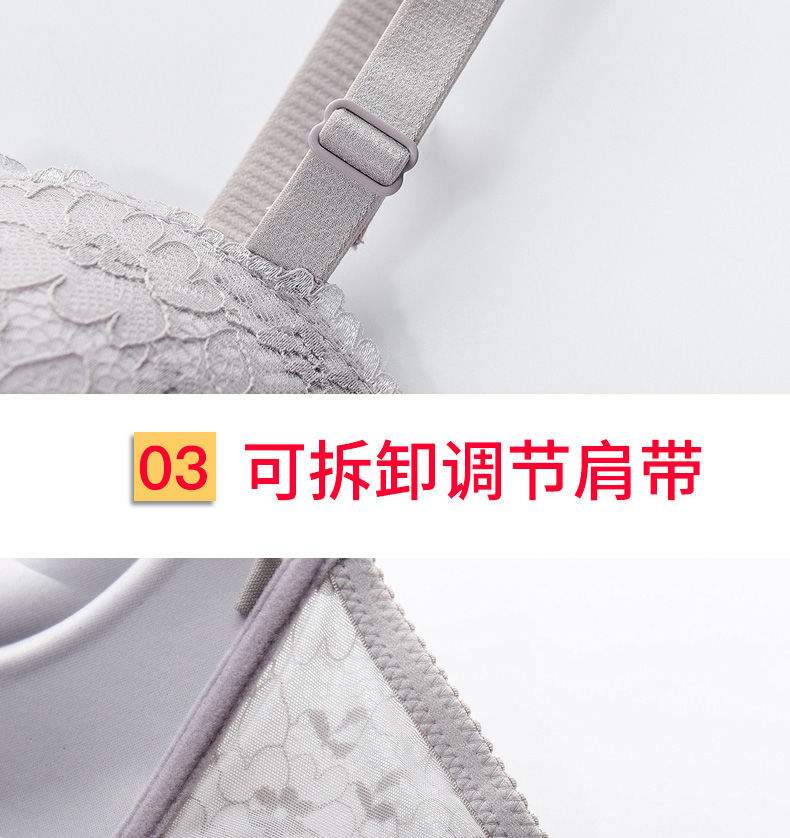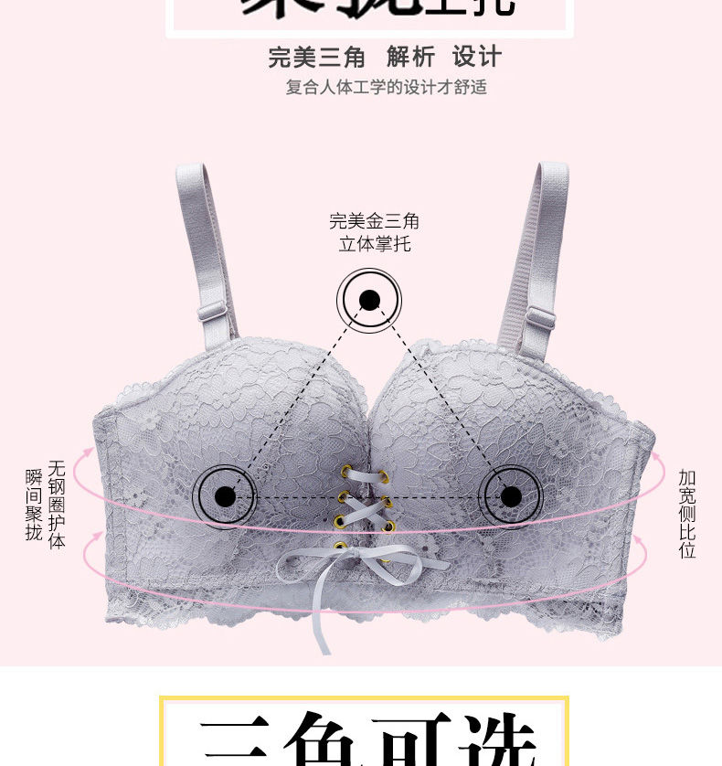 无肩绑带拉绳内衣女聚拢收副乳无钢圈文胸贴调整型上托小胸罩加厚