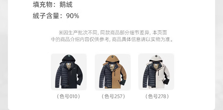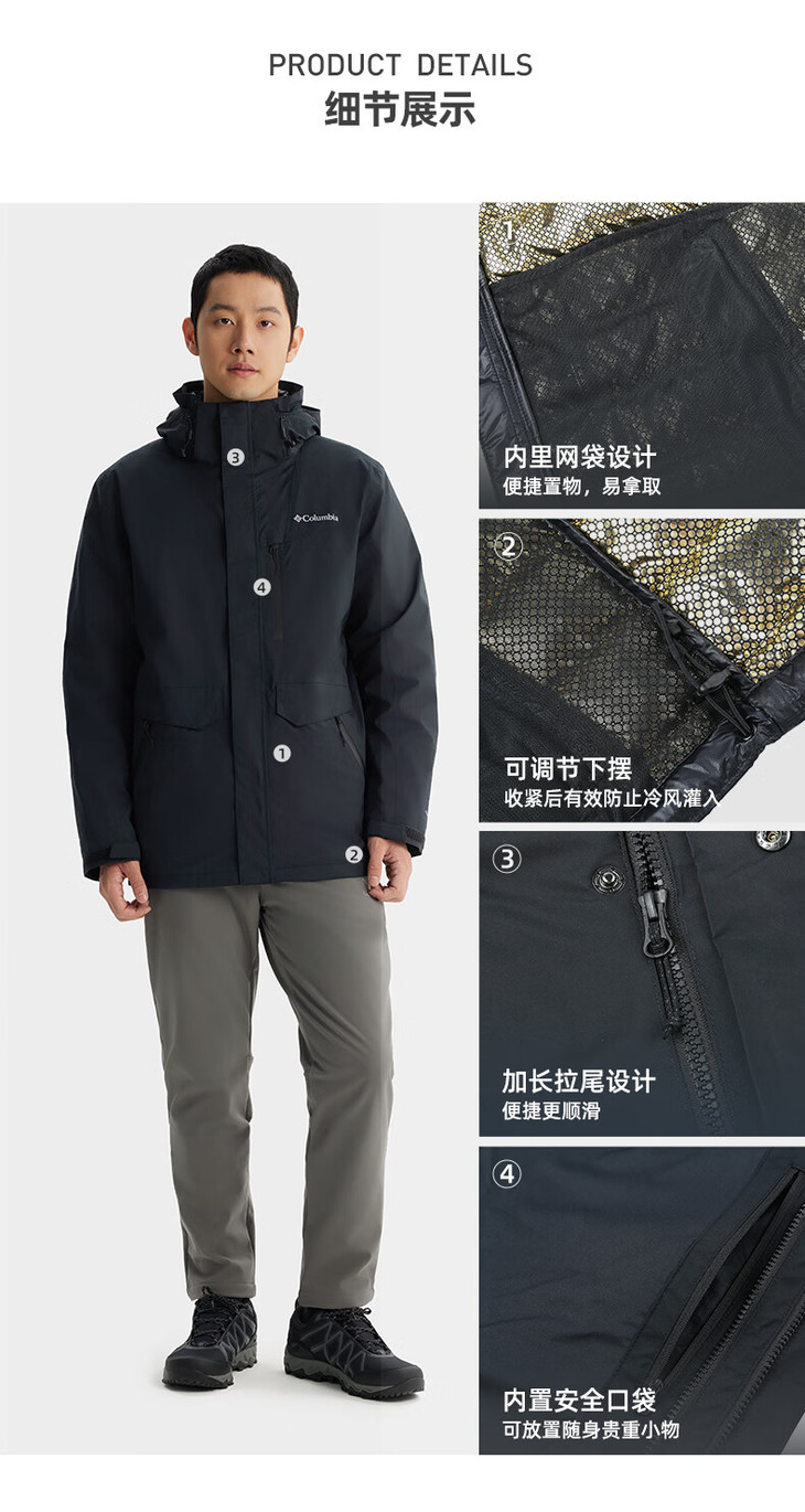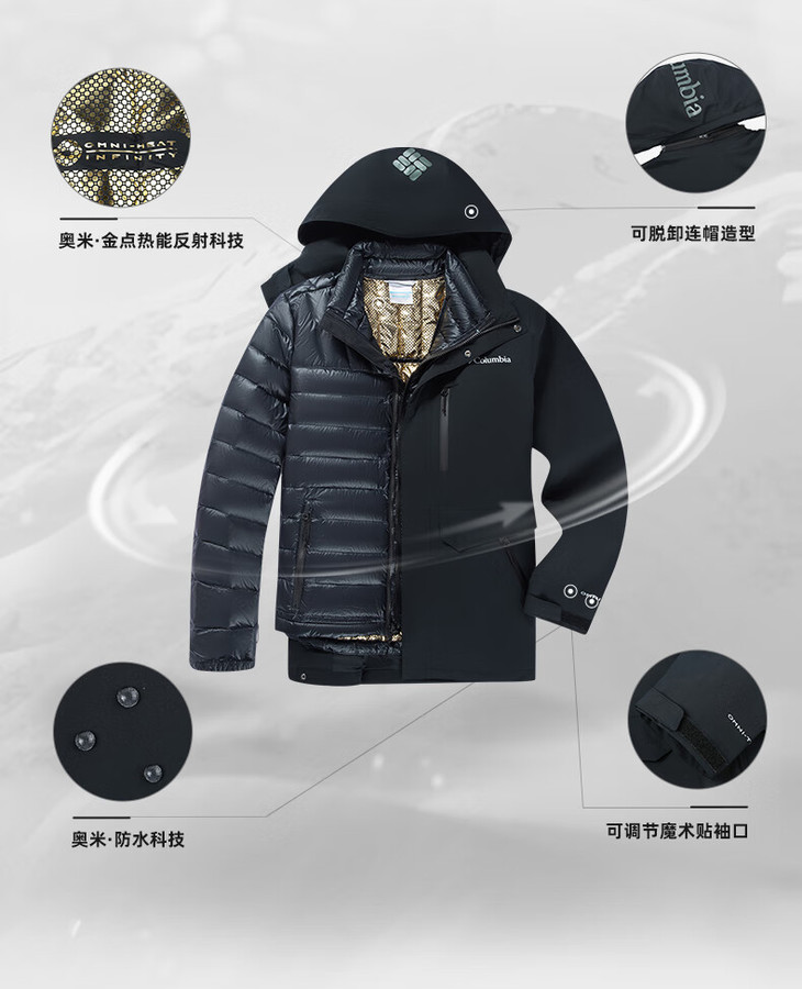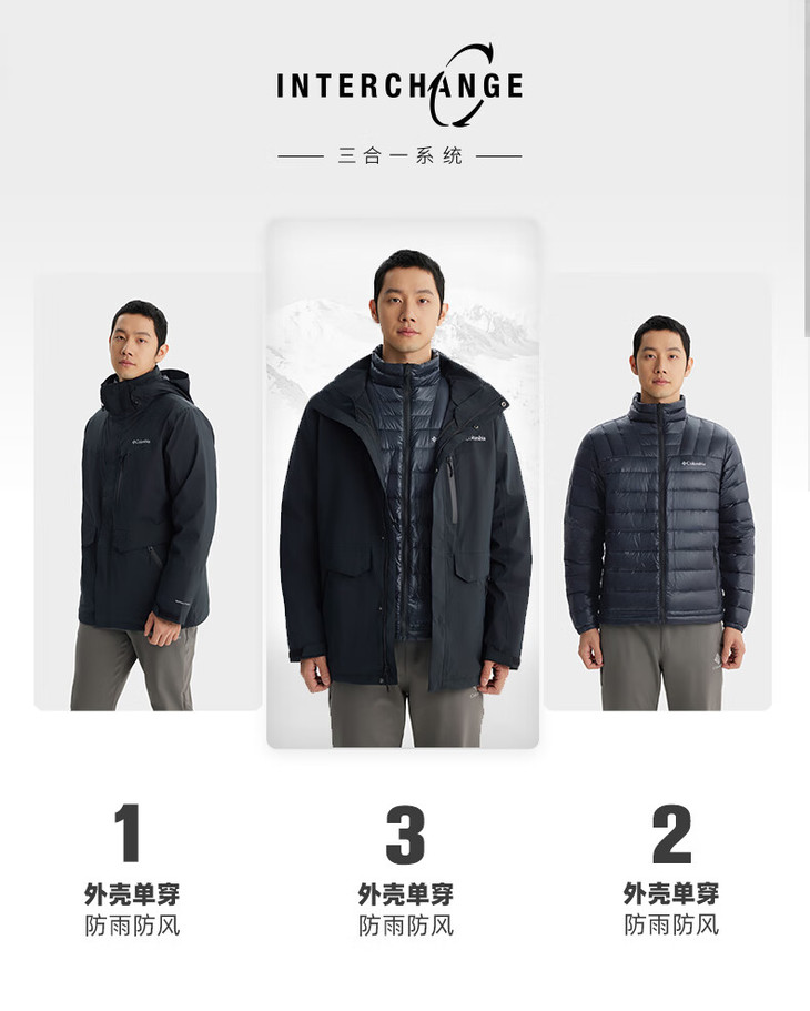 哥伦比亚男式羽绒内胆三合一外套WE9643