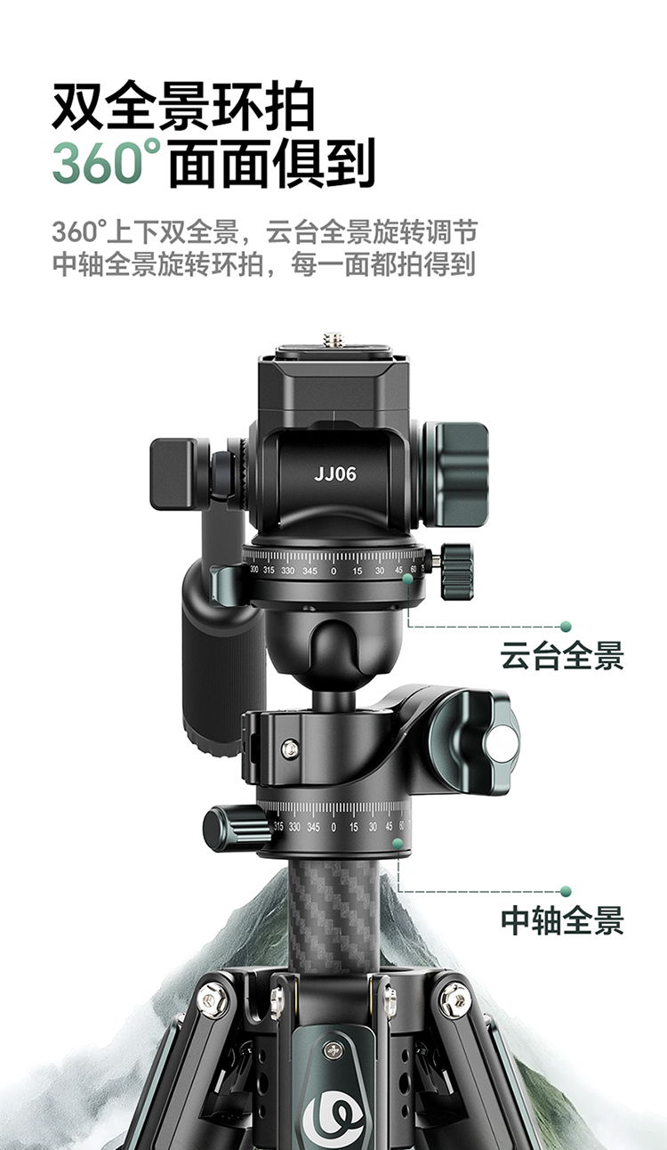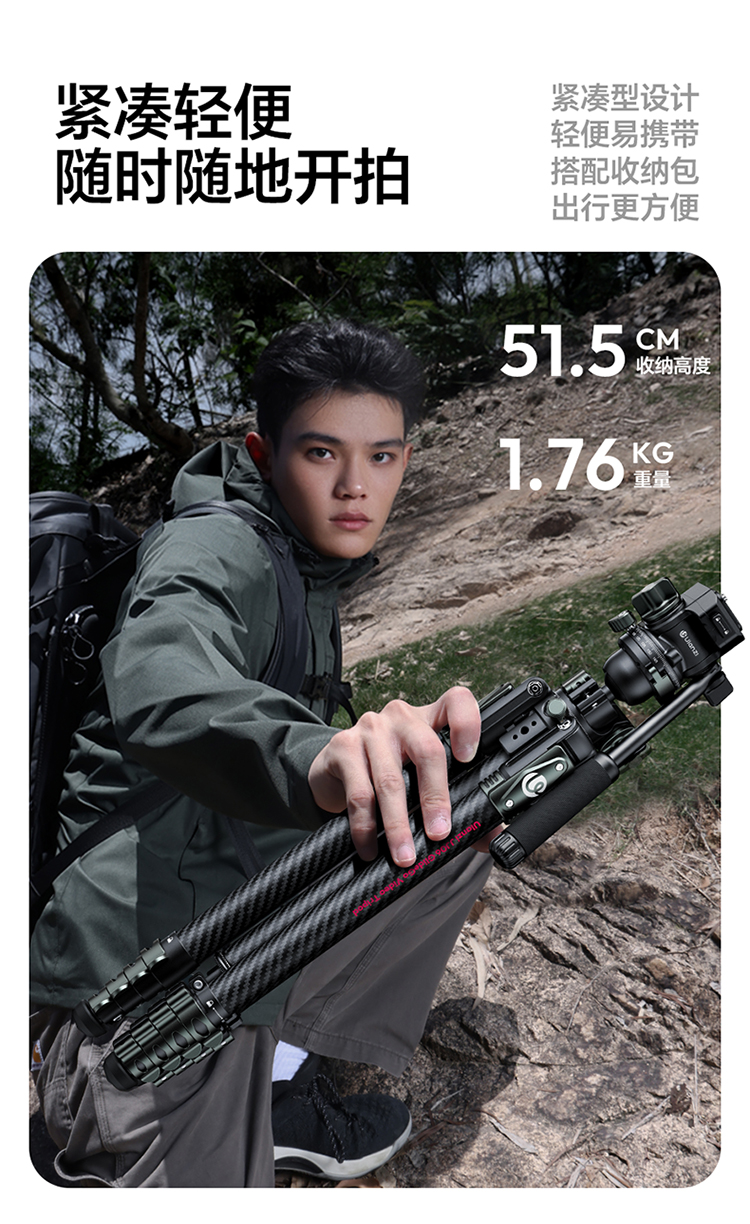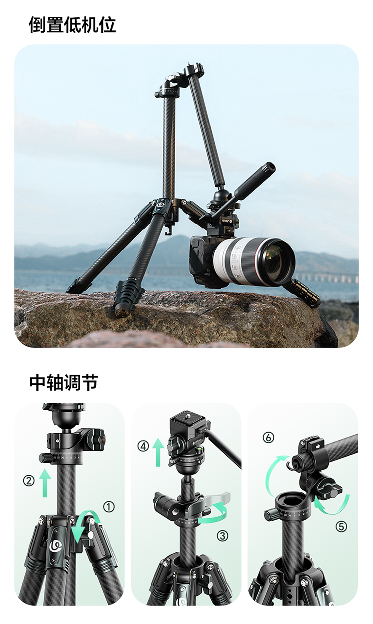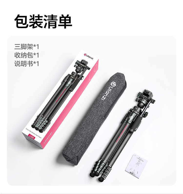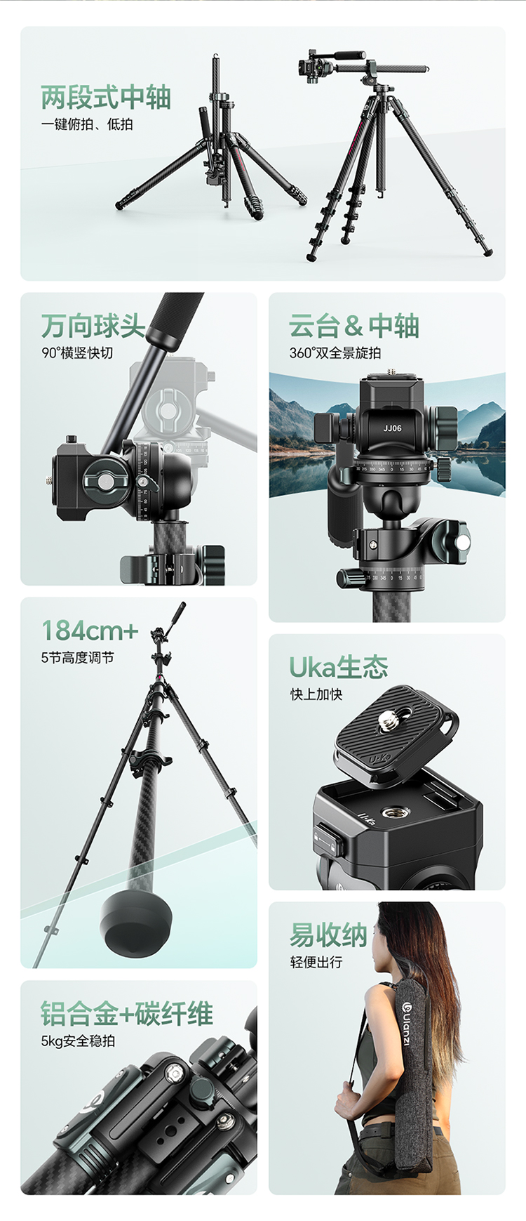 Ulanzi优篮子 JJ06灵巧运镜俯拍碳纤维三脚架旅行液压摄像云台相机支架超轻便携Uka单反拍照摄影拍摄三角架