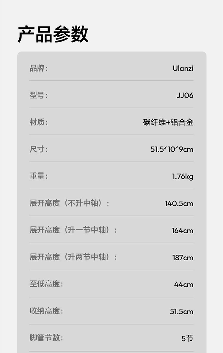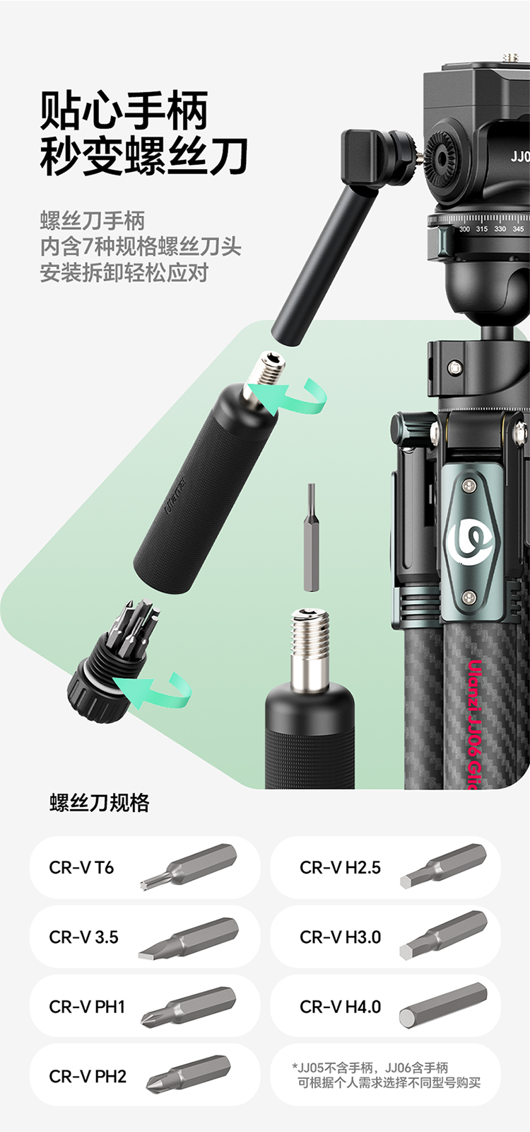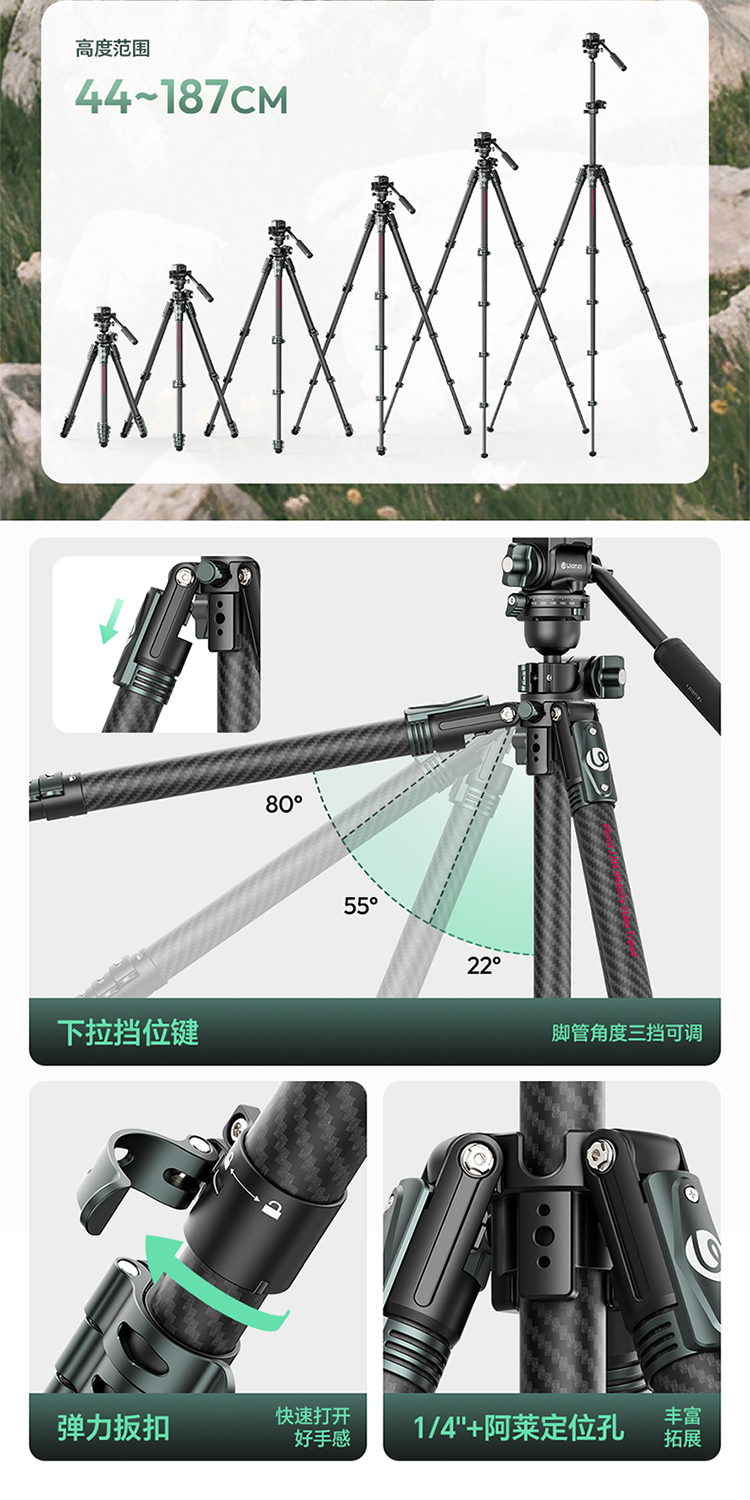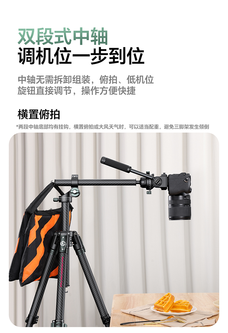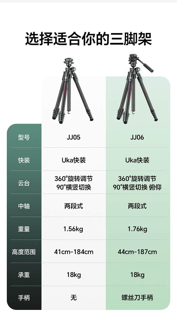 Ulanzi优篮子 JJ06灵巧运镜俯拍碳纤维三脚架旅行液压摄像云台相机支架超轻便携Uka单反拍照摄影拍摄三角架