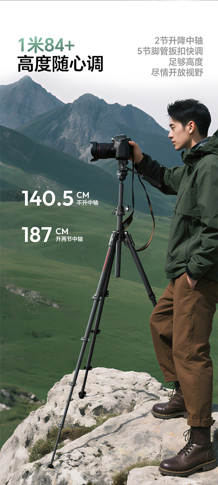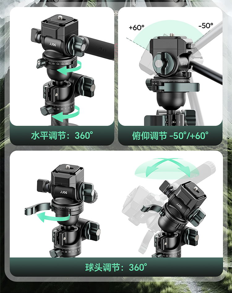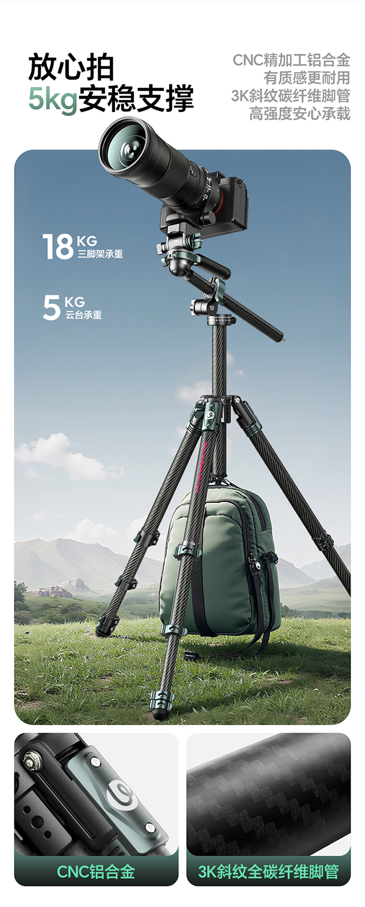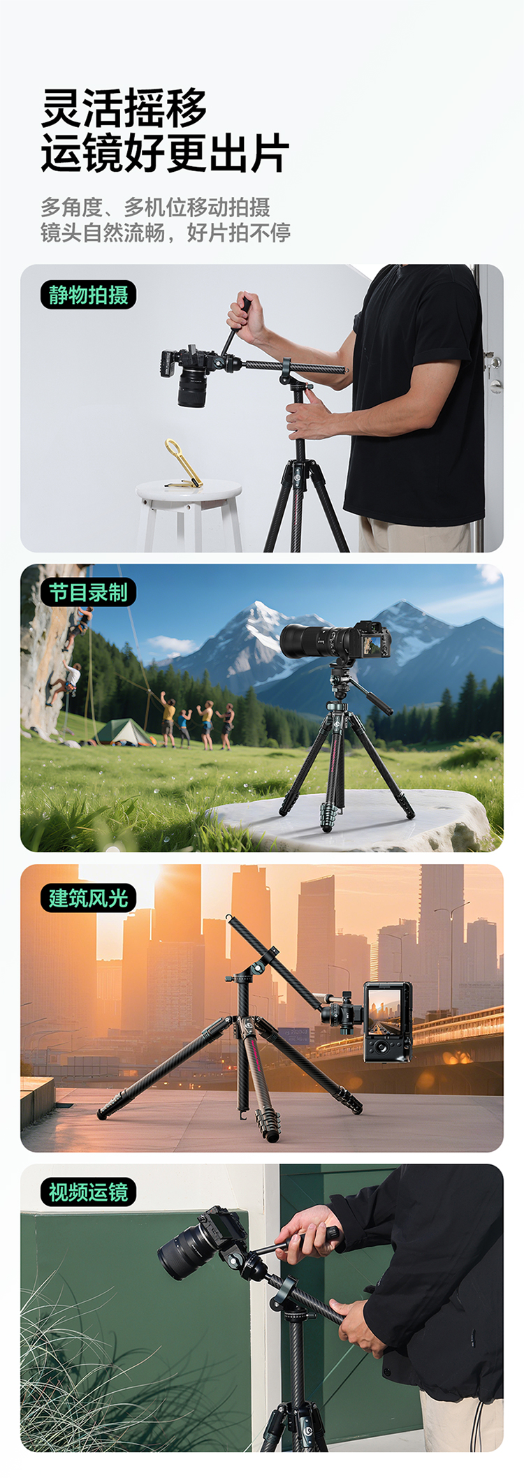 Ulanzi优篮子 JJ06灵巧运镜俯拍碳纤维三脚架旅行液压摄像云台相机支架超轻便携Uka单反拍照摄影拍摄三角架