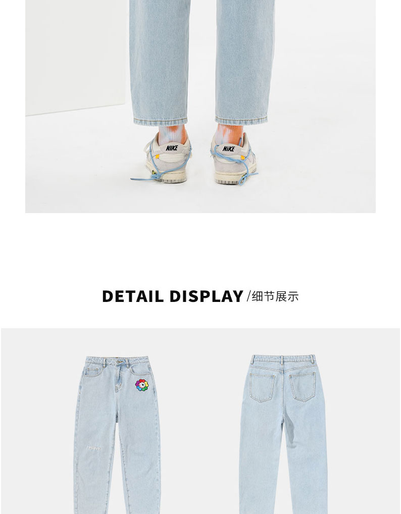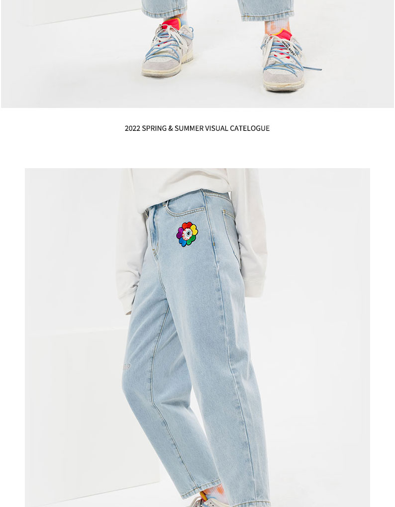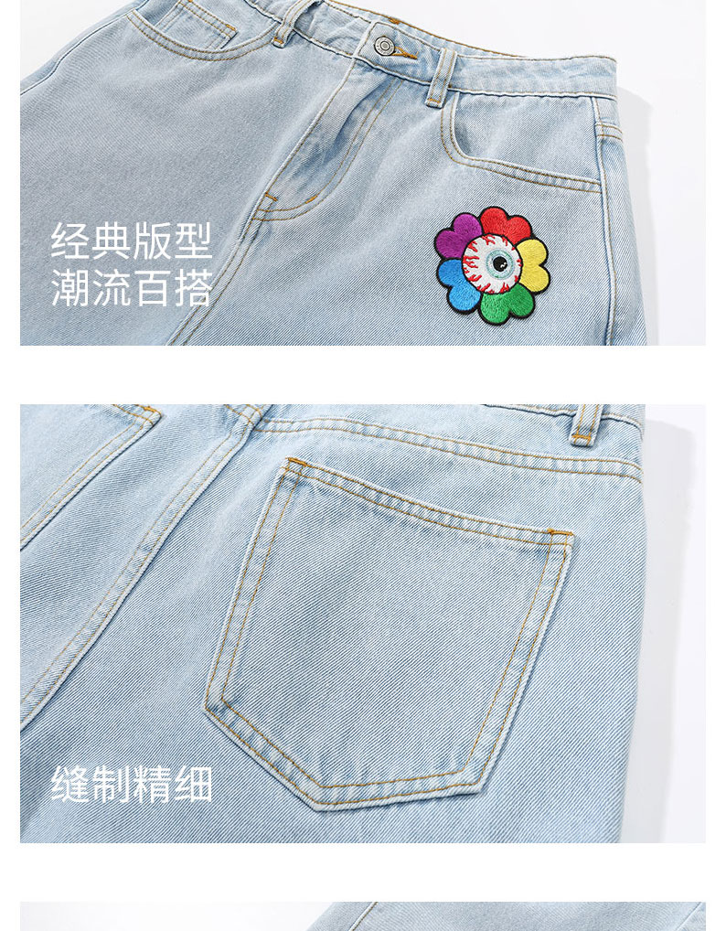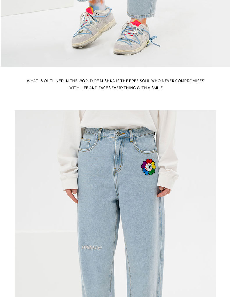 MISHKA大眼球潮牌2022春夏新品太阳花刺绣女士宽松直筒牛仔裤长裤M21100910W