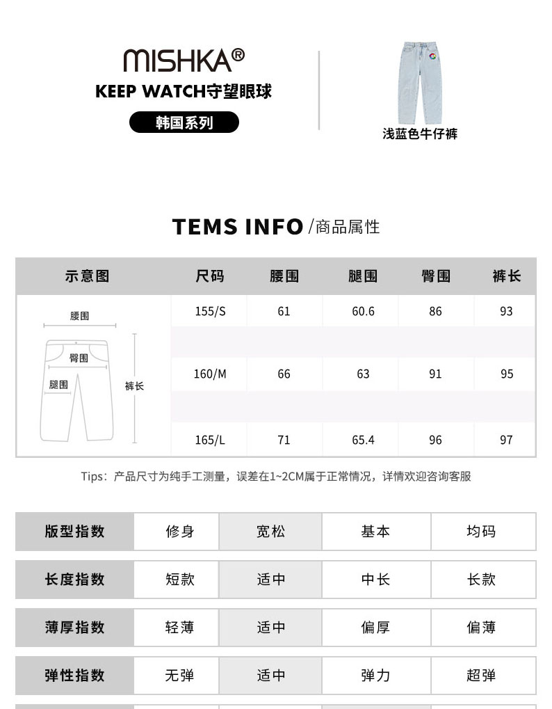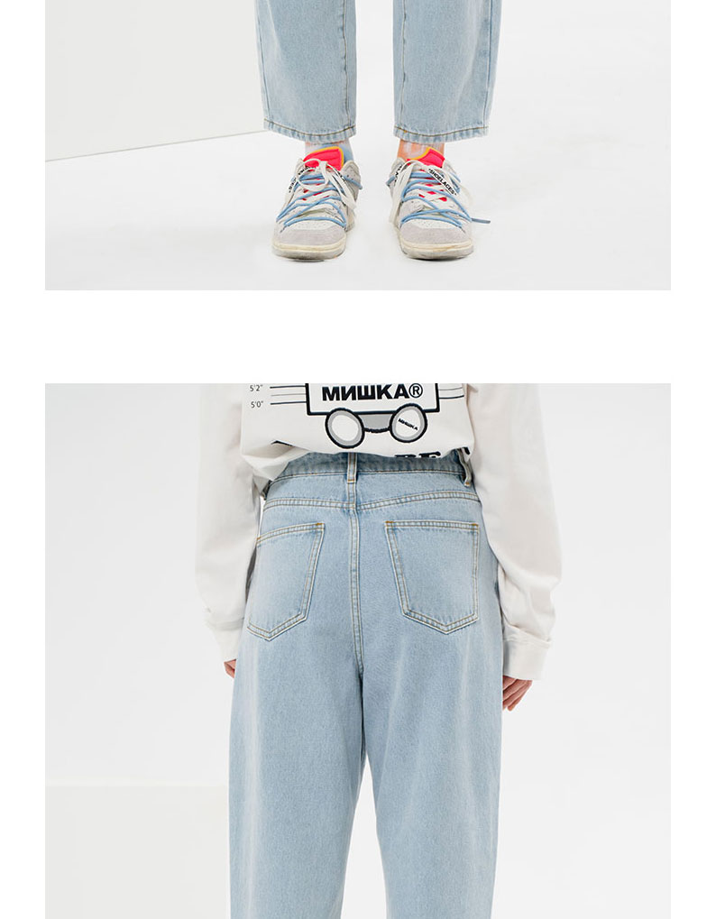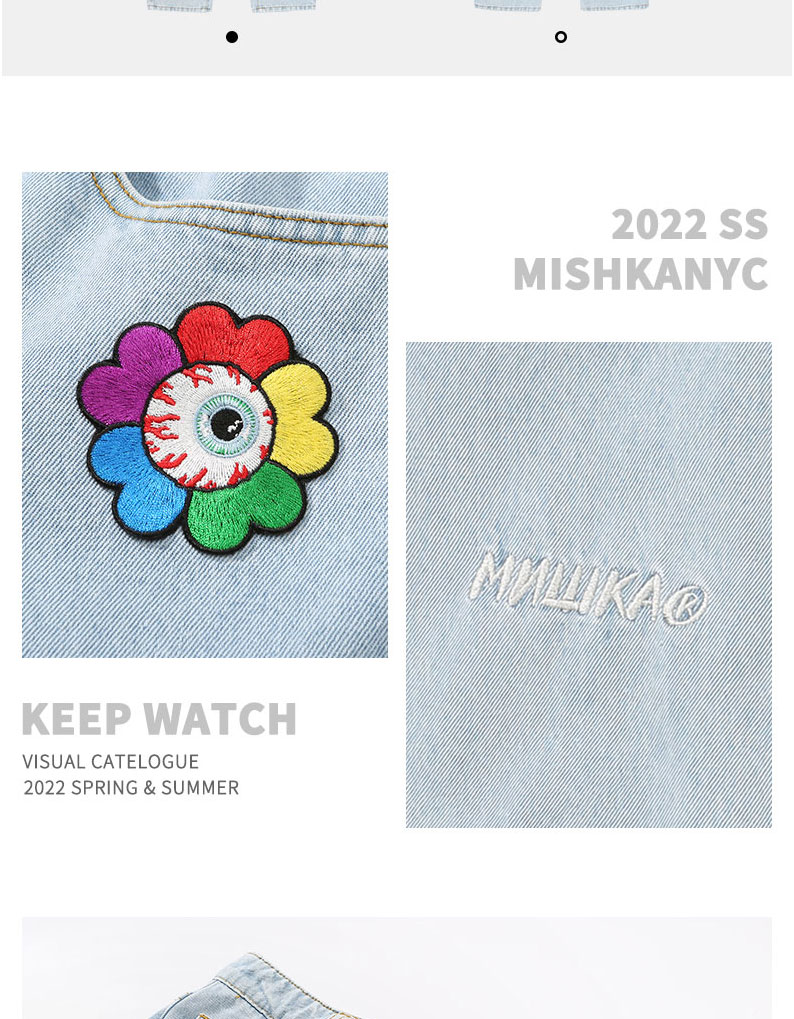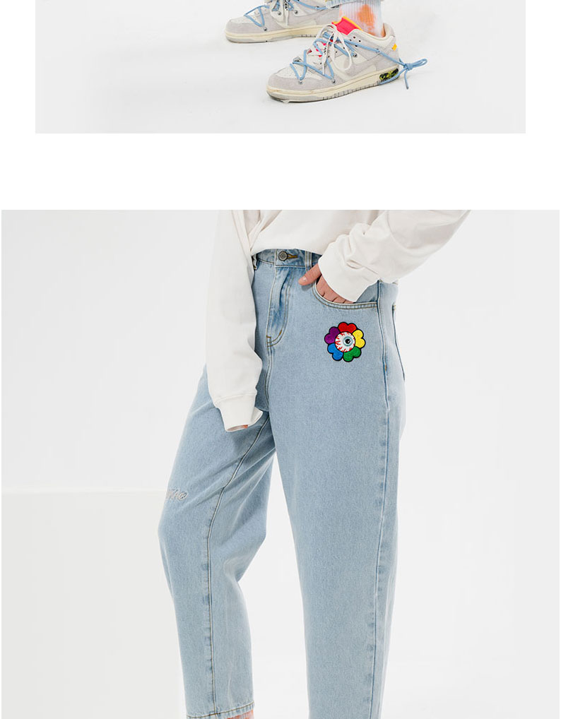 MISHKA大眼球潮牌2022春夏新品太阳花刺绣女士宽松直筒牛仔裤长裤M21100910W