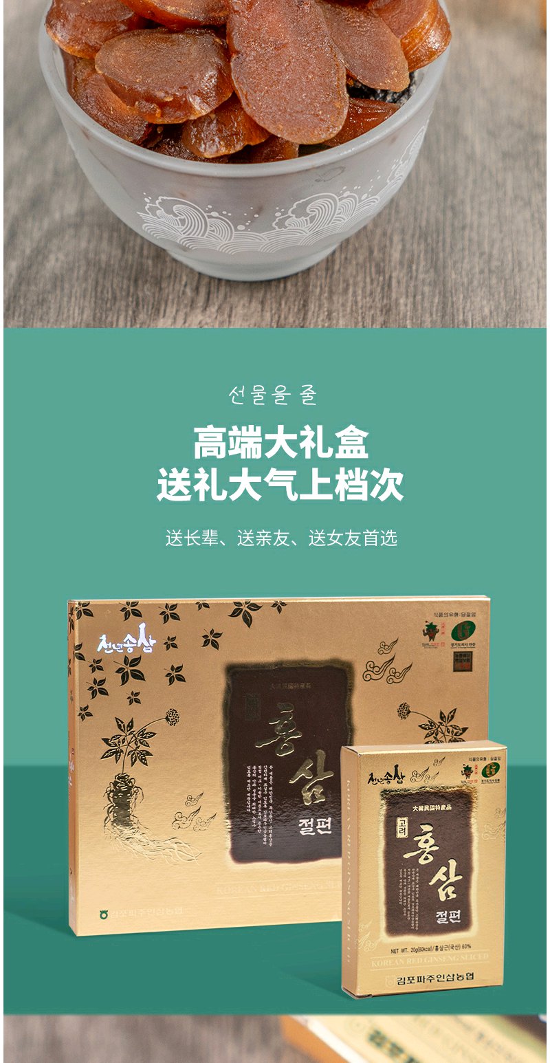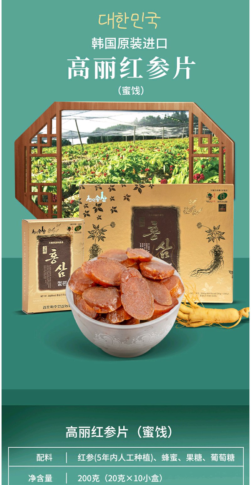 韩国高丽参蜜片200g红参蜜片蜂蜜人参切片礼盒