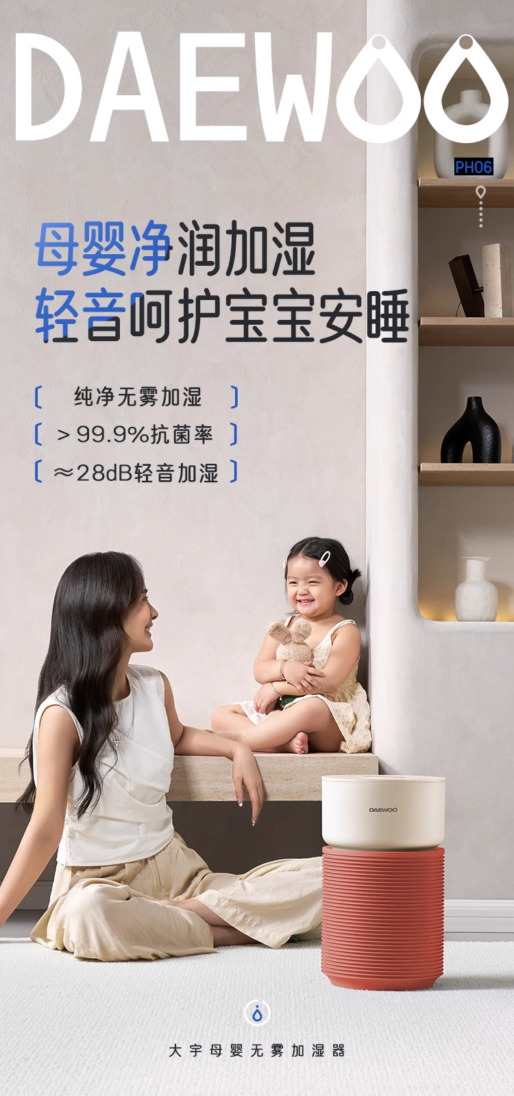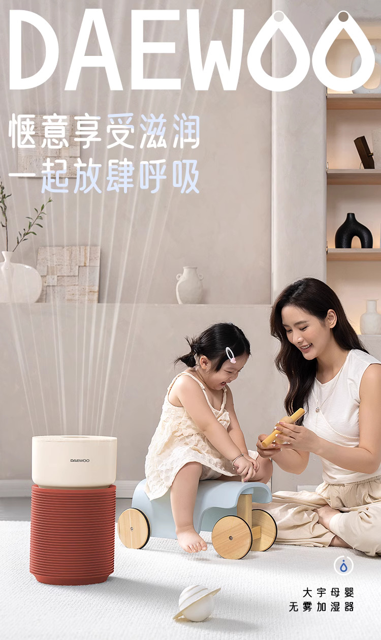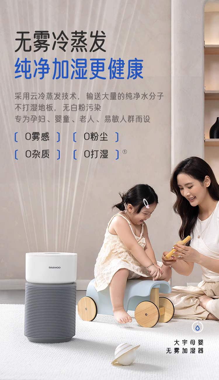 大宇无雾加湿器孕妇婴儿家用卧室空调供暖气房间空气加湿2024新款