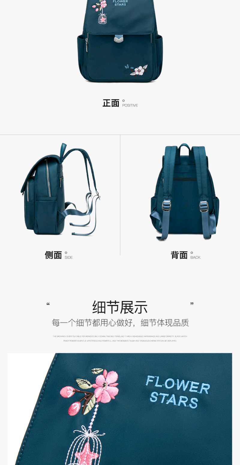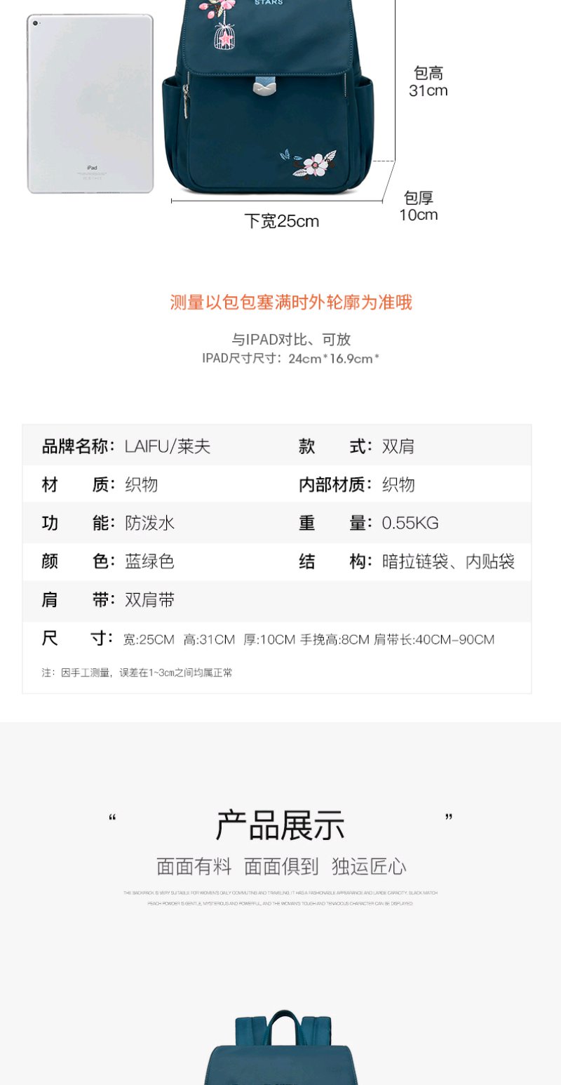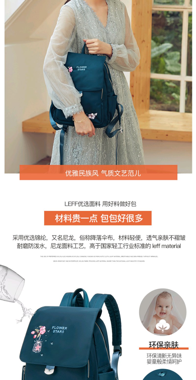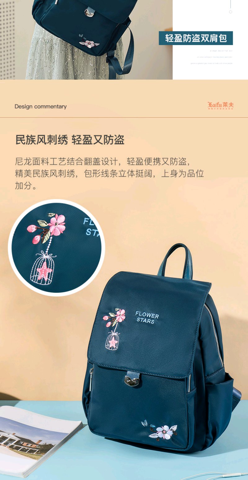莱夫双肩包女 上班通勤帆布包简约民族风刺绣翻盖女士背包休闲百搭妈妈款小书包新年礼物送妈妈 经典黑色