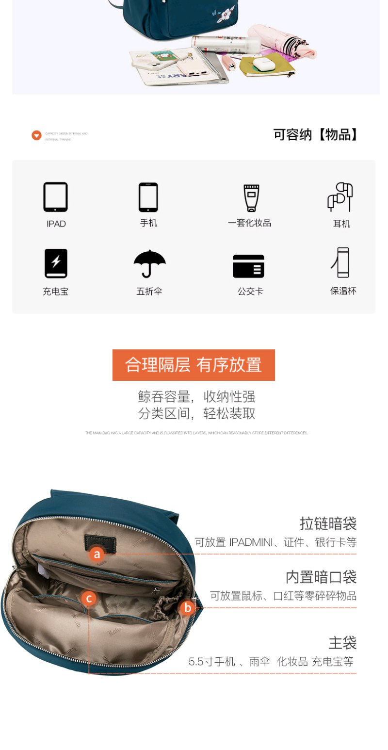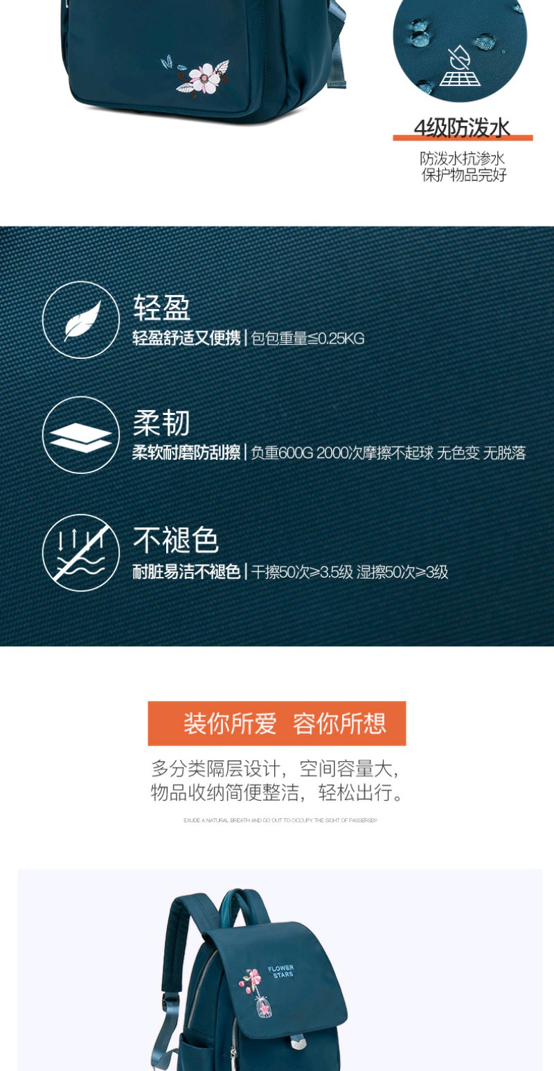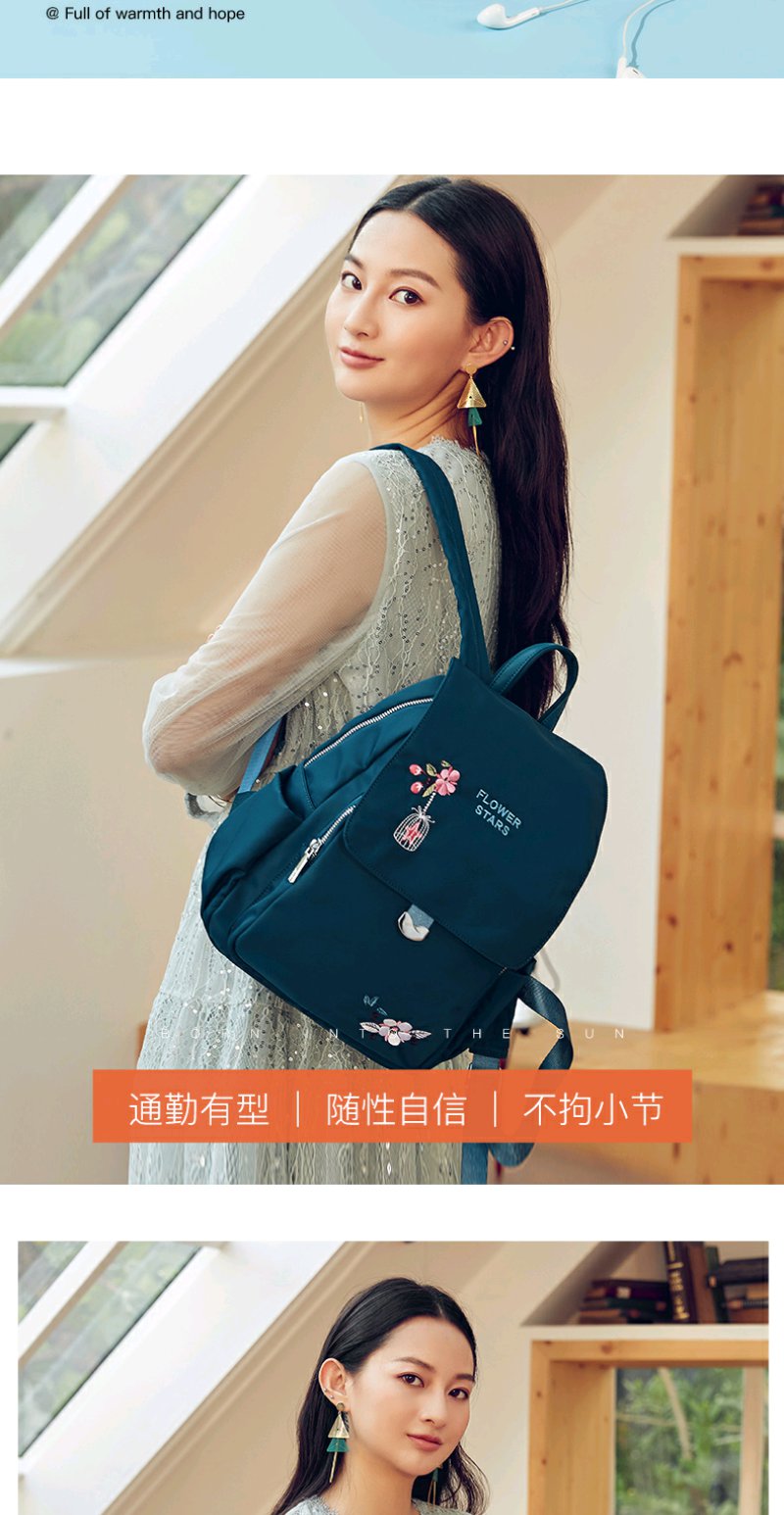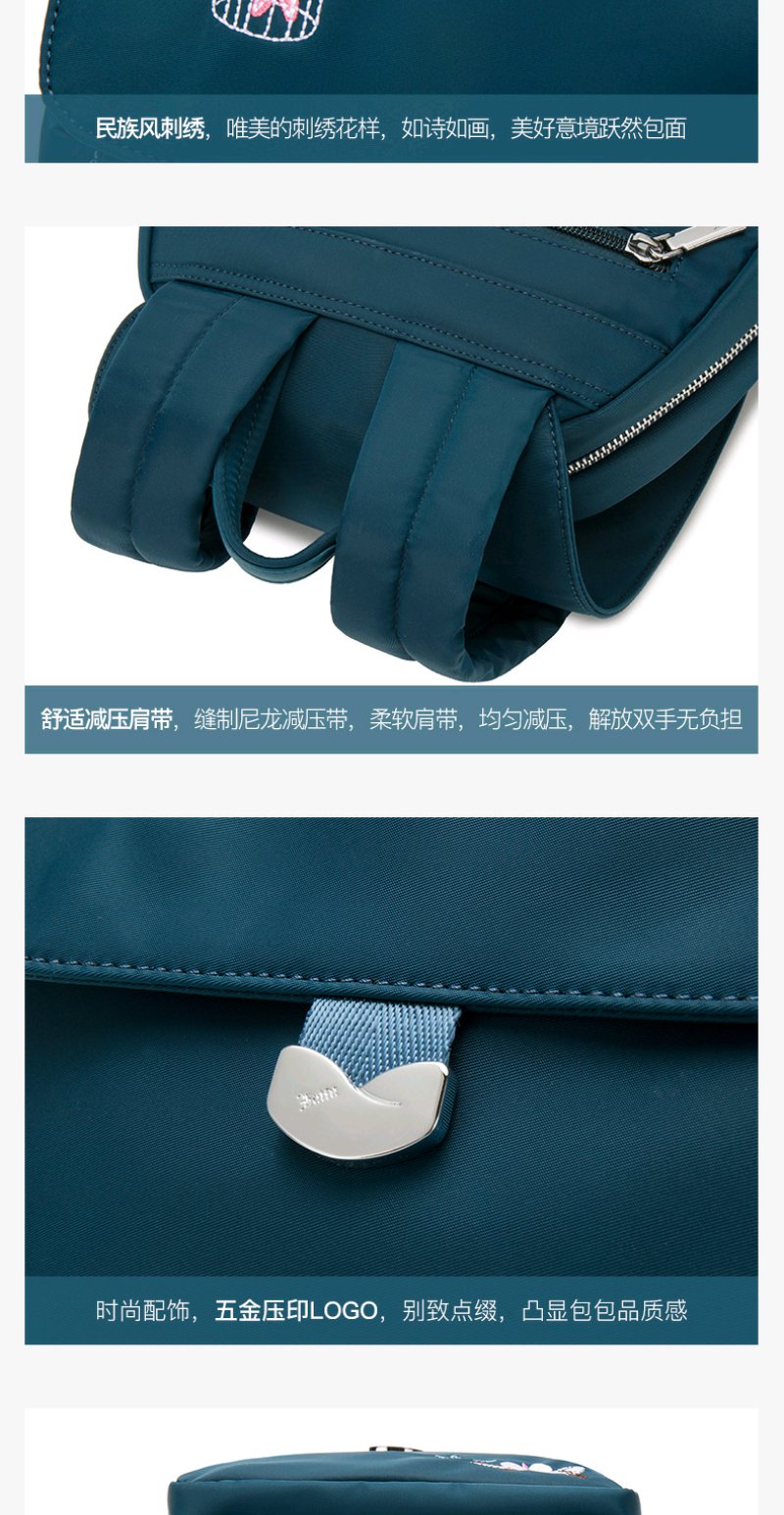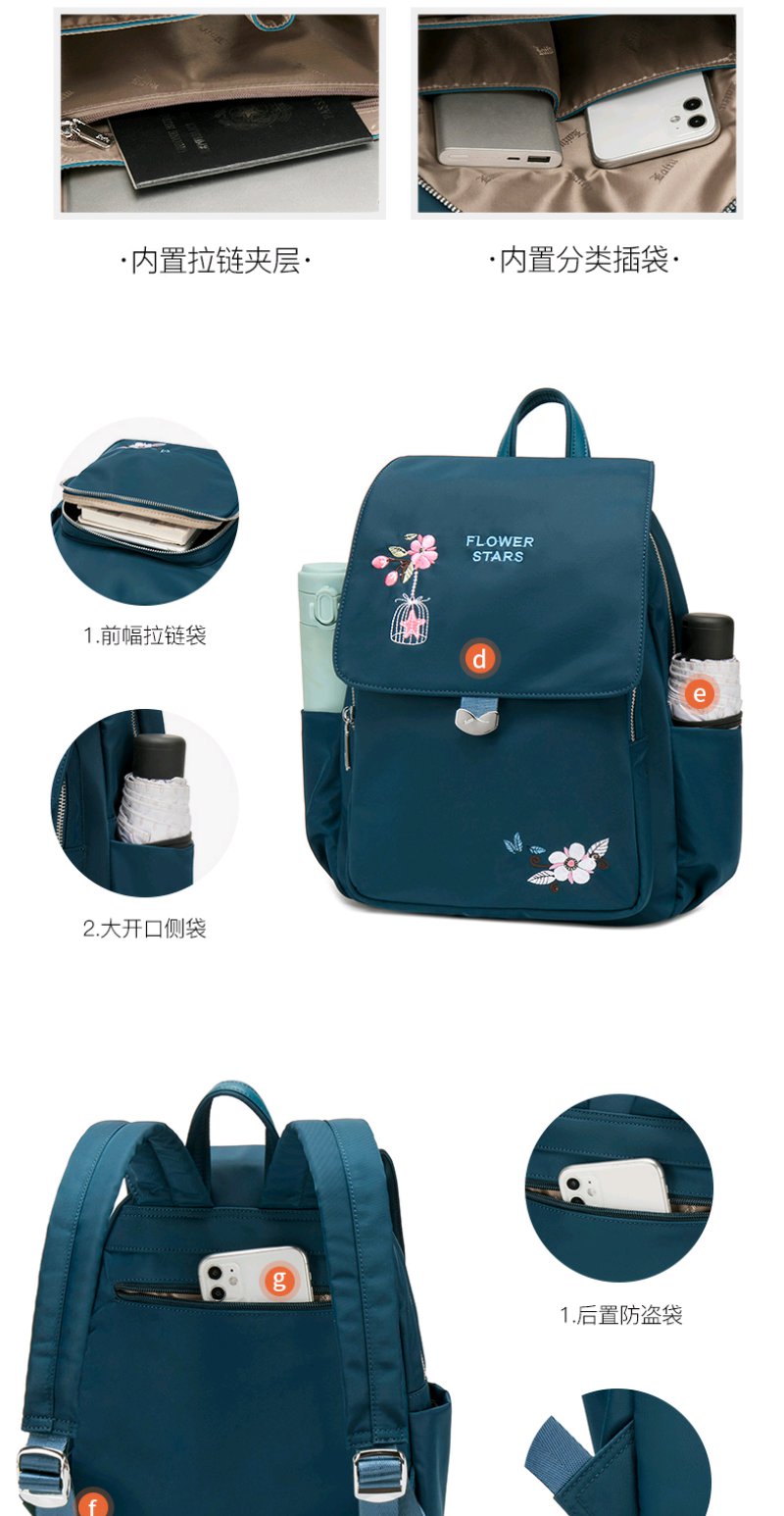 莱夫双肩包女 上班通勤帆布包简约民族风刺绣翻盖女士背包休闲百搭妈妈款小书包新年礼物送妈妈 经典黑色