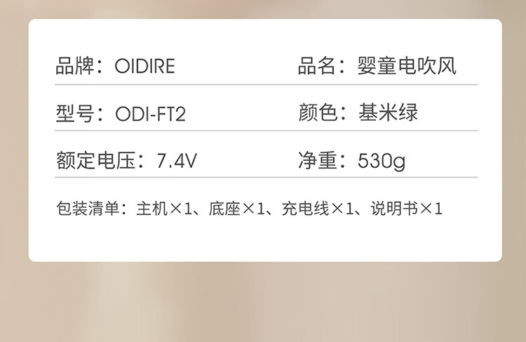 OIDIRE无线充电婴童电吹风ODI-FT2