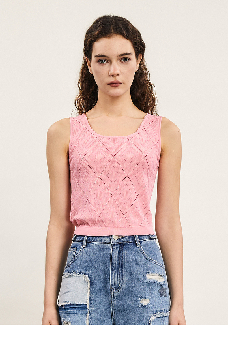 谜底经典针织背心女2024年夏新品百搭亲肤U型领针织内搭242MZ0862