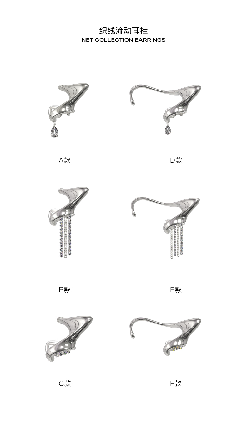 KVK2021年新款小织线流动耳挂小众设计感无耳洞耳夹气质简约耳饰