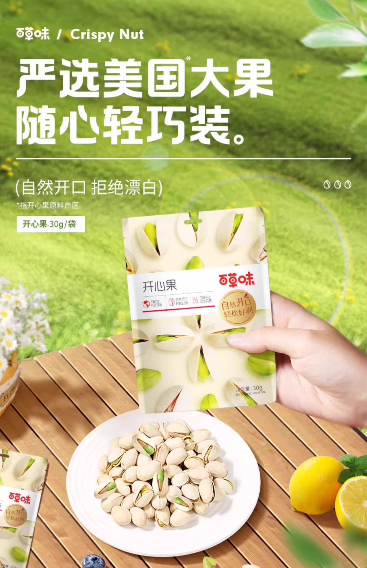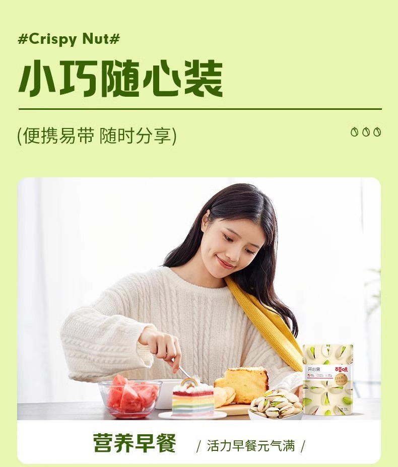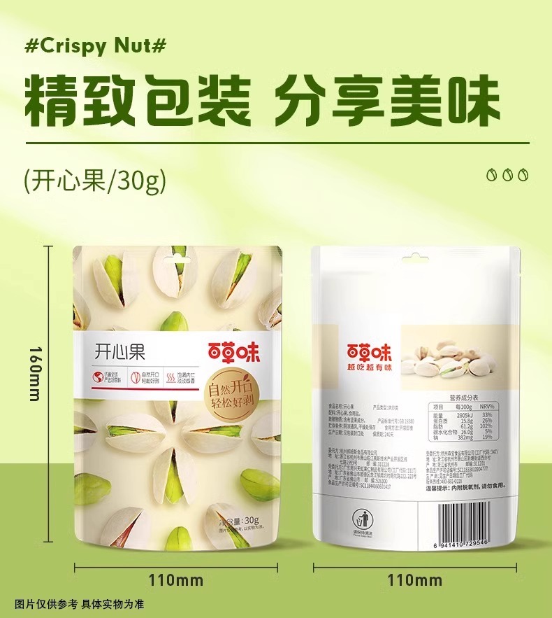 【网红休闲零食】百草味开心果100g,原色无漂白食品,惊艳味蕾的网红休闲零食。享受年货小吃的独特魅力,尽情品味办公室时光中的美好,带来无尽开心时光!