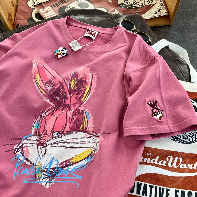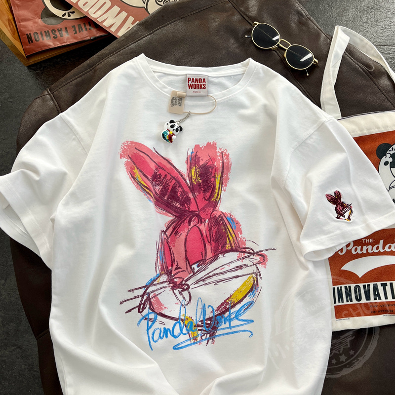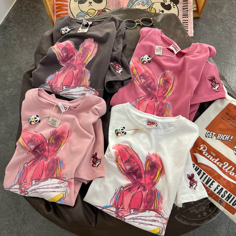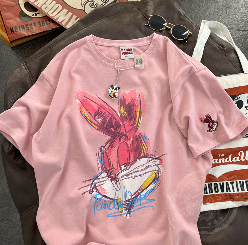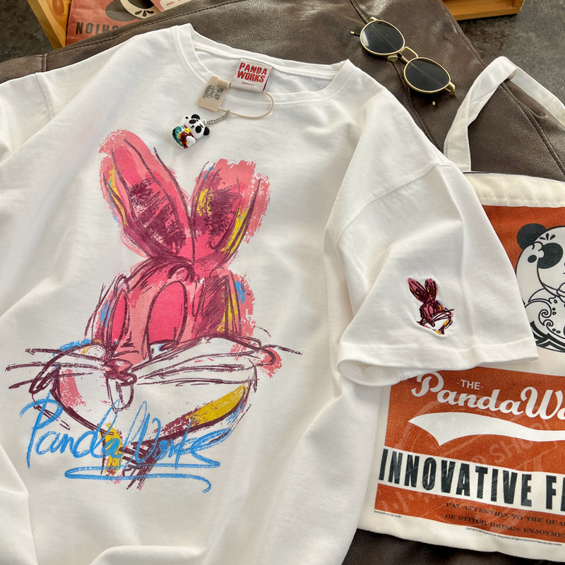 【2023春季新款韩版】卡通大兔子绘画 休闲半袖圆领套头纯棉短袖T恤女春夏季学生上衣潮