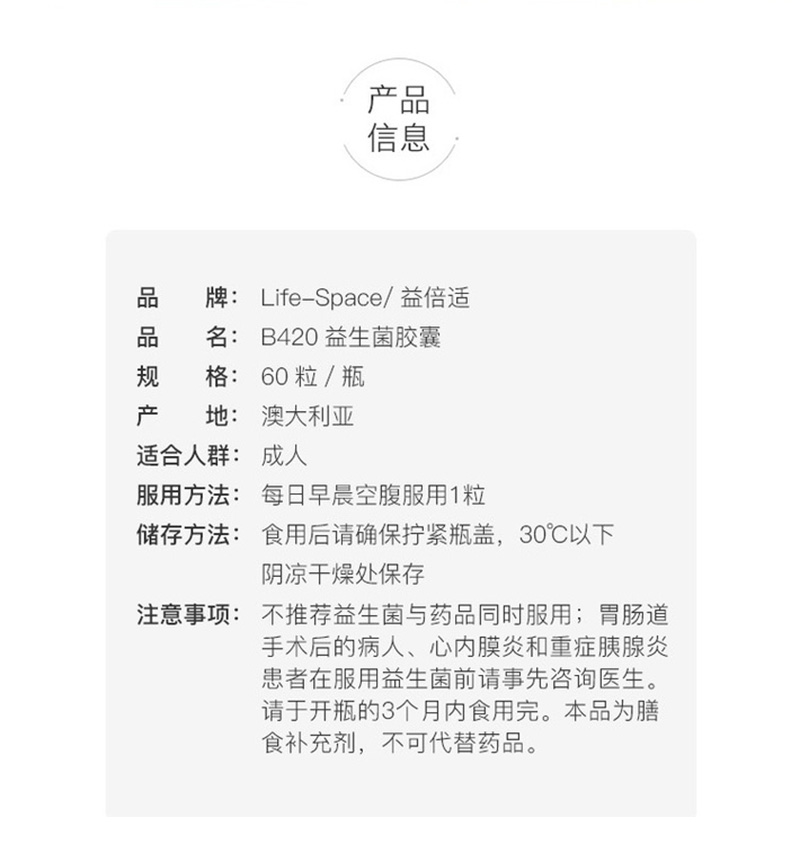 澳洲Life space塑身B420益生菌胶囊60粒