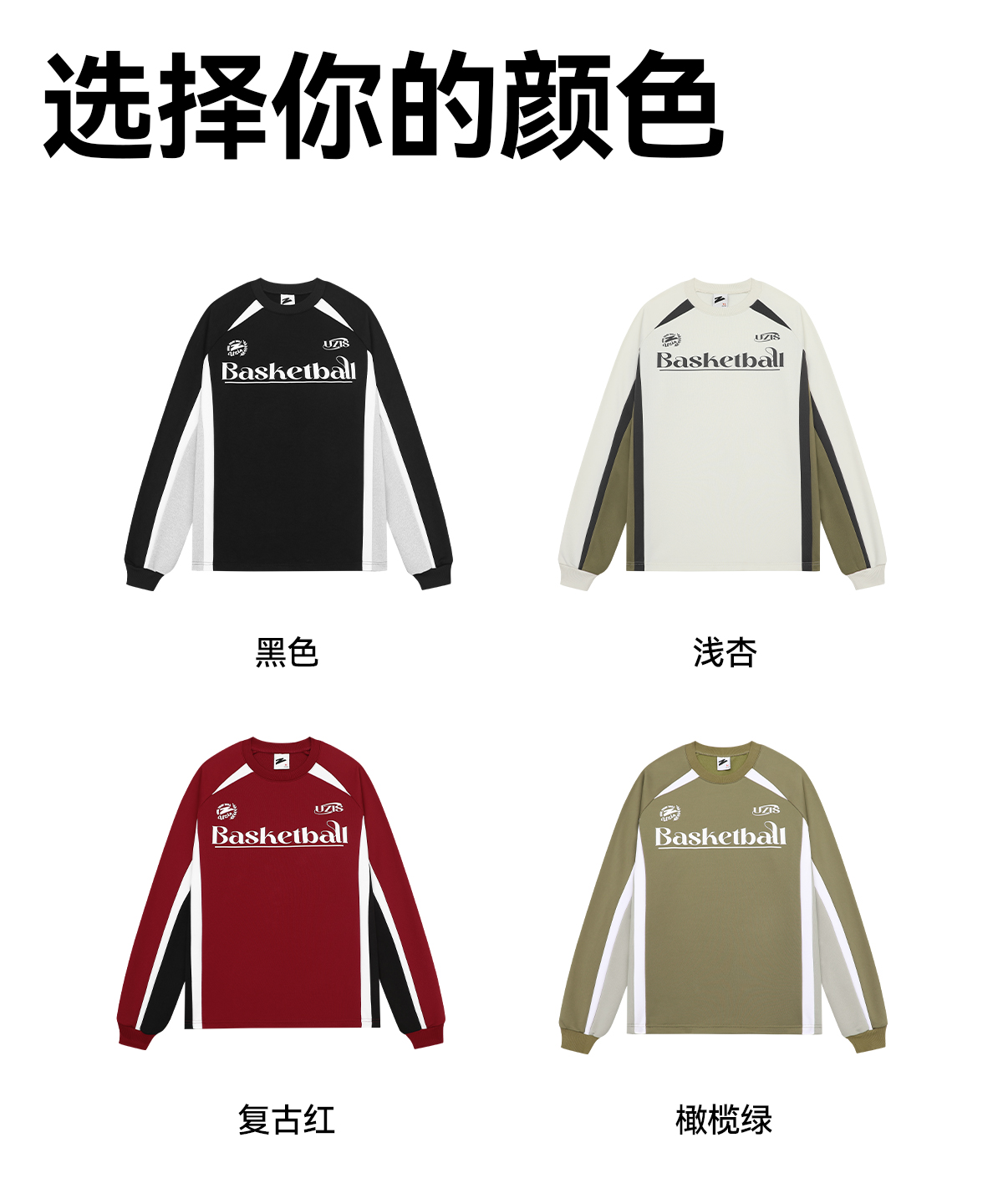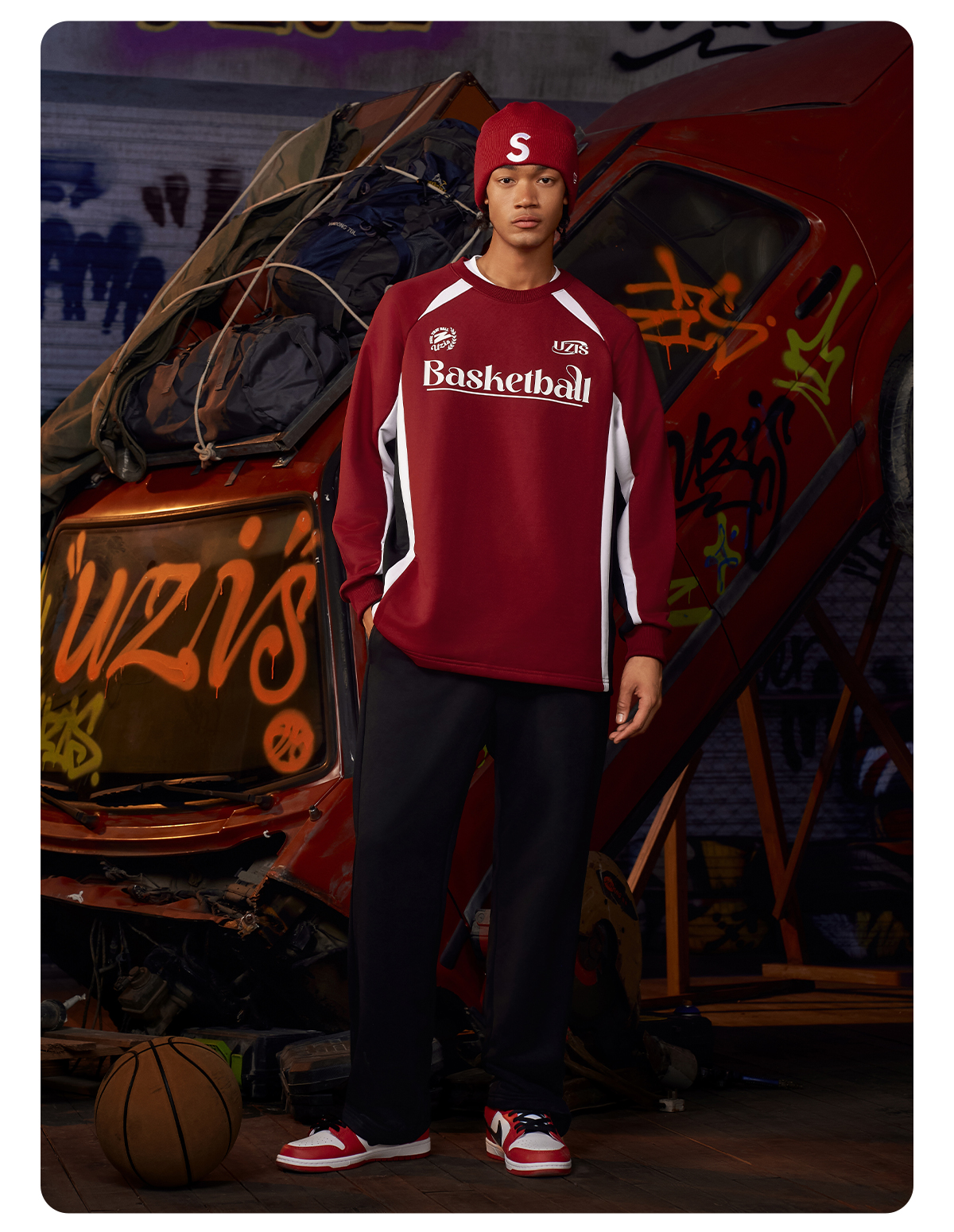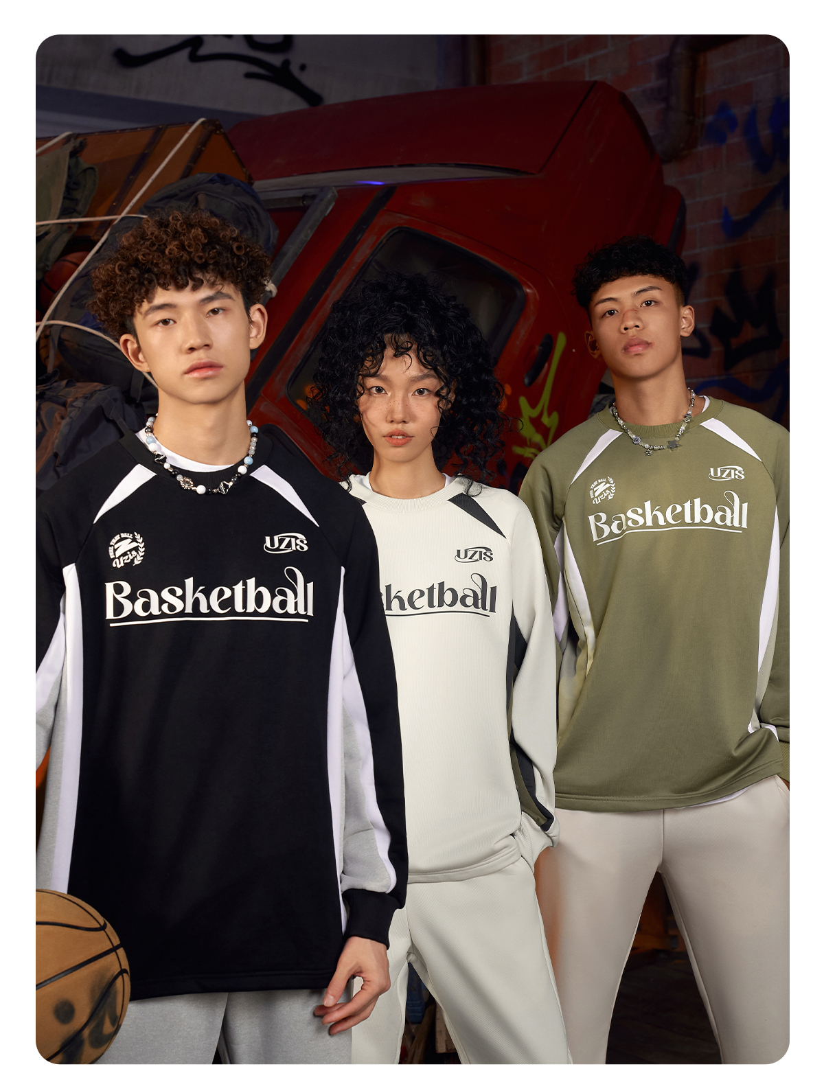 有志者UZIS美式拼色运动卫衣男秋季篮球跑步潮流复古圆领上衣双刃