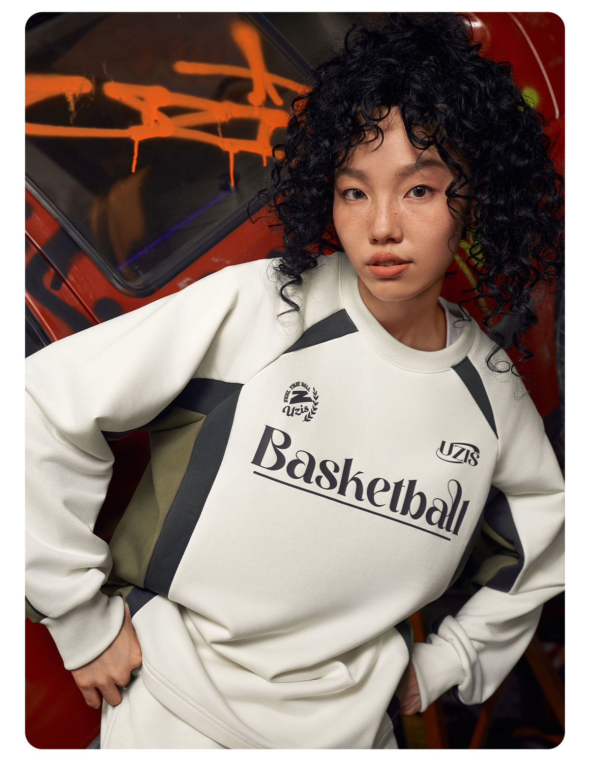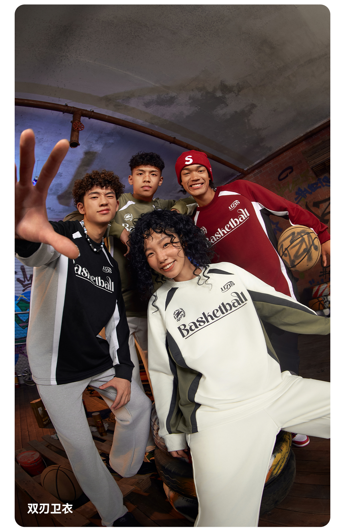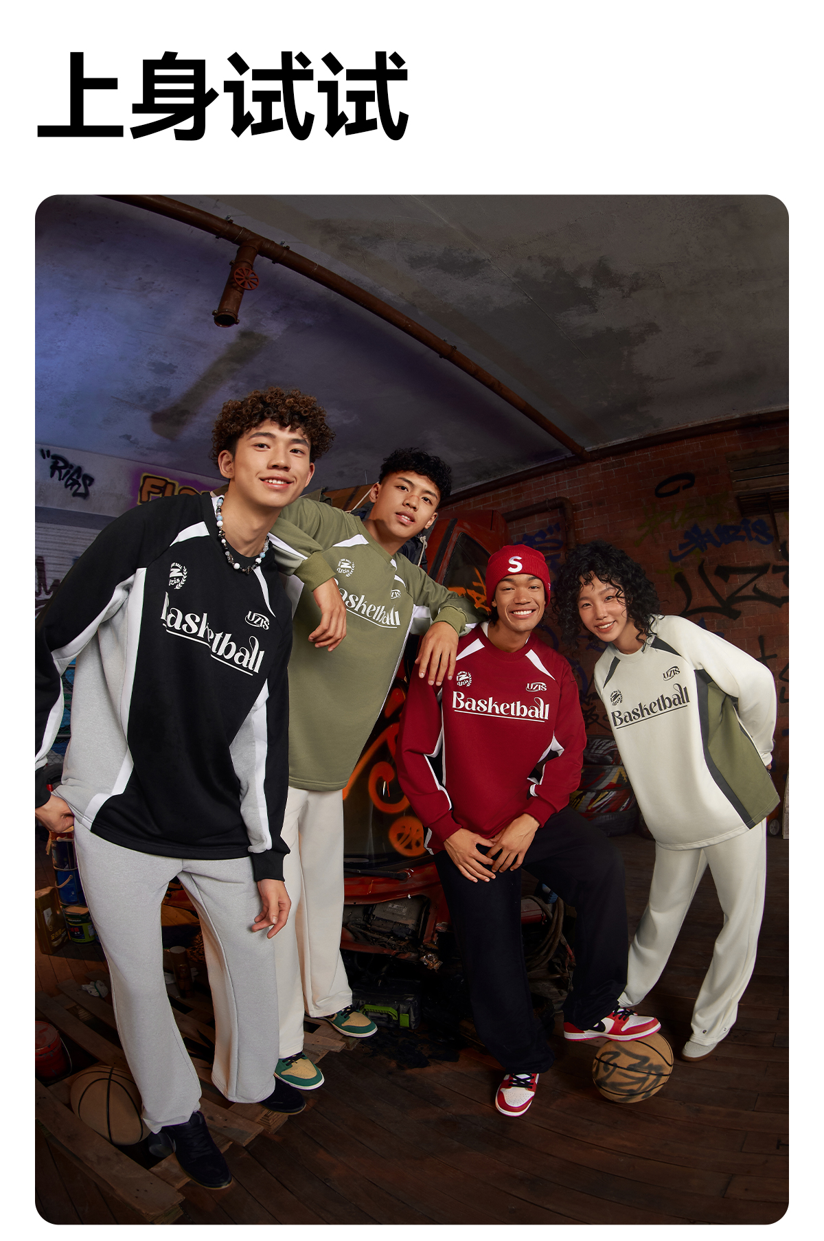 有志者UZIS美式拼色运动卫衣男秋季篮球跑步潮流复古圆领上衣双刃