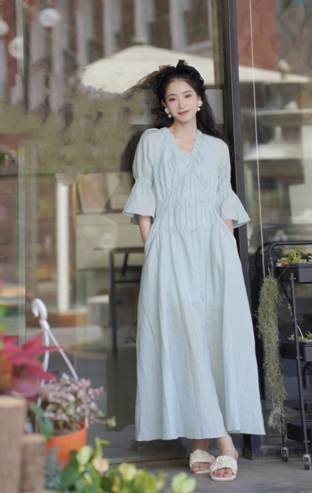 两三事自在如风3.0法式公主袖温柔小众显瘦气质时尚收腰连衣裙